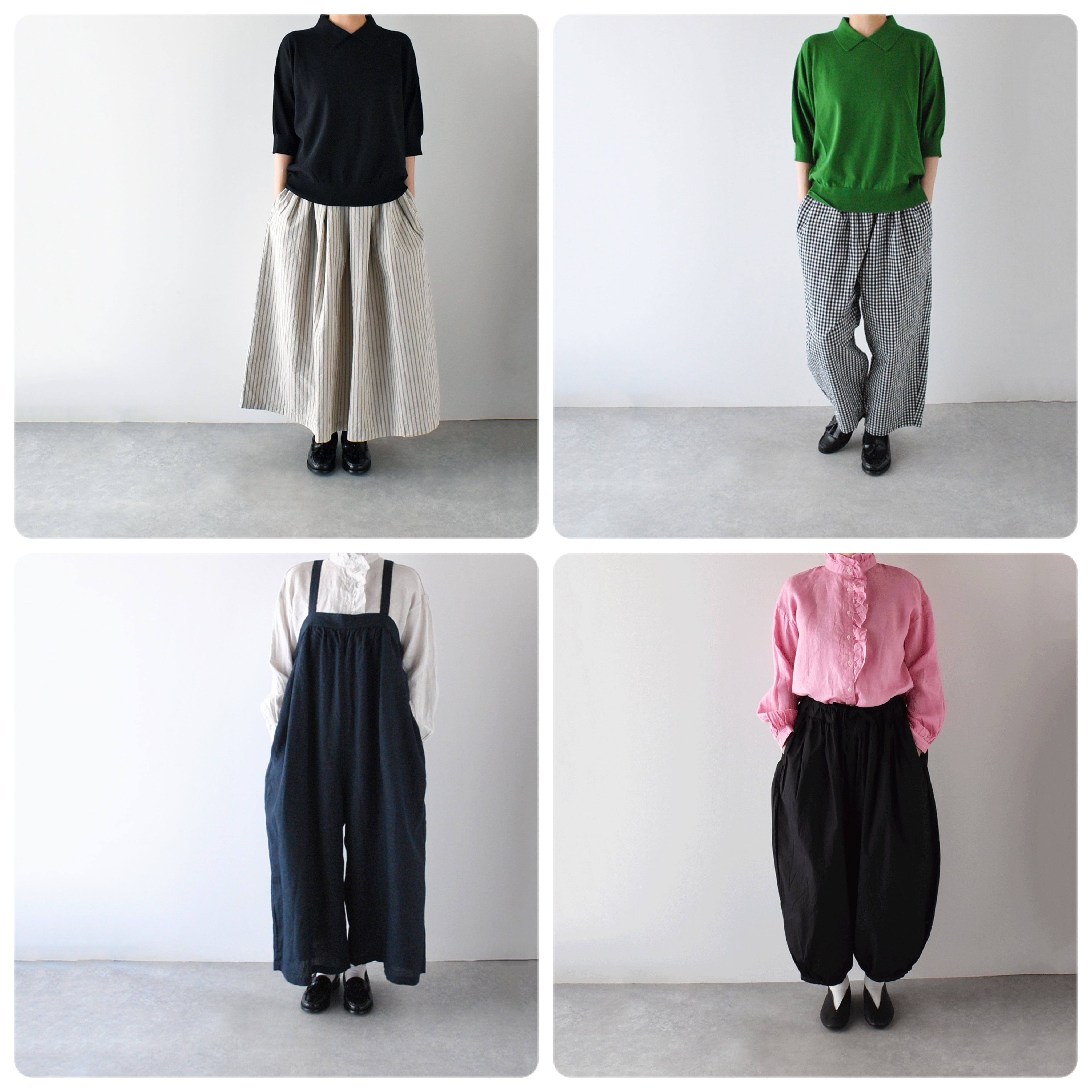 fog linen work から、パンツ幅の太いワイドシルエットがスタイルをとっても綺麗に見せてくれるサロペットが届きました。季節のインナーを合わせるだけで、簡単に素敵に仕上がるオススメアイテムです。胸当ての背中側はゴムになっているので、着脱もラクチン。太めの肩ヒモも安心感がありますよ。春から夏にかけて手放せない一着になりそうです。 サイズ:F(約身幅50cm×ウエスト120cm×股上35cm×股下51cm×わたり幅47cm×着丈123~133cm) 素材:リネン100%(薄地) 原産国:リトアニア ※着画の身長は158cmです ※サイズは全て平置きで採寸しています ※シワなどにより多少の誤差がございます