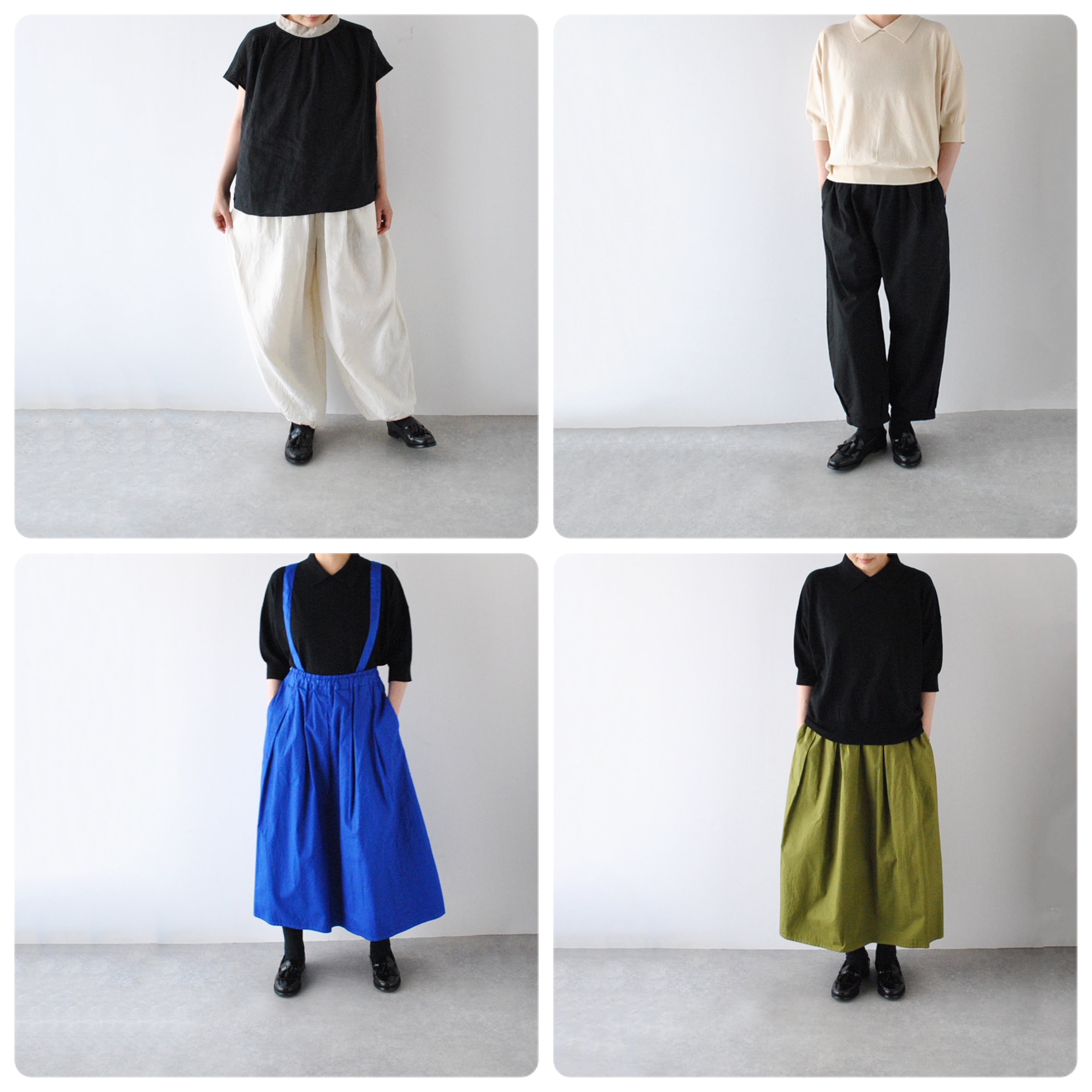 sasanqua by treesから、ぽってりシルエットが可愛い、ブリーチデニムが届きました。旧式の織機でゆっくりと織り上げた、10オンスのライトデニムを使用した柔らかく軽い履き心地で楽しめる一枚です。シンプルな白シャツやブラウスを合わせるだけで、とてもカッコよく今っぽいスタイルに仕上がりますよ。フリルたっぷりの甘めのブラウスとも相性抜群。股上も深く、後ろウエストにゴムを入れたイージー仕様もストレスフリーでとってもラクチン。一枚お持ち頂くと、着こなしの幅が広がりますよ。 サイズ:1(約ウエスト58~86cm×股上41cm×股下61cm×わたり幅36cm×総丈97cm) 素材:コットン100% ※着画の身長は158cmです ※サイズは全て平置きで採寸しています ※シワなどにより多少の誤差がございます