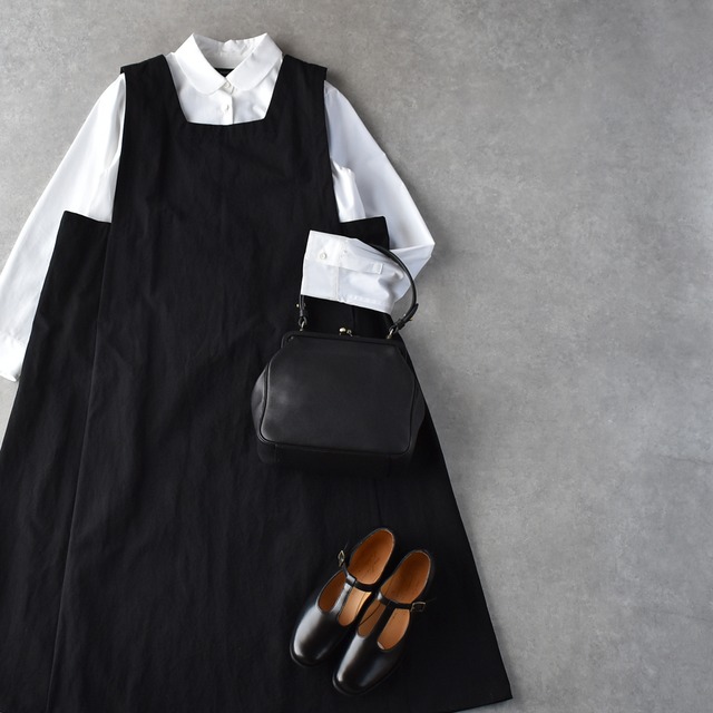 Atelier d'antanからオリジナルコットンを使用したアトリエシリーズのジャンパースカート「Coudres (クードル)」が届きました。スクエアなネックラインと緩やかに広がるシルエットが美しく、ブラウスやタートルネックを合わせるだけでとても上品に可愛く着て頂ける一枚です。旧式の織り機でゆっくりと時間をかけて織りあげられたアトリエシリーズの特別なコットン生地は、程よい厚みがありふっくらとしたマットな質感でとても上品な印象です。着こむほどにくたっとアンティークの様な風合いに変化していくのも楽しみです。 サイズ:F(約身幅56cm×着丈116cm) 素材:コットン100% 生産国:日本 ※着画の身長は158cmです ※サイズは全て平置きで採寸しています ※シワなどにより多少の誤差がございます