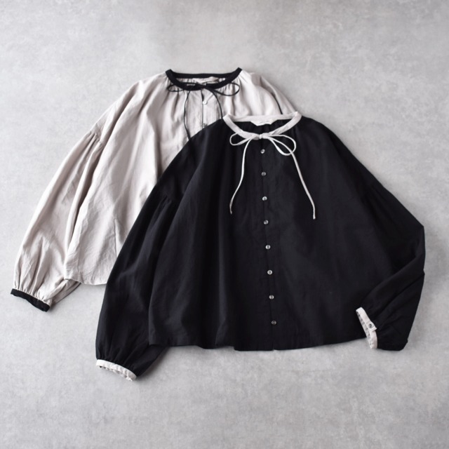 ichi Antiquités コットンカシミヤ バイカラーブラウス 1100612