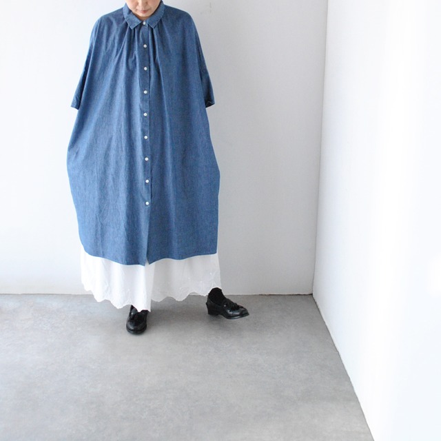 LABORATORY シャンブレーオーディナリーワイドシャツワンピース (ブルーシャンブレー) LA398
