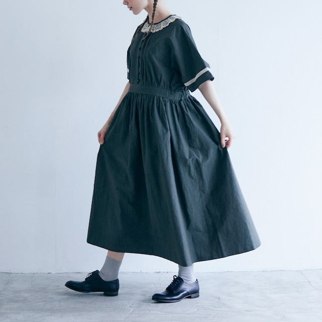MAGALI コットンリネン・ファナージュ・クラシックワンピース (チャコール) OP194CH