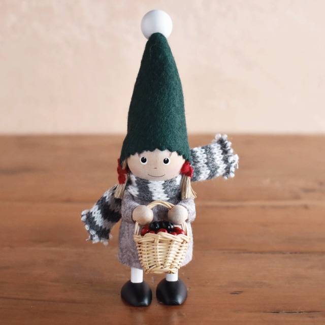 北欧で、古来より家や子供たちを守りクリスマスの時期にはサンタクロースのお手伝いをすると言い伝えられている「妖精ニッセ」。イタズラ好きで働き者のニッセが住む家には幸福が訪れると言われています。素朴でどこかあどけない木の人形は、1つ1つエストニアの職人たちの手によって作られたハンドメイド製。毛糸で編んだマフラーや両手で抱えているプレゼントのラッピング、リネンの生地の袋や素材感のある丸太など、人形だけでなく添えられた小物の細部に至るまで細かく丁寧に作られていて惚れ惚れします。 サイズ:約高さ15cm 素材:天然木(バーチ材)、フェルト他 ※職人が1つ1つ手作業で製作しておりますため、大きな印象の違いはありませんが、1つ1つに微妙な個体差がございます。それぞれの子達の個性として楽しんでくださいませ。
