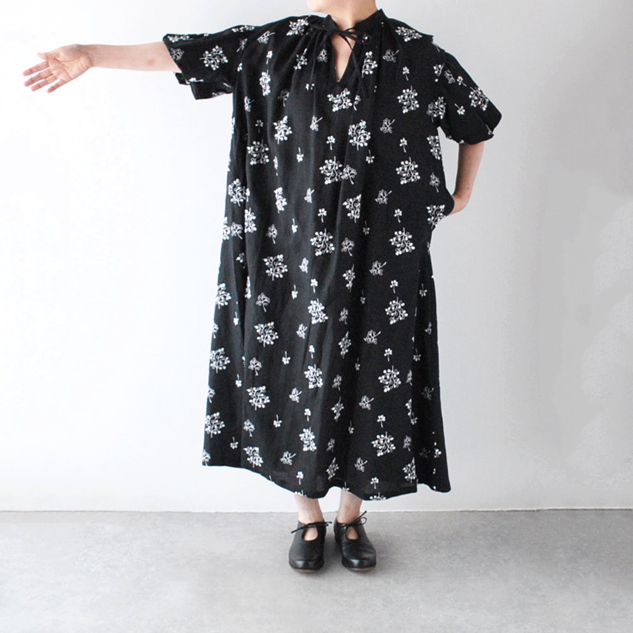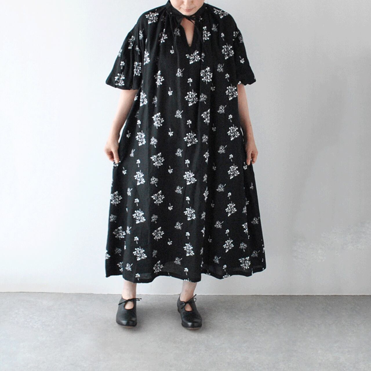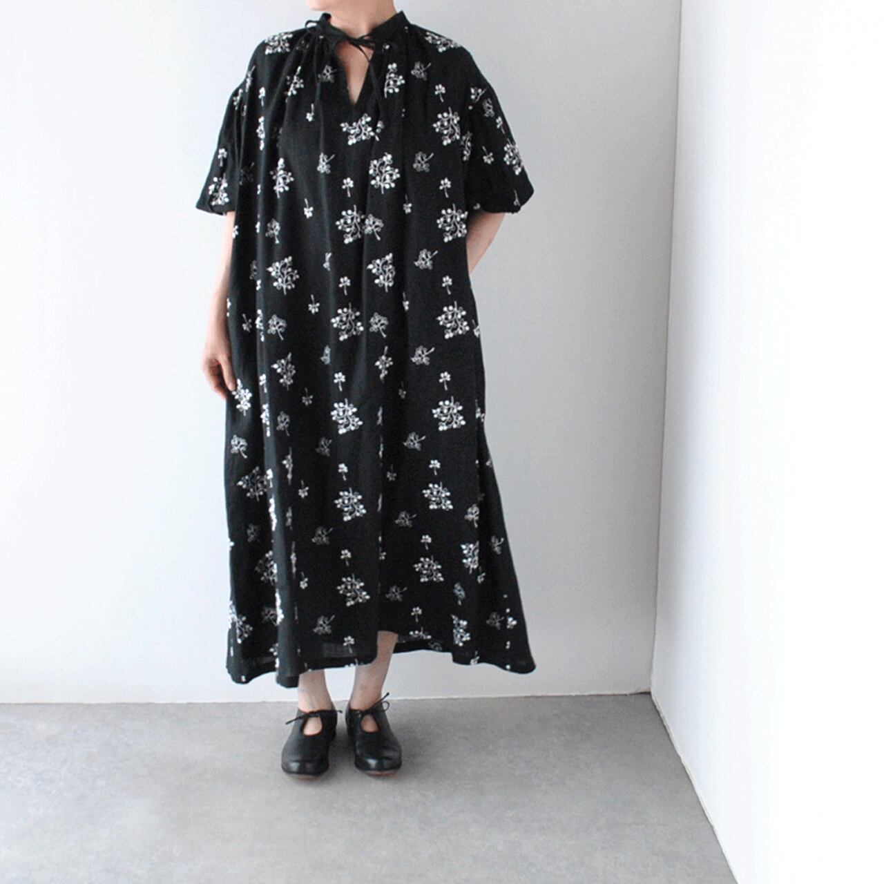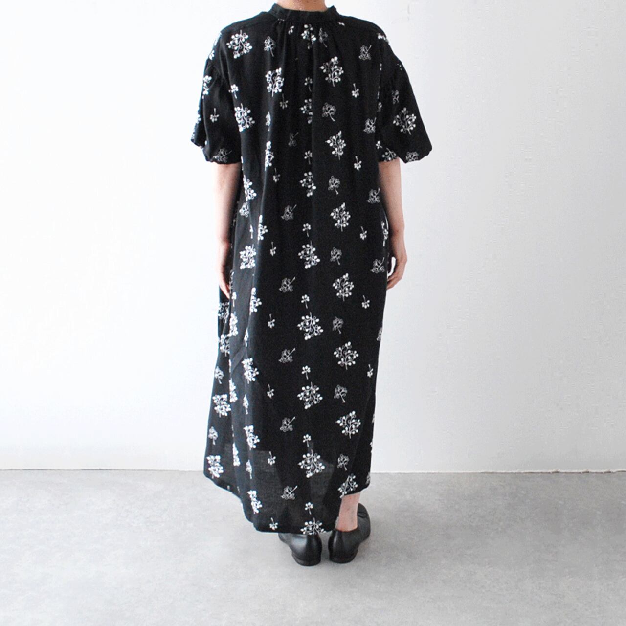 MAGALI TSUBOMI リネン・バルーン袖ペザントワンピース (ブラック) OP195BK