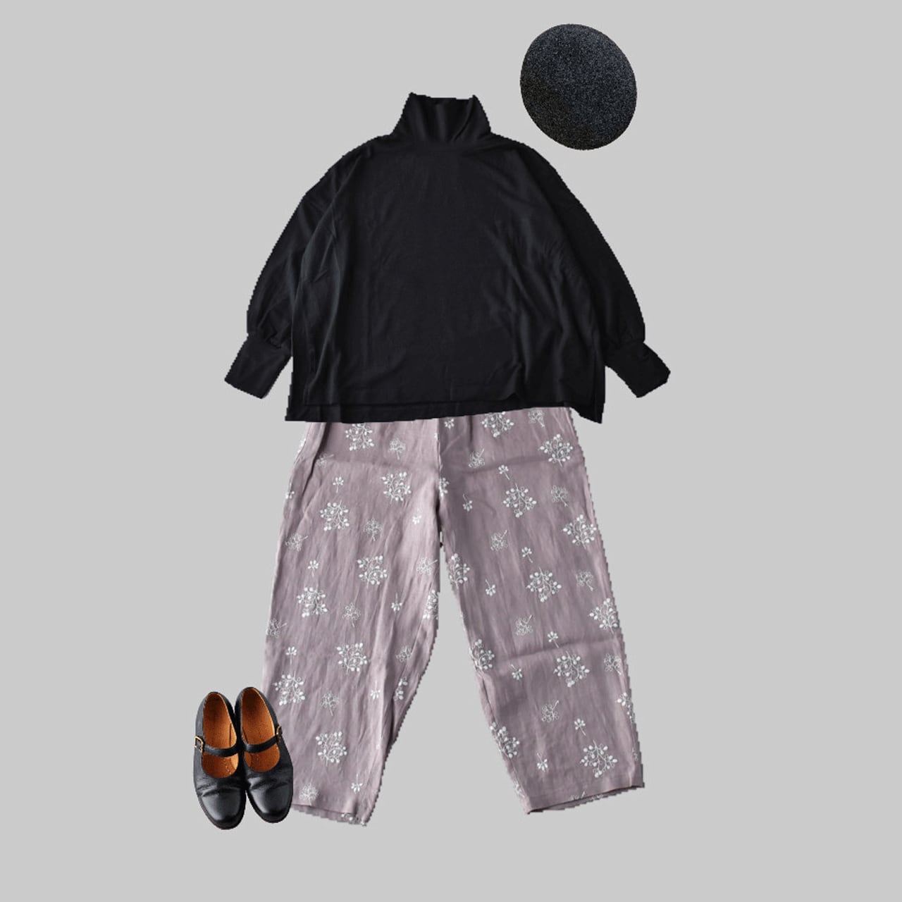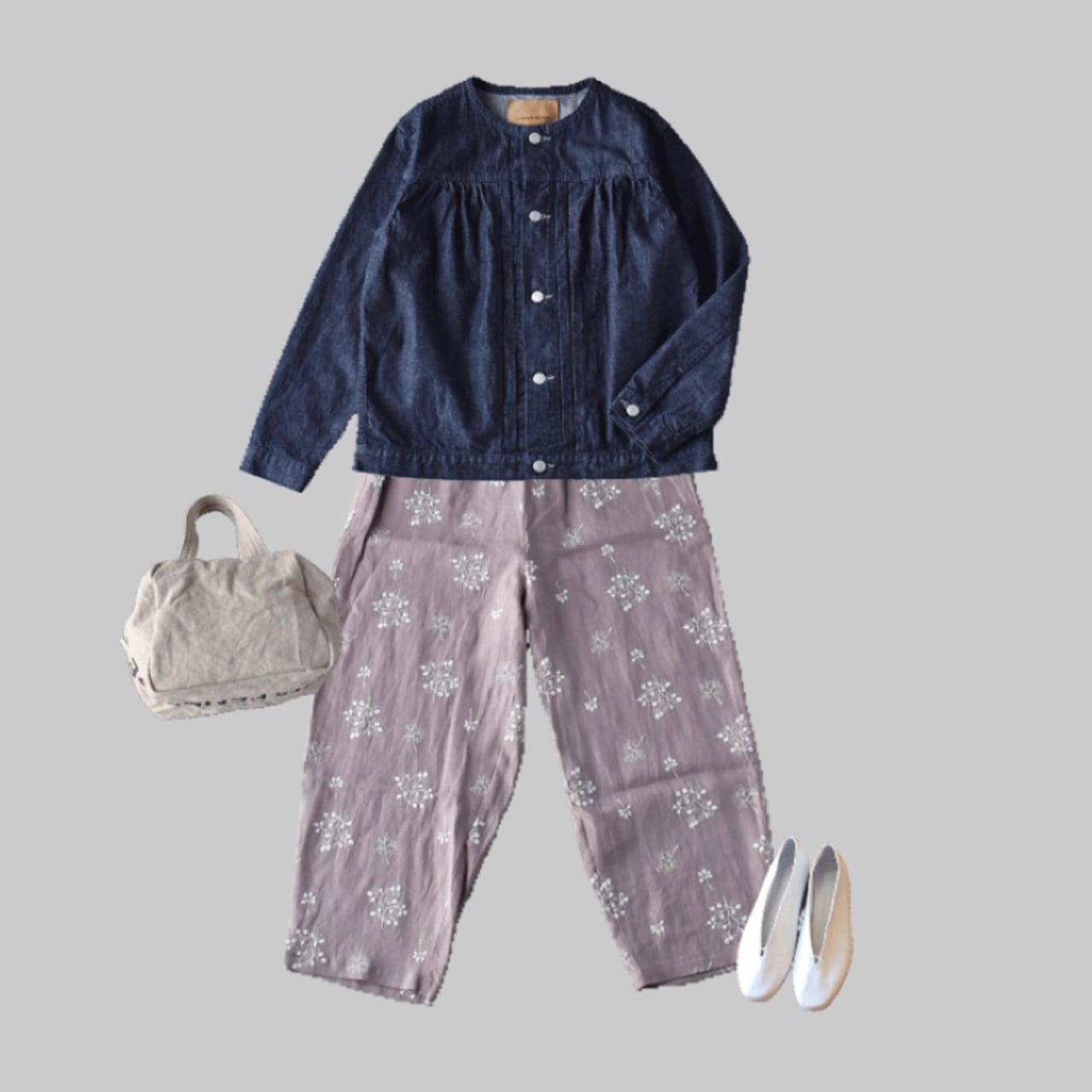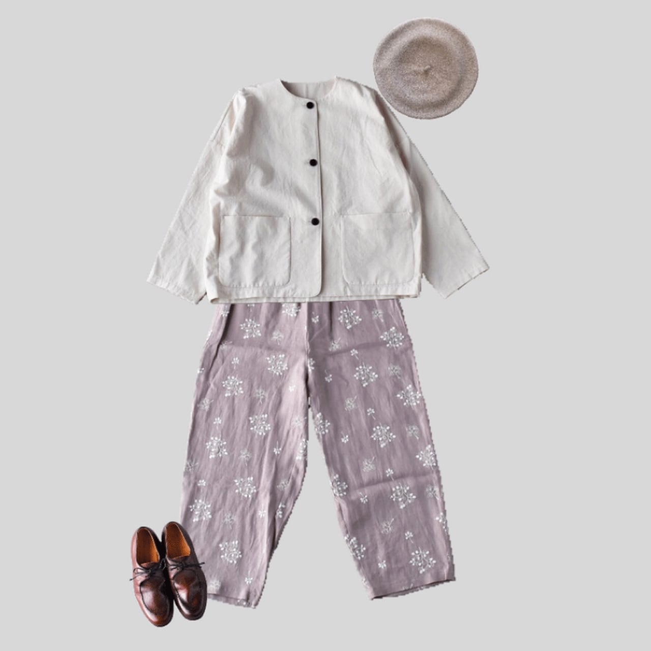 MAGALIから、オリジナルテキスタイル「TSUBOMI」で仕立てたイージーパンツが届きました。ポッテリと丸みを帯びたフォルムに繊細な蕾の刺繍が散りばめられた姿が本当に愛らしい一枚ですよ~。股上が深く、包み込まれるような安心感のある、軽い履き心地で楽しんで頂けます。裏地付きなのも嬉しいですね。生地を叩きほぐす事でふっくらと仕上げたフレンチリネン生地もとっても優しい風合い。春夏の着こなしを楽しく豊かにしてくれる文句なしに可愛い一着です。