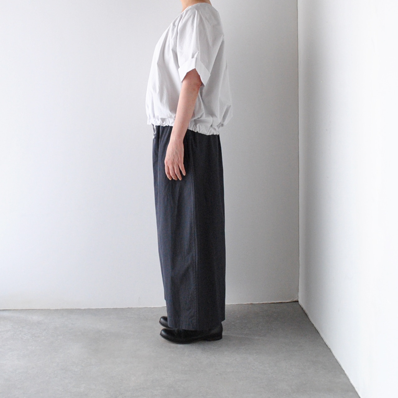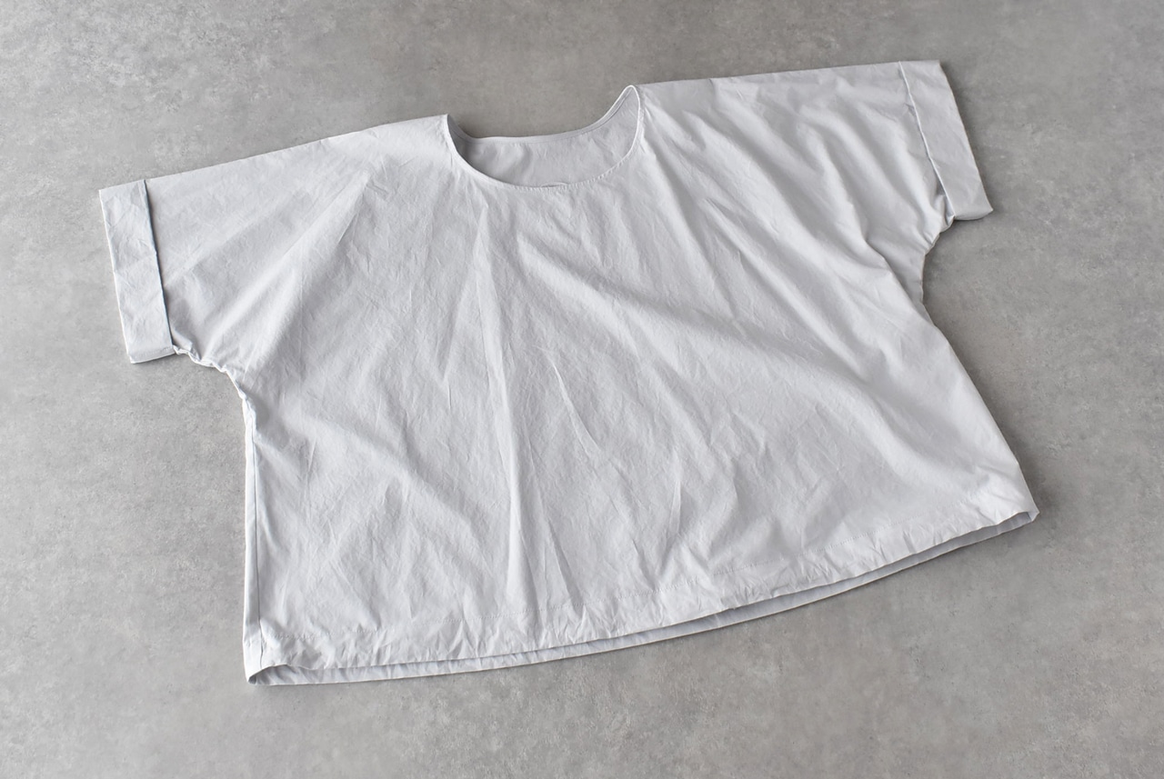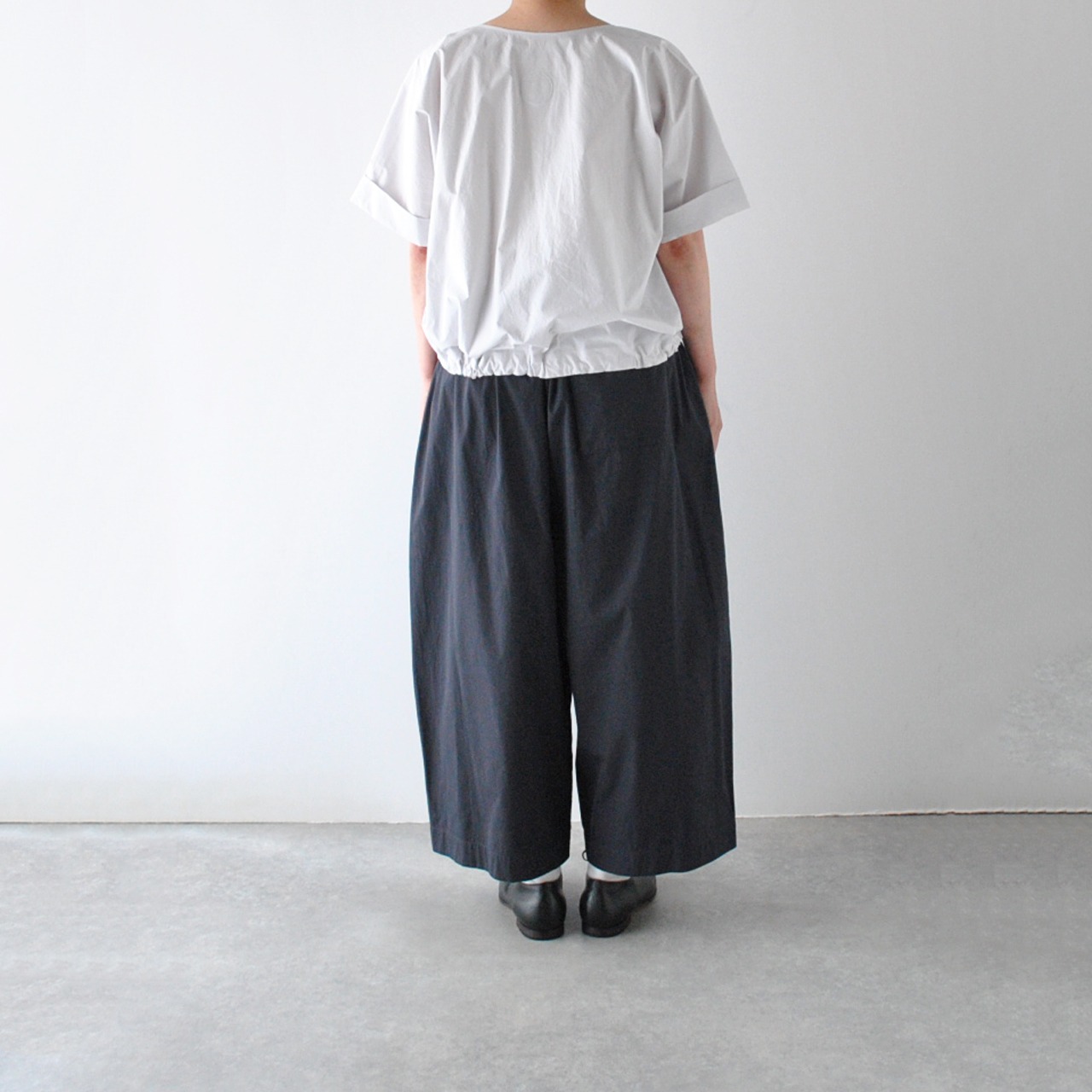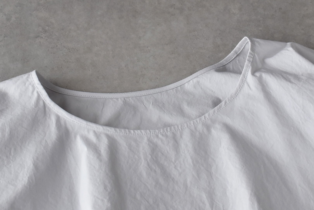 Atelier d'antanから、上質なイタリア産コットンのシャツ地で仕立てたプルオーバーブラウスが届きました。裾に通したリボンをキュッと絞ると空気を含んだ様なふっくらと動きのあるフォルムで楽しめる一枚です。袖の折り返しもポイントで、シンプルですがダンタンらしいとっても洗練された雰囲気。パンツにもスカートにもバランスよく合わせて頂けますよ。