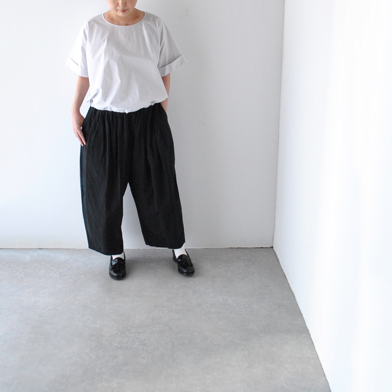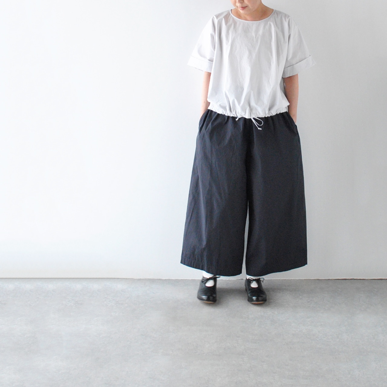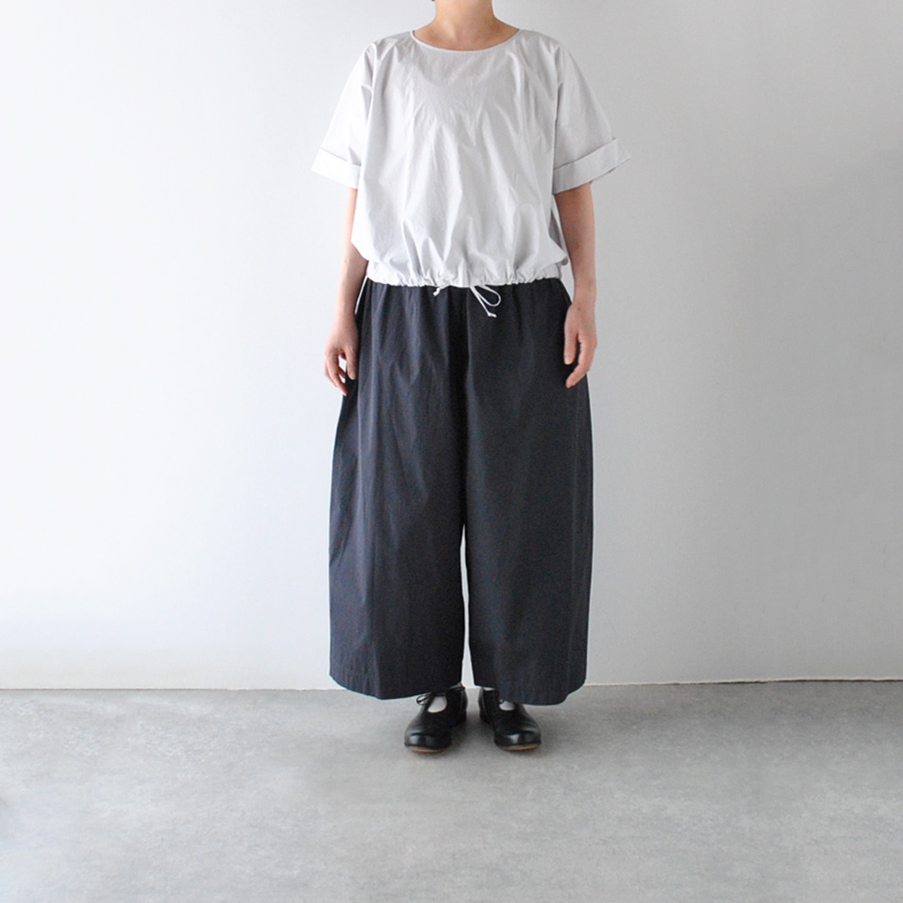 Atelier d'antanから、上質なイタリア産コットンのシャツ地で仕立てたプルオーバーブラウスが届きました。裾に通したリボンをキュッと絞ると空気を含んだ様なふっくらと動きのあるフォルムで楽しめる一枚です。袖の折り返しもポイントで、シンプルですがダンタンらしいとっても洗練された雰囲気。パンツにもスカートにもバランスよく合わせて頂けますよ。