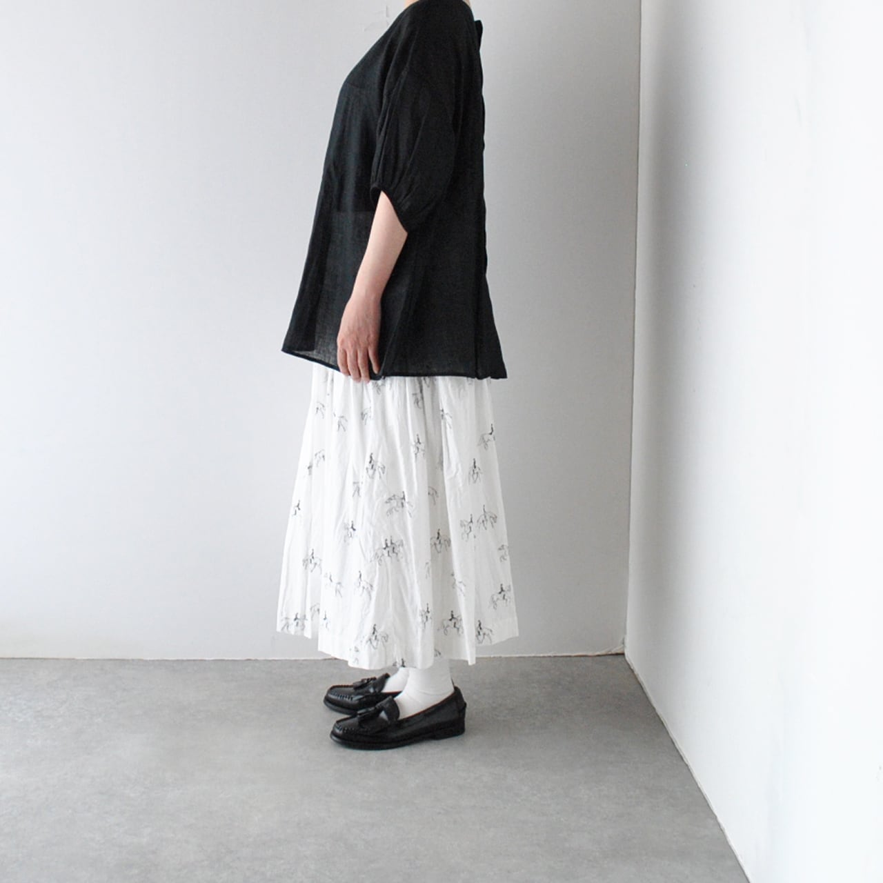 薄手のリネン素材で仕立てたROBE de PEAUのエアリーなパフスリーブブラウス。身体のラインを拾わないゆったりとしたシルエットは、大人の女性がリラックス感たっぷりに楽しんで頂ける一枚です。シンプルな中にもふっくらとした袖や、背中にボタンを配した後ろ開きのデザインなど、ROBE de PEAUらしい個性を感じますね。裾を出してゆる~くラフに楽しむのはもちろん、ボトムにインしたスタイルも、ふっくらとしたシルエットが際立って可愛いですよ。