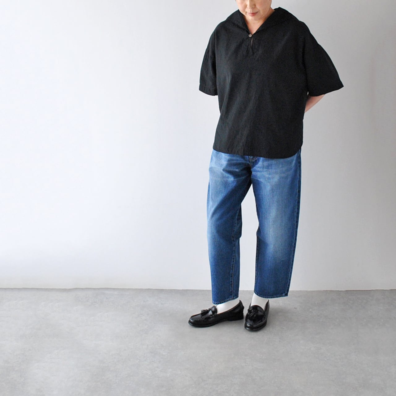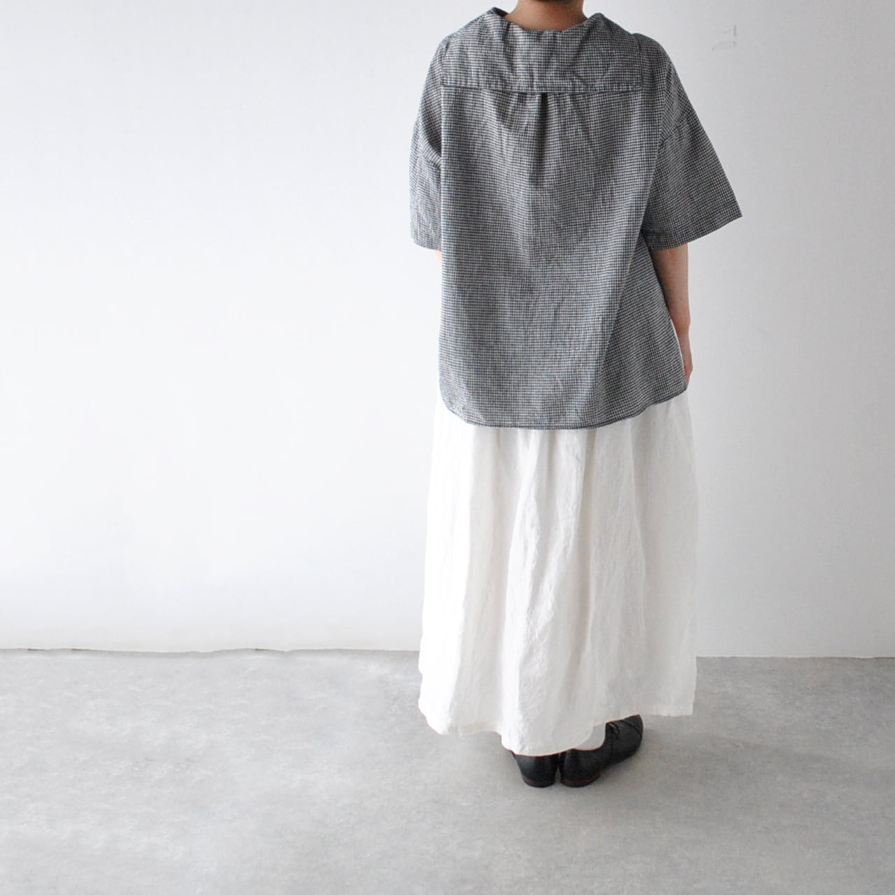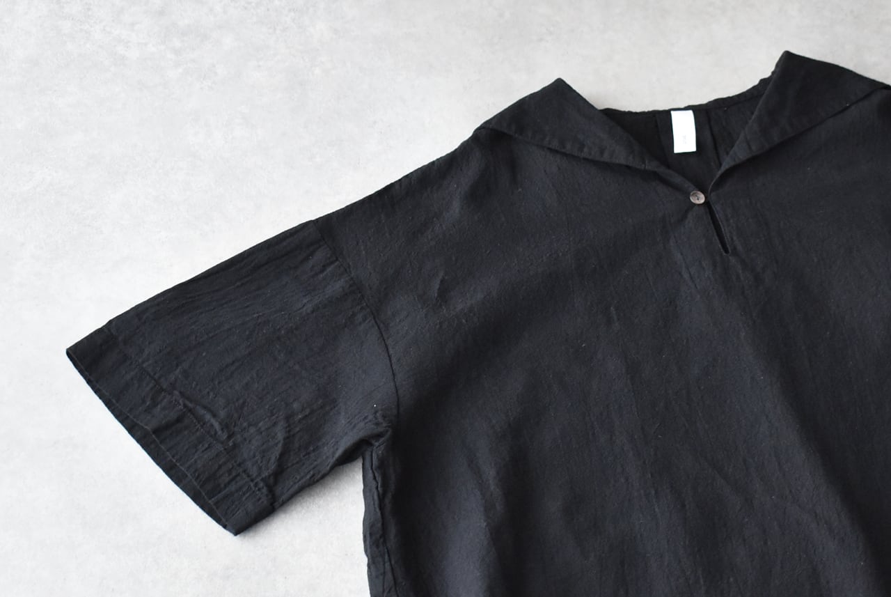 pritから首周りをスッキリと見せてくれるセーラーカラーが印象的な5分袖ブラウスが届きました。身幅・肩幅を大きく取ったデザインで、ゆったりとリラックス感たっぷりに楽しんで頂ける一枚です。ゆったりとしてますが、着用するとスッキリと見えて、とても愛らしいシルエット。二の腕が隠れる5分袖や、腰周りをフォローしてくれる後ろ丈が長くなったデザインも嬉しいですね。クシュッとしたシワ感が風合いの良い綿麻素材は、ふっくらとした優しい肌触りで、空気を纏うような軽い着心地。本当に快適なので、色違いで揃えて頂くのもオススメですよ~。