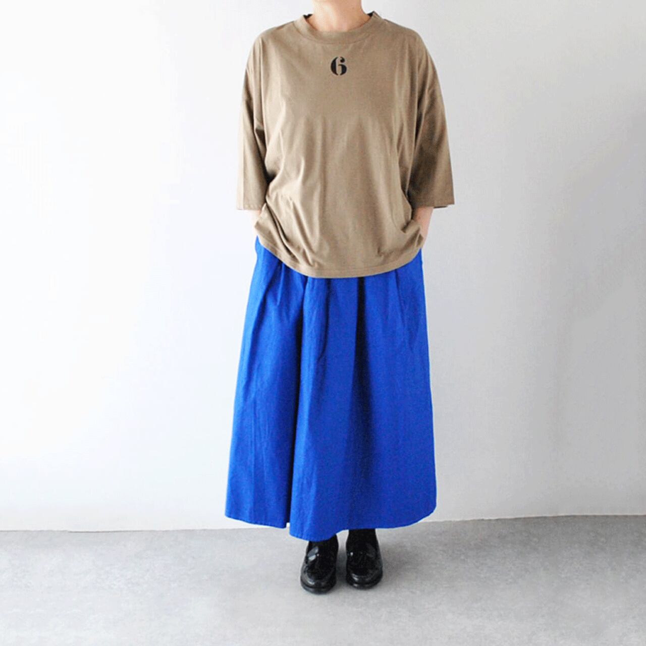LABORATORYからフランスの古い木箱で見る様なステンシルのナンバリングが素敵なTシャツが届きました。身幅ゆったり、ドルマンスリーブの少しルーズなシルエットがとても雰囲気のある一枚です。渋めのカラーリングが絶妙で、ベーシックカラーのボトムはもちろん、ビビッドなカラーのボトムとも意外な程相性良くコーディネートして頂けますよ。見た目の印象よりもソフトで滑らかな生地感で、リラックス感たっぷりに着て頂けます。