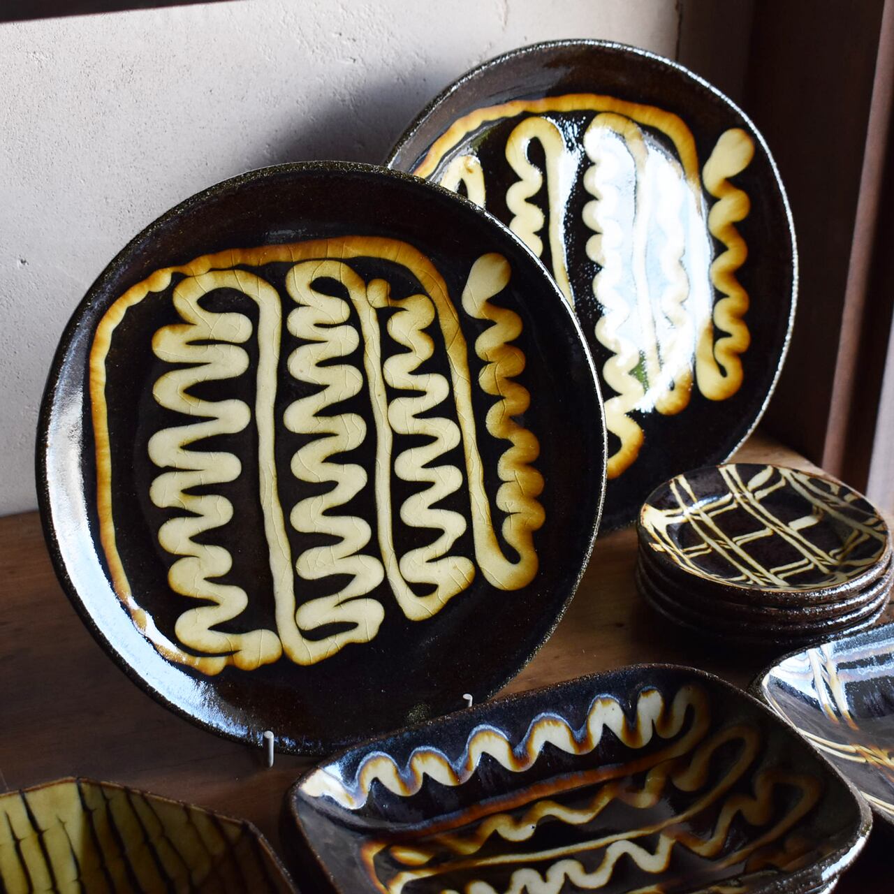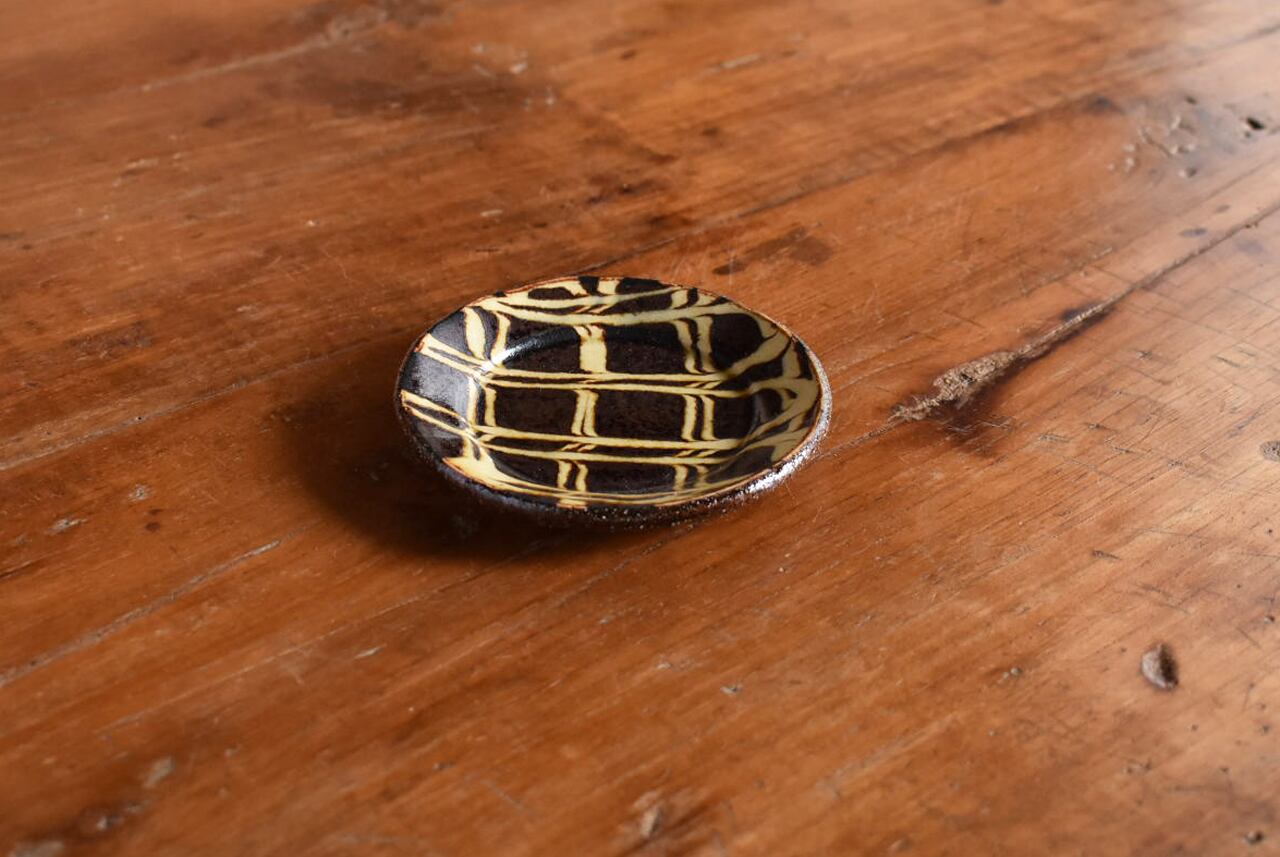 長崎県波佐見にて作陶されている中川紀夫さんのスリップウェアの豆皿です。カットした果物や、ちょっとしたお惣菜、お漬物やアイスクリームなど。ちょっとだけ、でもちょうどいい、そんな適量を盛りつけられる我が家でも出番の多いオススメの一枚。