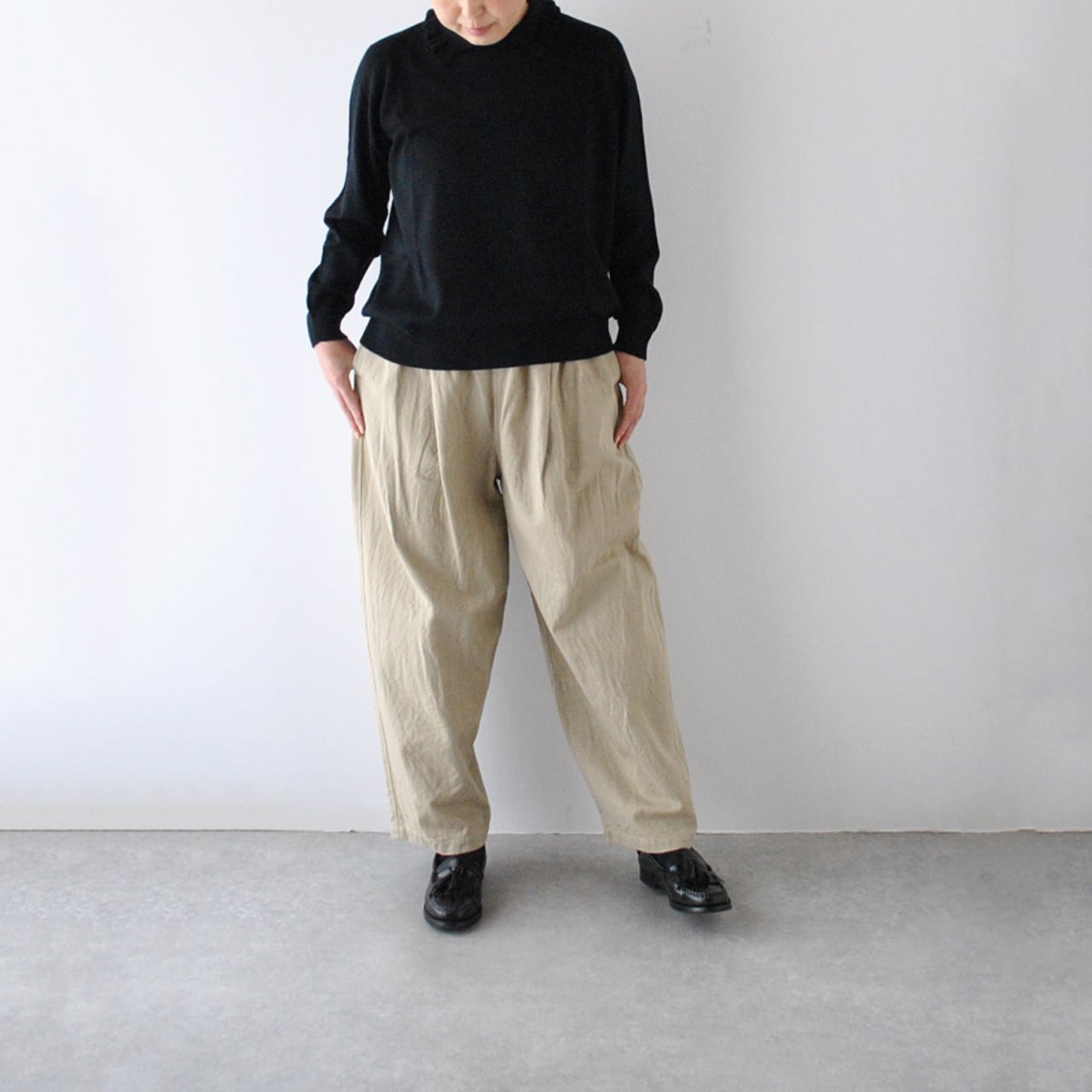 チクチク感のない滑らかな肌触りのメリノウールで編み上げたCionの襟付きニット。主張しすぎないフリル襟がクラシカルで上品な印象の一枚ですよ。体のラインを拾わない程よくゆとりのあるシルエットで、スカートに合わせれば上品に、デニムと合わせてラクに楽しむのもオススメ。厚すぎず薄すぎない絶妙な肉感で着心地も軽いですよ。秋口から春先まで長く楽しんで頂けます。
