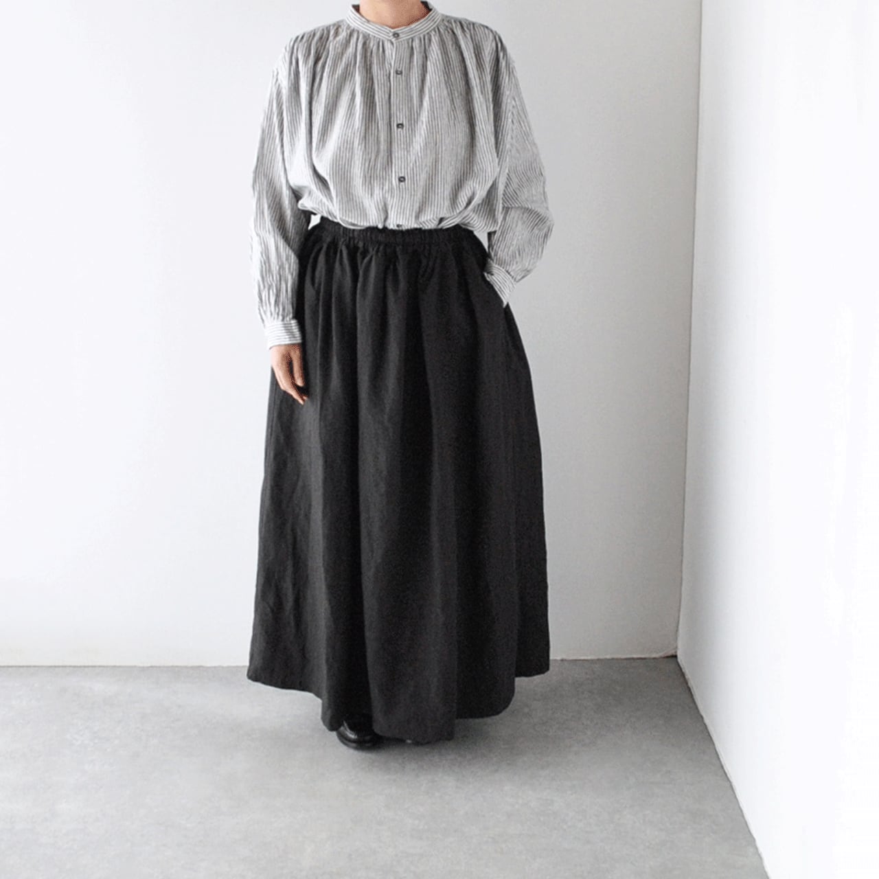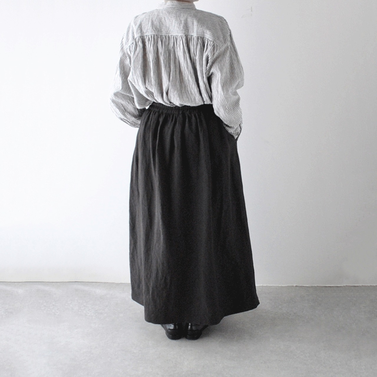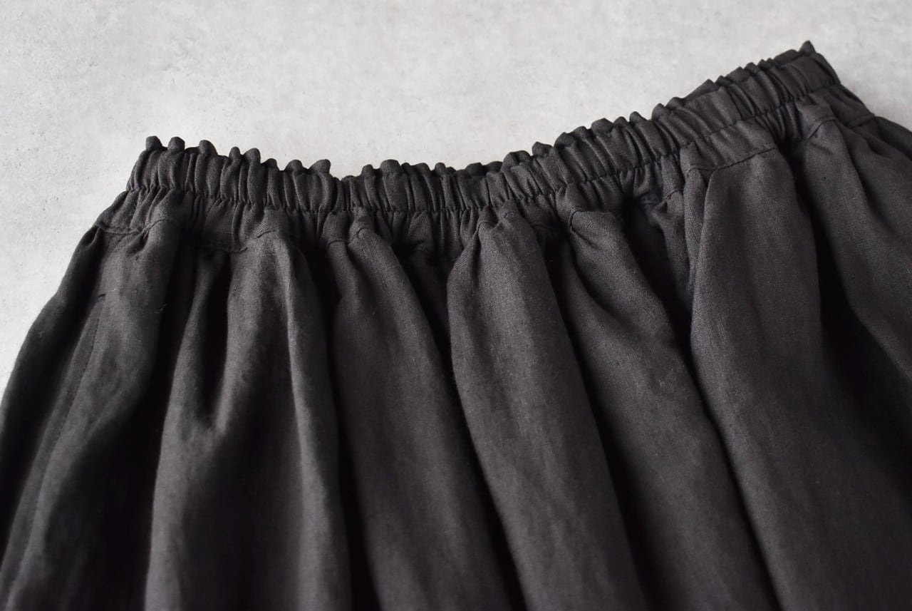 ichi Antiquités リネンロングギャザースカート (ブラック) 1100303