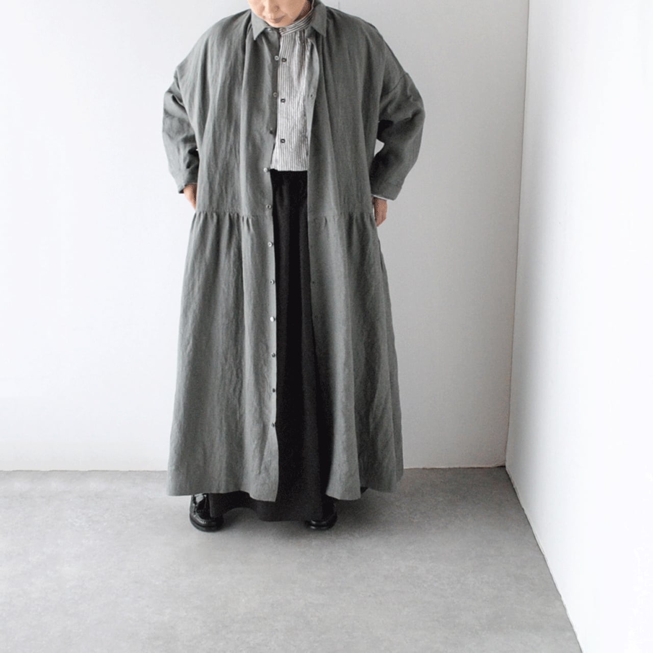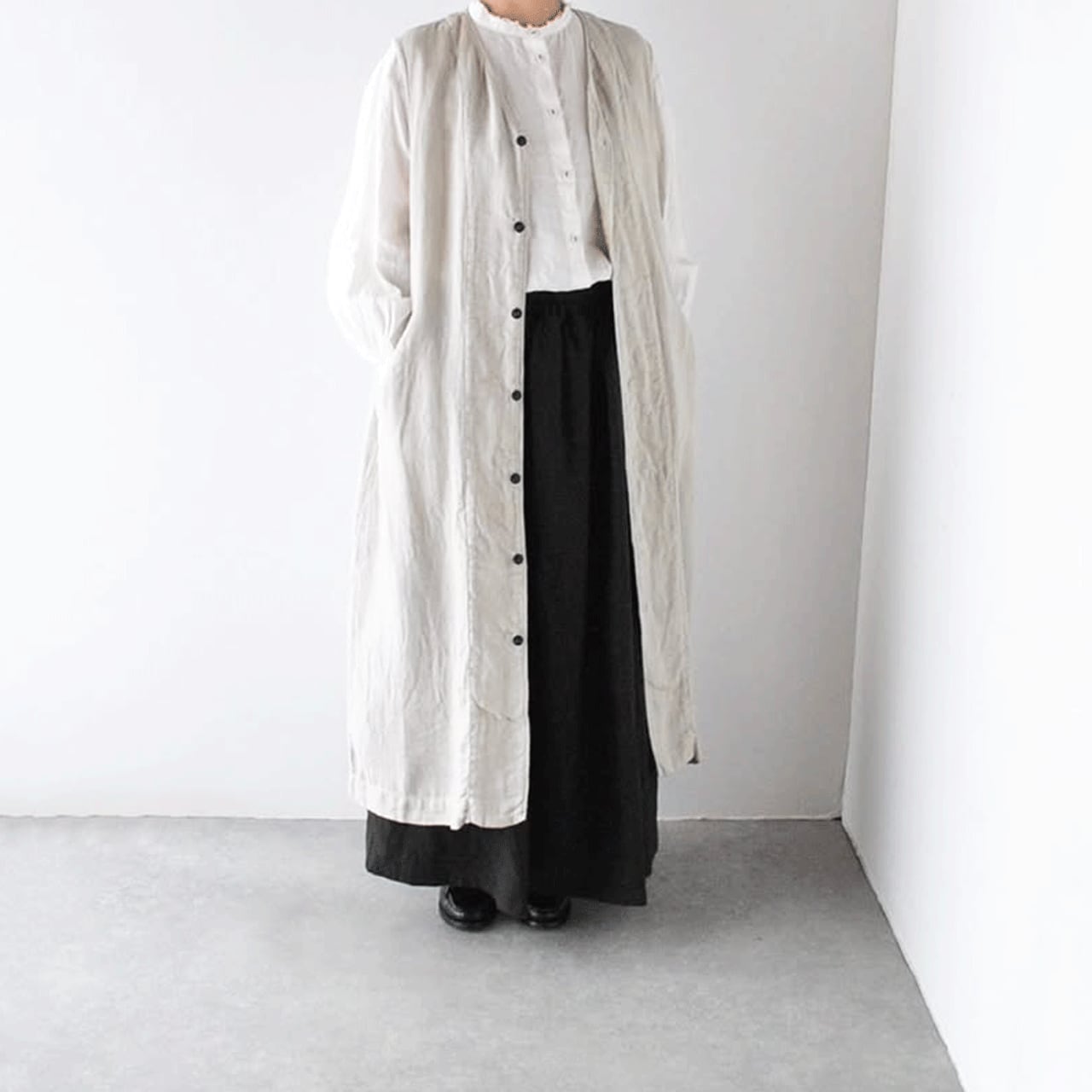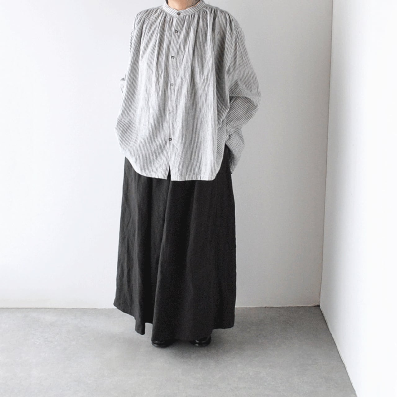 ichi Antiquités リネンロングギャザースカート (ブラック) 1100303