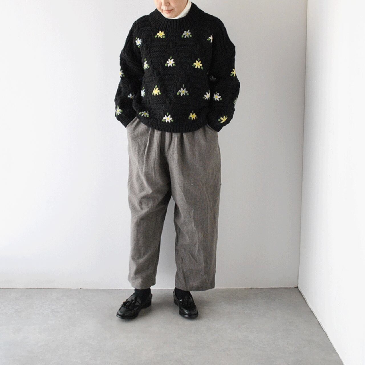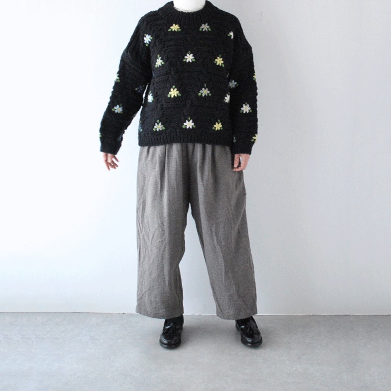 ichi Antiquités ペルーニットセーター (ブラック) 1100364