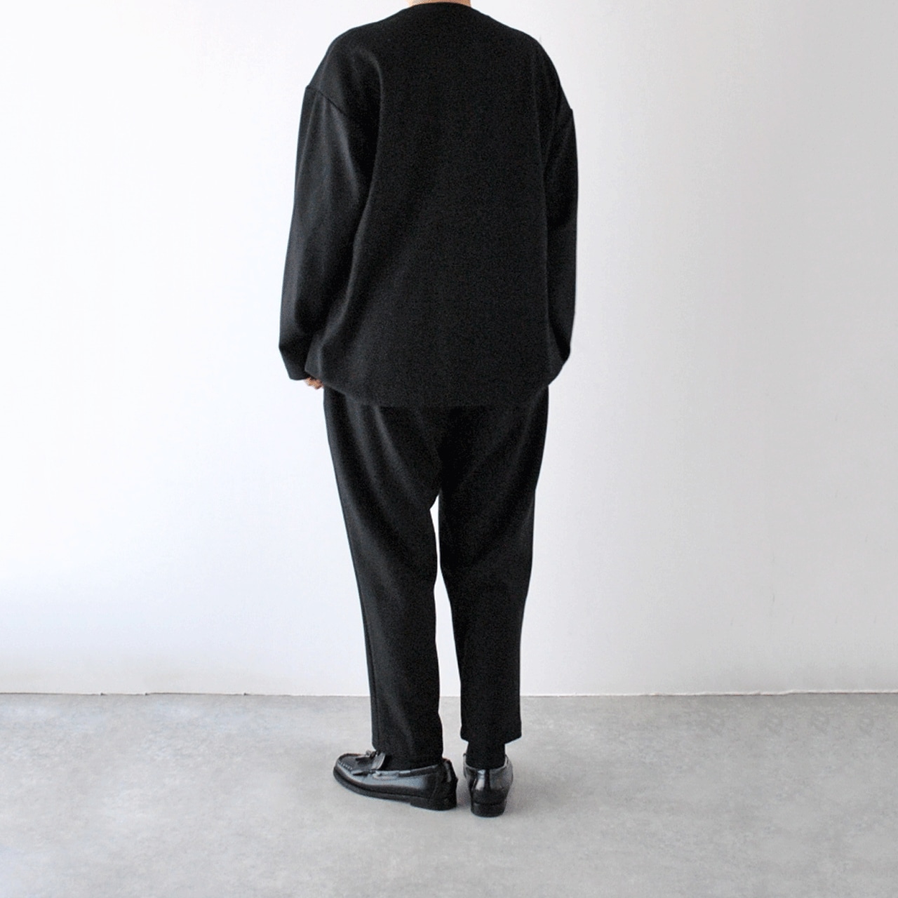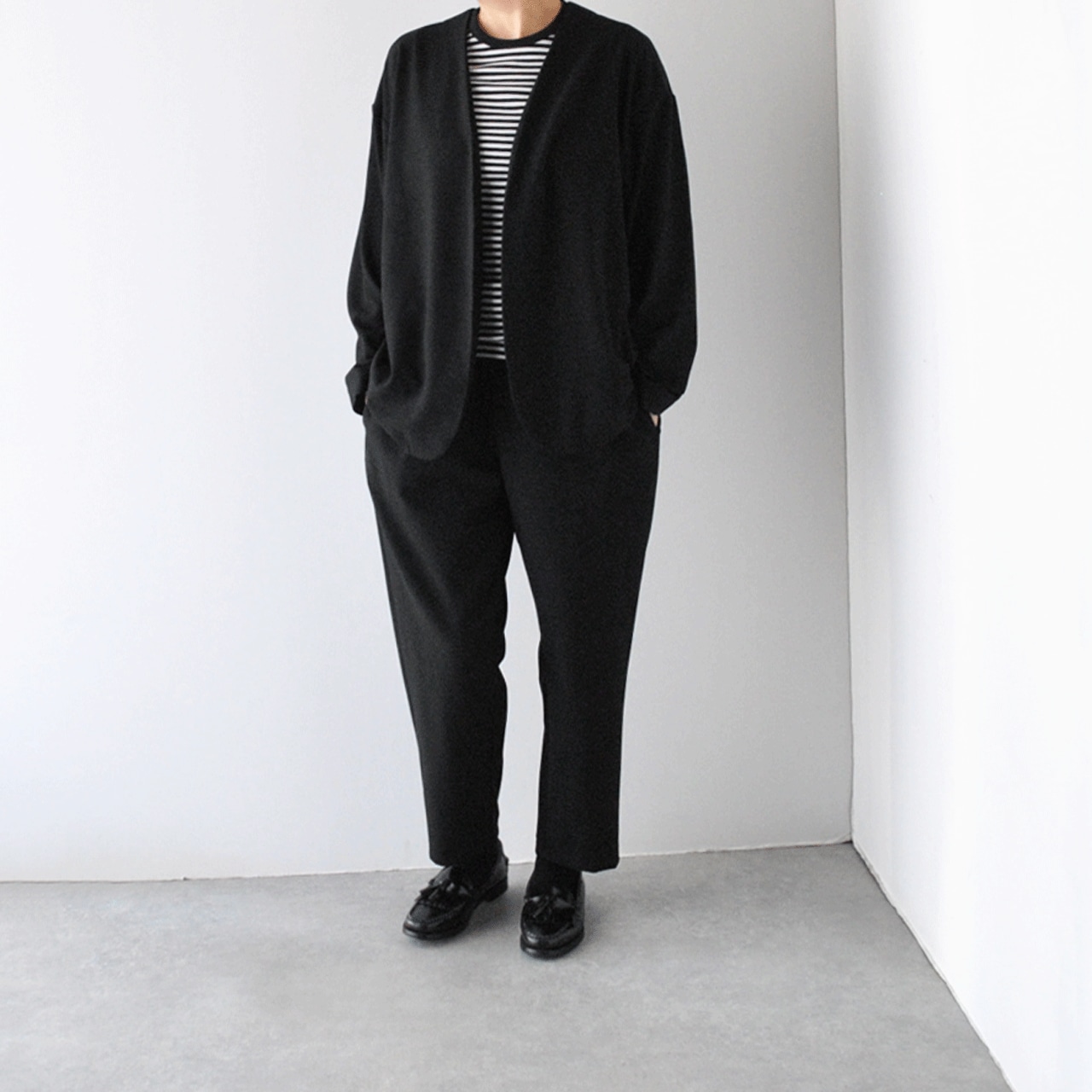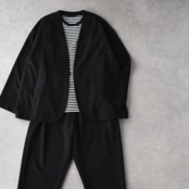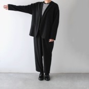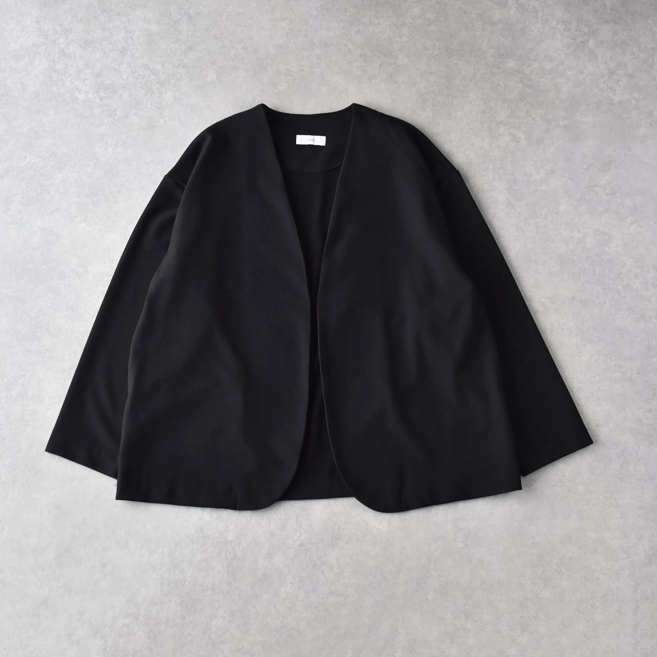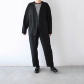 pritから、ボタンレスでカーディガンの様にサッと羽織れる気軽さが嬉しいジャケットが入荷しました。肩幅、身幅のゆったりとしたリラックス感の着心地ながら、スッキリとした印象に仕上がる一枚です。同素材のテーパードパンツとセットアップも出来るので、ちょっとしたフォーマルなシーンにもオススメ。ストレッチ感のあるポリエステル×レーヨン素材で、汚れやシワが付きにくく扱いやすいです。本当にシンプルで、様々なボトムやワンピースにスッと馴染んでくれるので、一枚あると重宝してくれますよ。