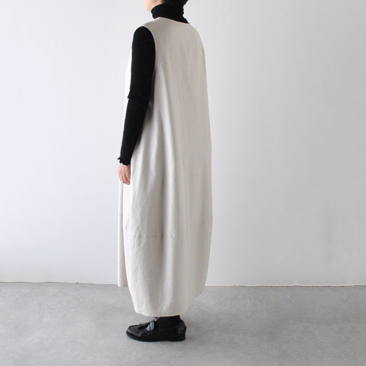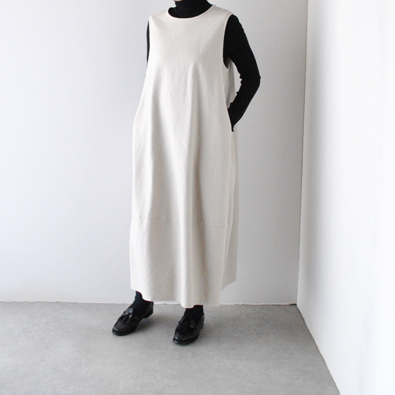 pritから、季節のインナーと合わせて簡単に雰囲気良く楽しめるノースリーブワンピースが届きました。柔らかな丸みを帯びたコクーンシルエットが優しい表情で可愛いですね。立体的なウネのある表面の織り柄も特徴的で、落ち着きのある上質な雰囲気。程よい厚みのコットン素材はストレッチ感があり、透け感がないのも嬉しいポイント。真夏以外の長いシーズン活躍してくれますので、一枚あるととても重宝しますよ。