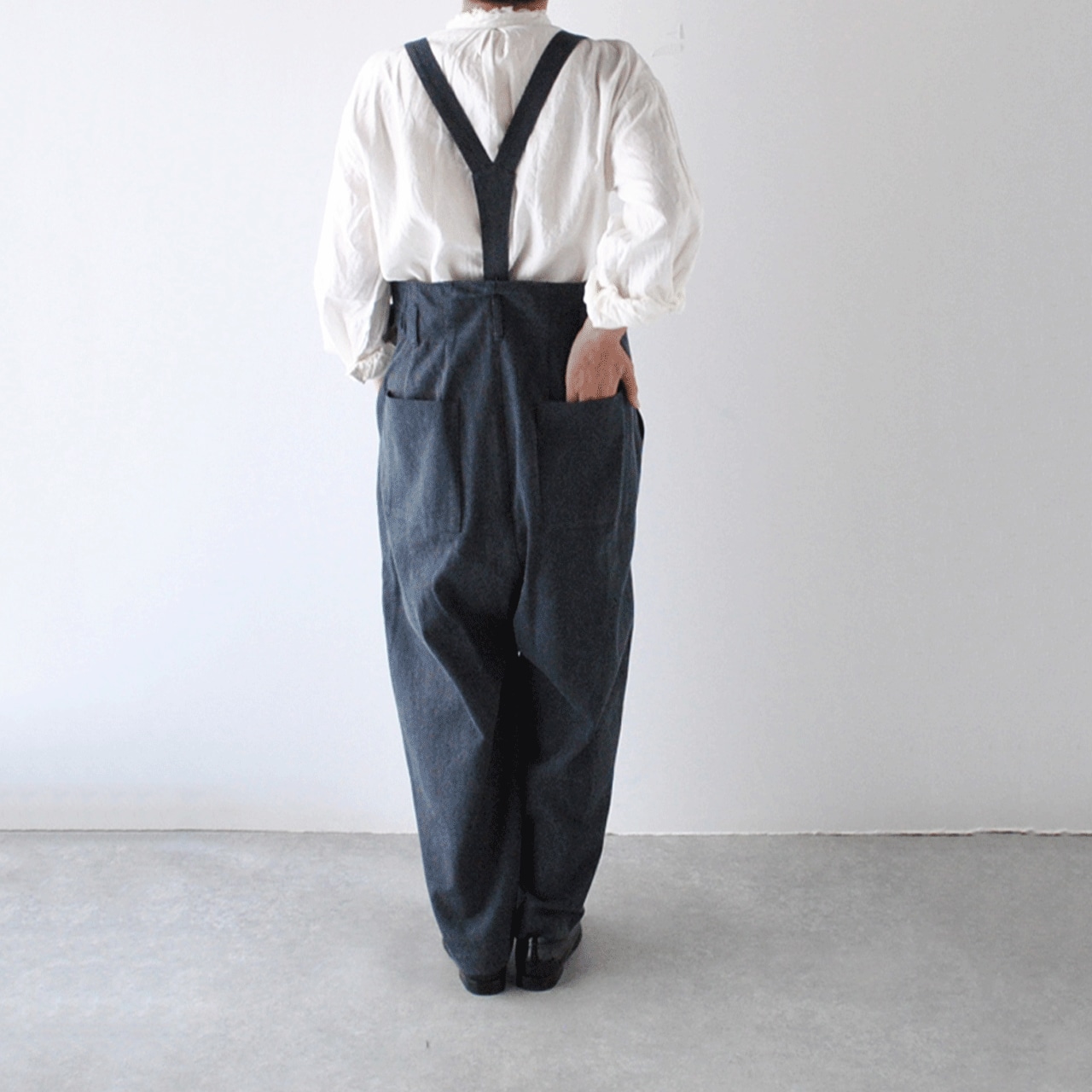 atelier naruse カツラギコットンリネンサスペンダーパンツ (ネイビー) f05111