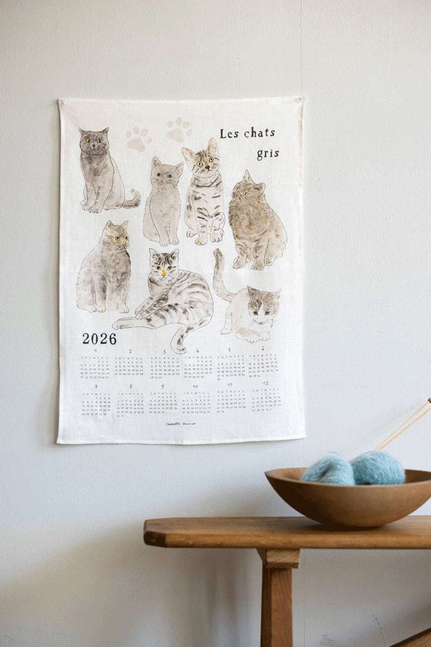 fog linen work 2026 リネンカレンダー (グレーの猫たちいろいろ)
