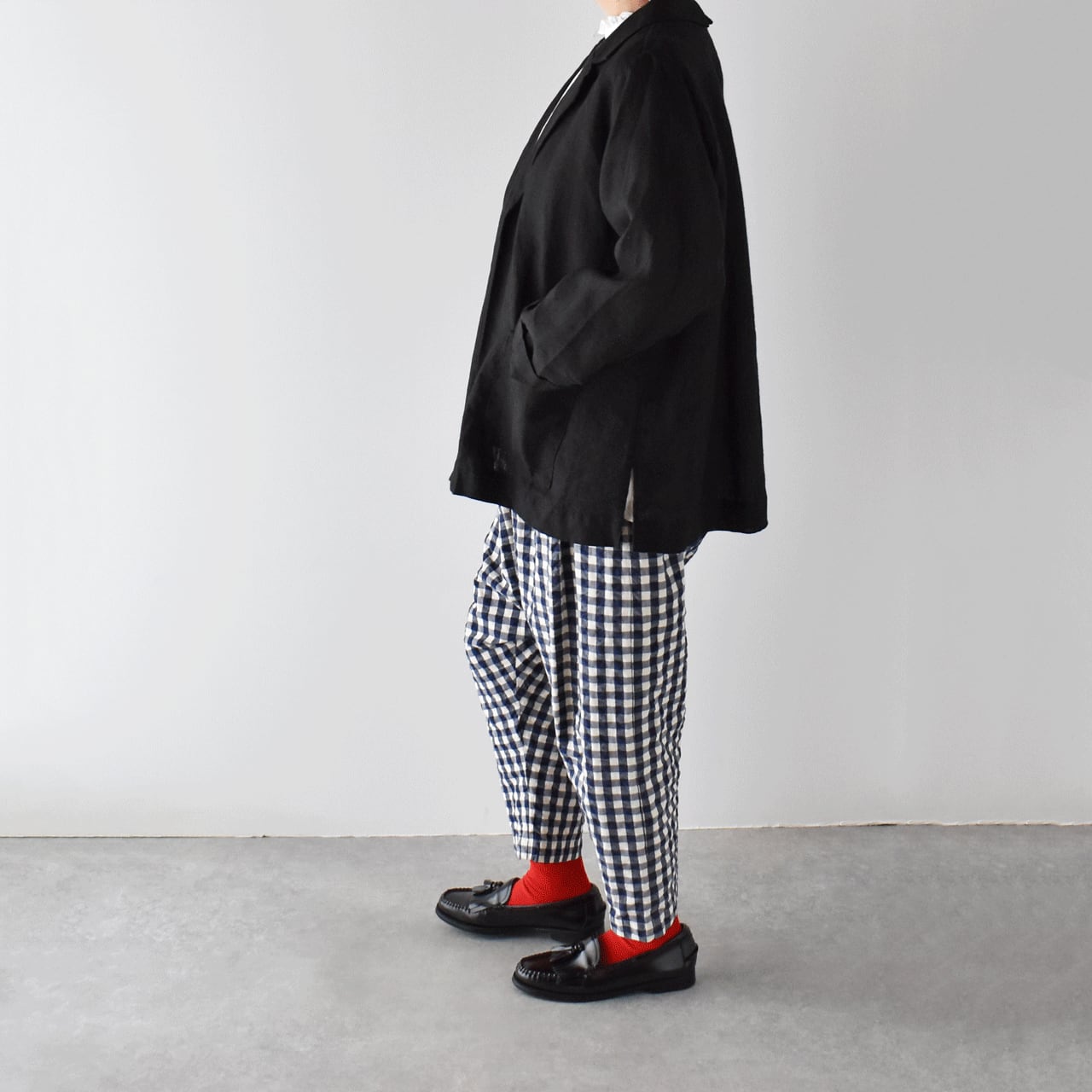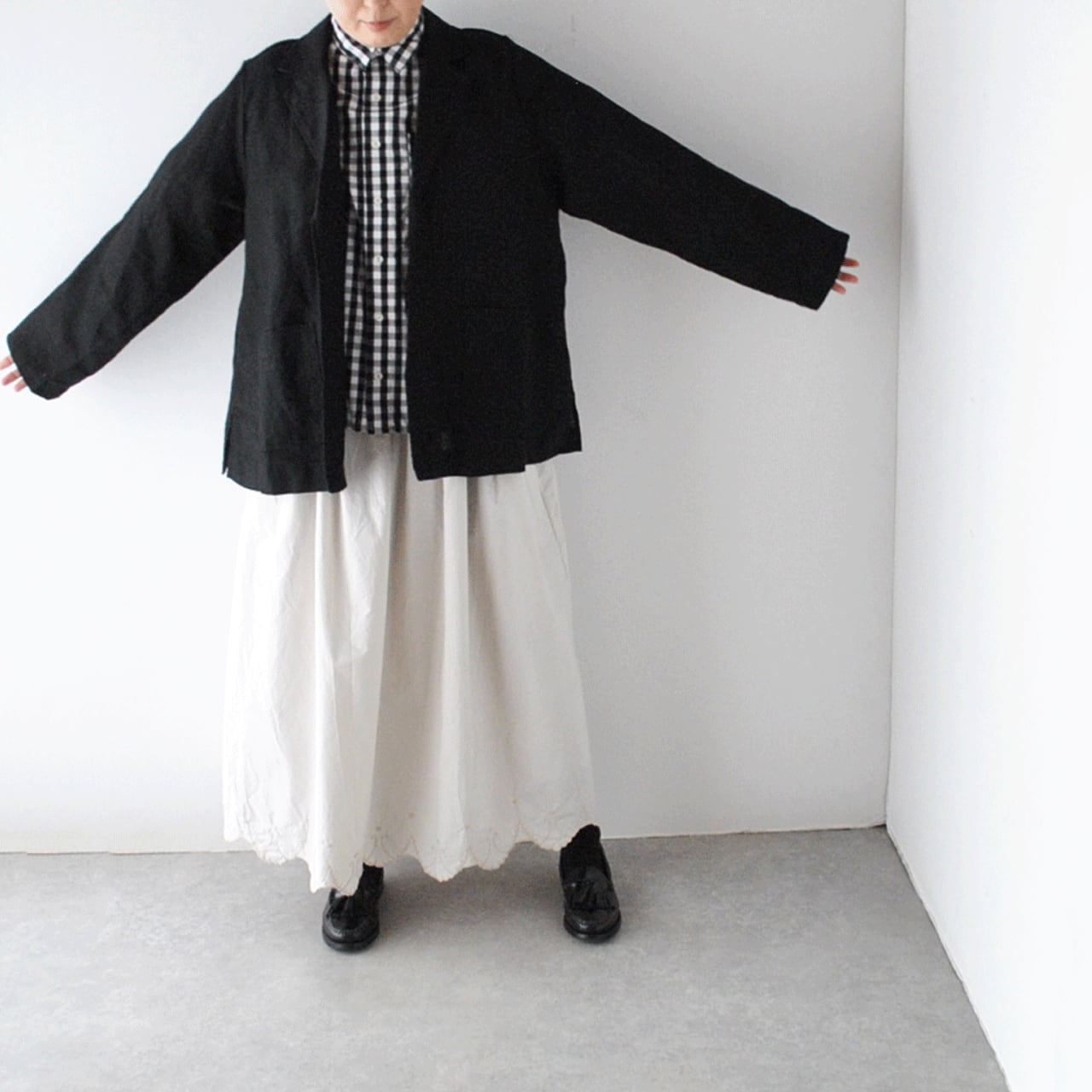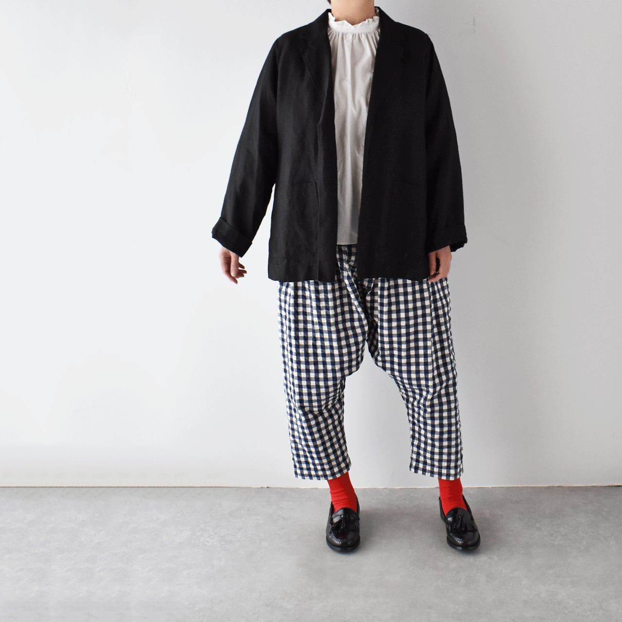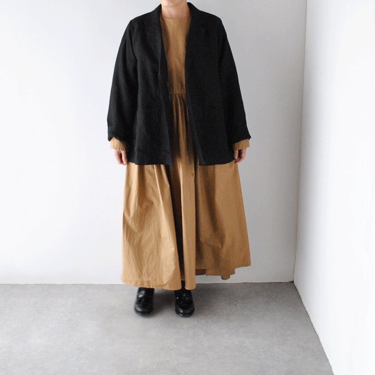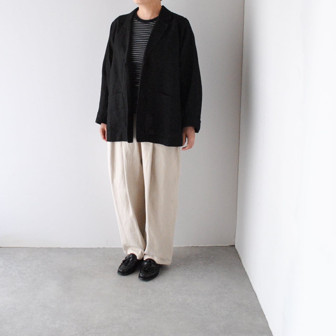 fog linen workから、様々なスタイルに気軽に羽織って楽しめるボタンレスのリネンジャケットが届きました。テーラードカラーが程よくキチンとした印象でリネンの素材感も絶妙なニュアンス。パンツやスカート、ワンピースに一枚プラスして頂くとグッとこなれた雰囲気に仕上げてくれますよ。気温の変わりやすい時期にぜひ持っておいて頂きたい便利な一枚です。