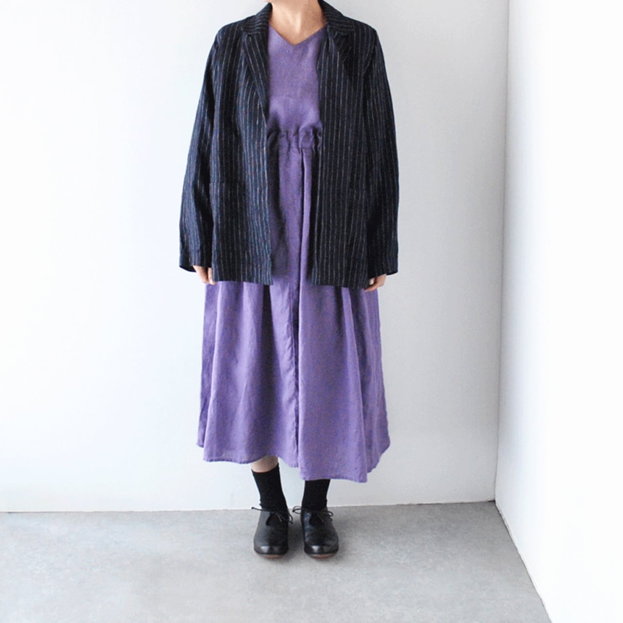 fog linen workから、様々なスタイルに気軽に羽織って楽しめるボタンレスのリネンジャケットが届きました。テーラードカラーが程よくキチンとした印象でリネンの素材感も絶妙なニュアンス。パンツやスカート、ワンピースに一枚プラスして頂くとグッとこなれた雰囲気に仕上げてくれますよ。気温の変わりやすい時期にぜひ持っておいて頂きたい便利な一枚です。