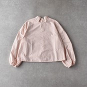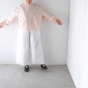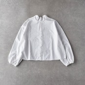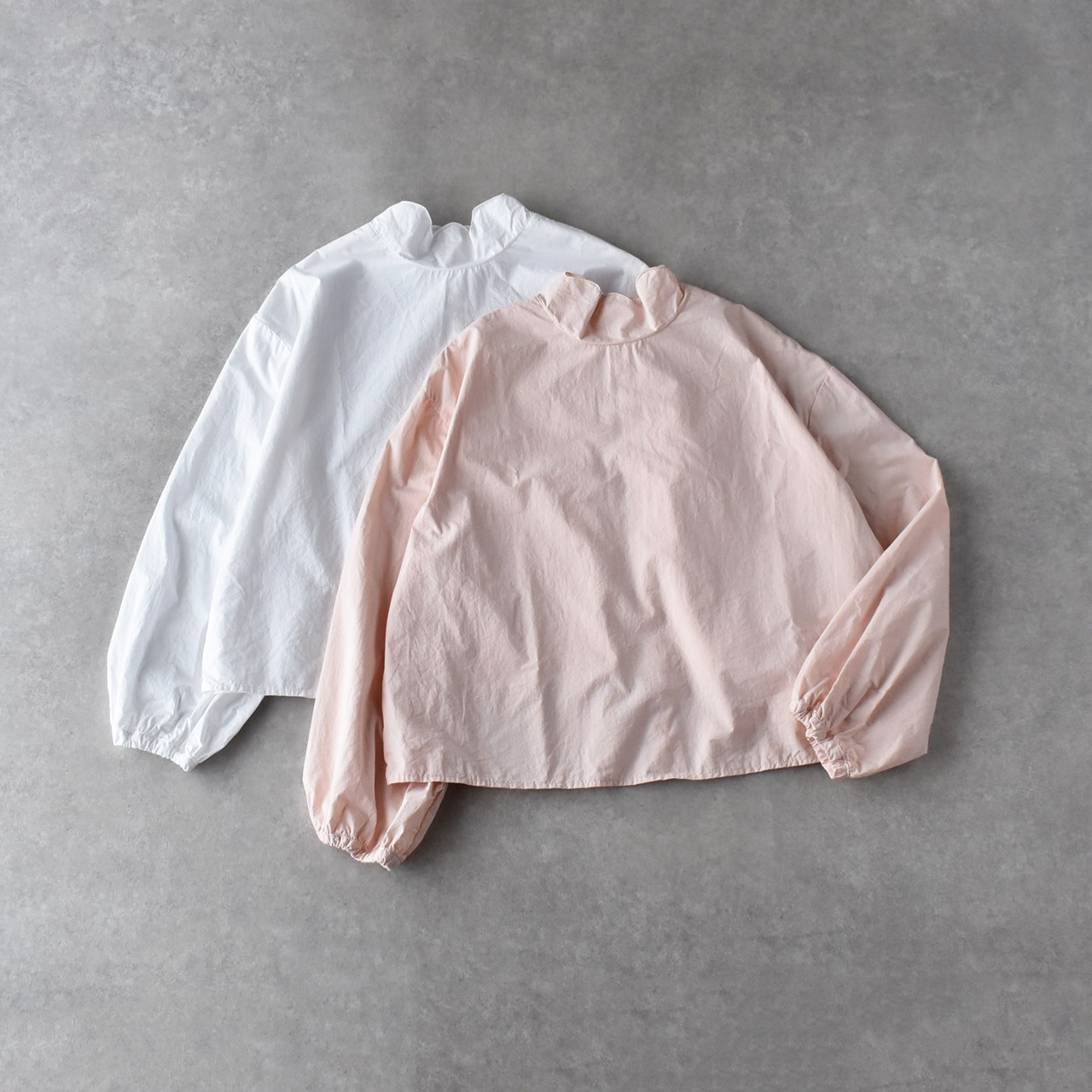 ROBE de PEAUから、ハイネックに波型のスカラップ刺繍を施したスモックブラウスが届きました。ヨーロッパの素朴な人形が着ていた洋服をイメージしたROBE de PEAUらしい一枚ですね。シンプルに一枚で着ても、ジャケットを羽織って襟元の個性を際立たせても素敵ですよ。ゴムギャザーの袖口も優しい表情。ボタン面を前にしても楽しめる2WAY仕様になります。