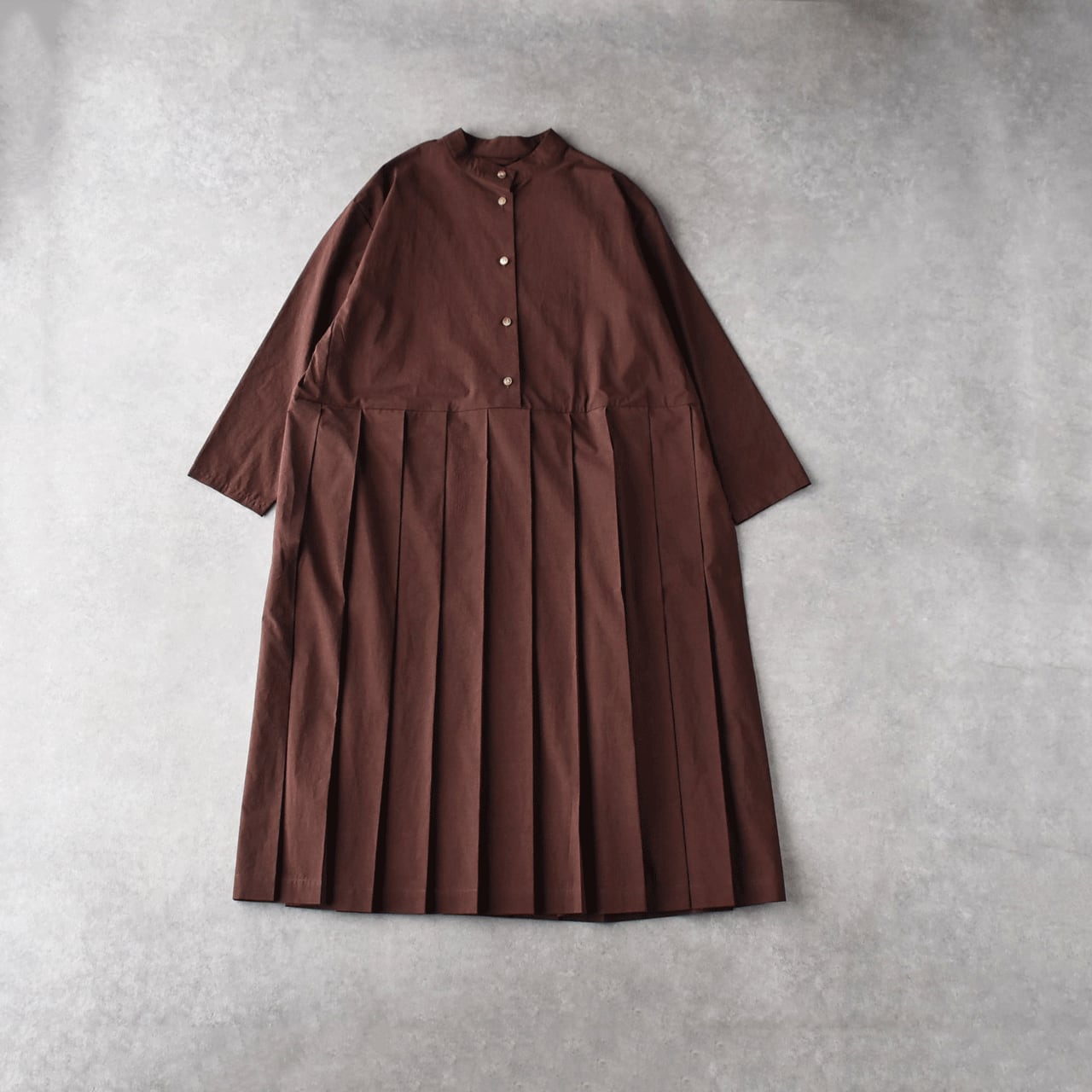 Atelier d'antan Beaux コットンプリーツワンピース (ダークブラウン)