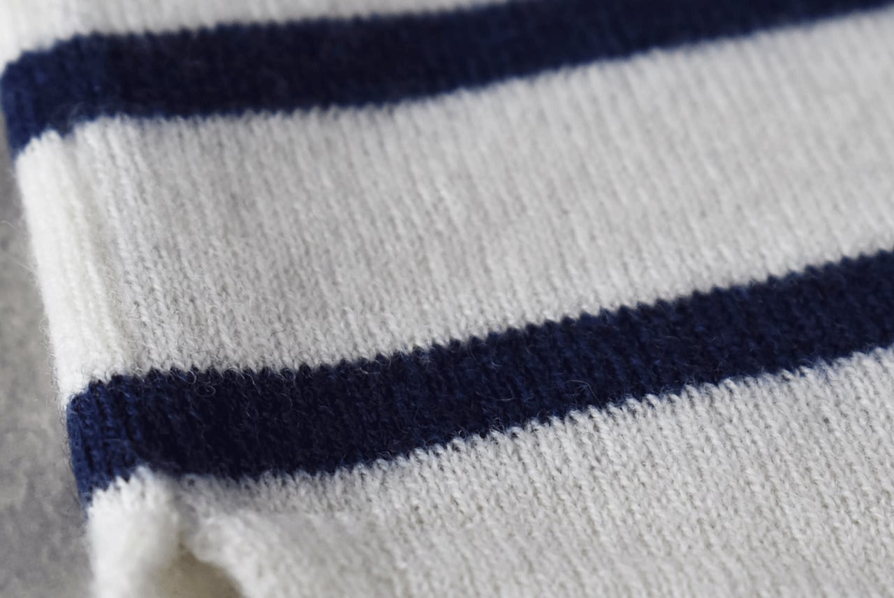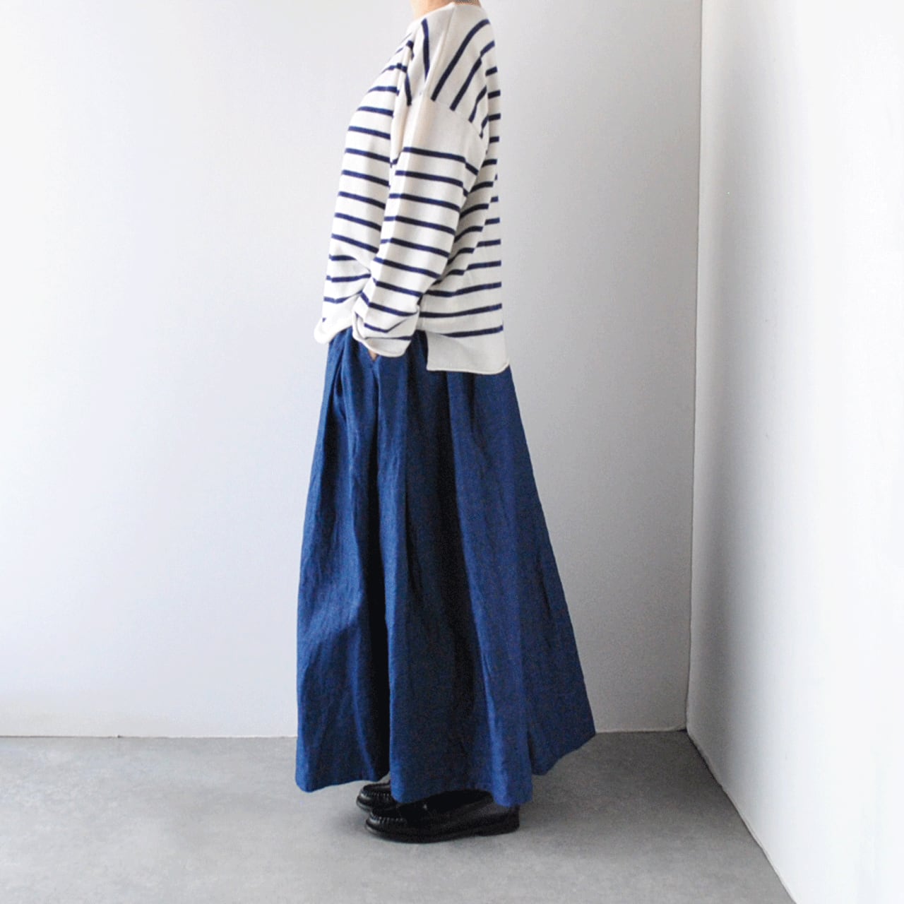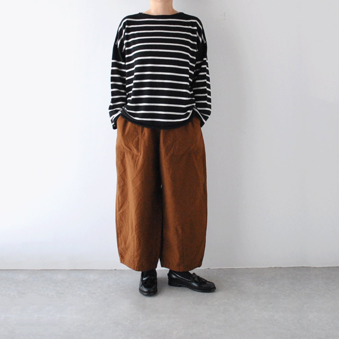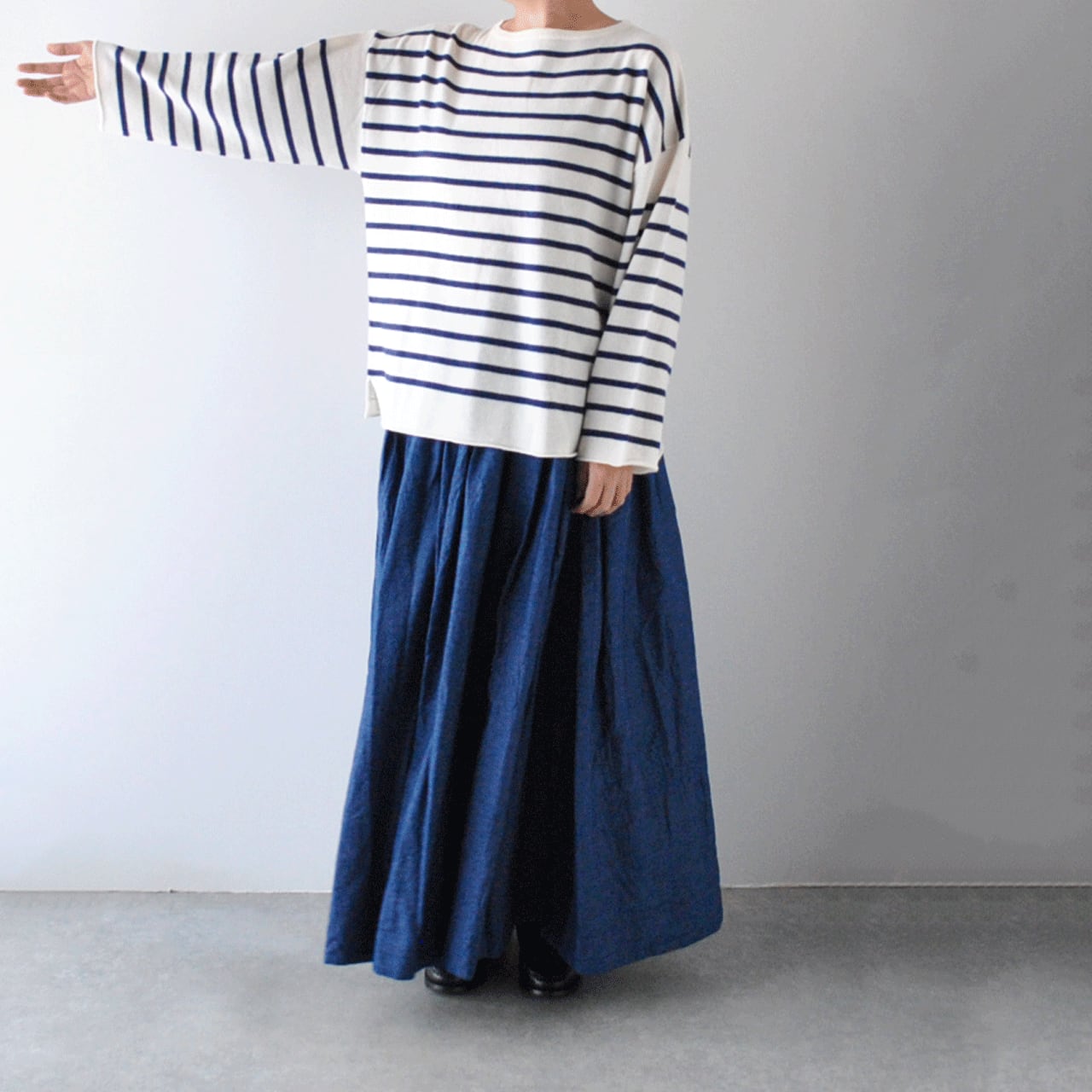 LABORATORYから、ふっくら軽い着心地で楽しめるボーダーニットが届きました。ゆったりとしたワイドシルエットで大人っぽく仕上がる一枚です。シンプルでクセのないデザインは、パンツにもスカートにも相性抜群。シャツに重ねてももたつかないので、一枚あると着こなしの幅が広がりますよ。