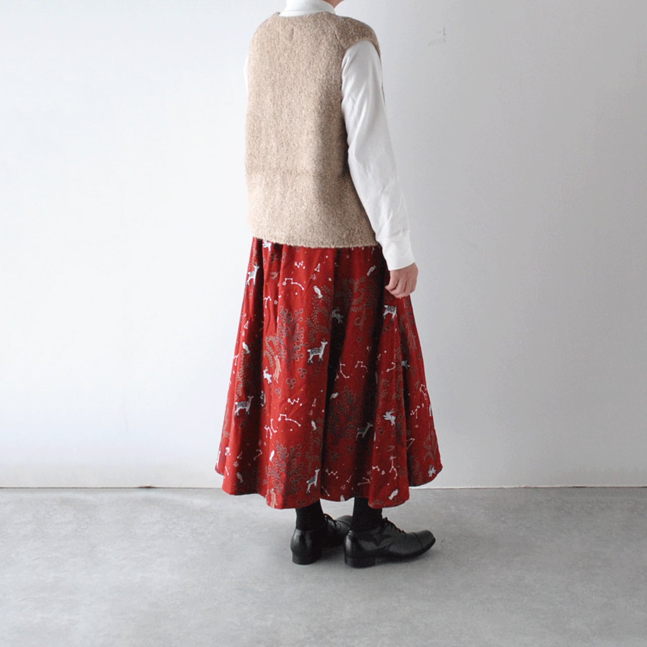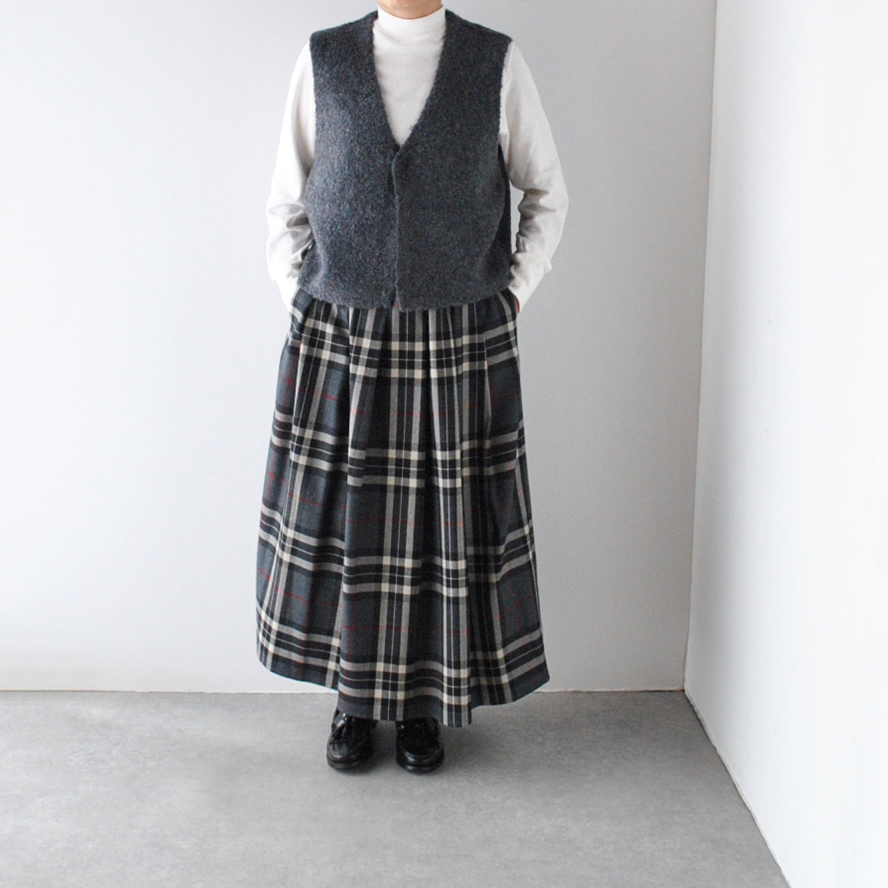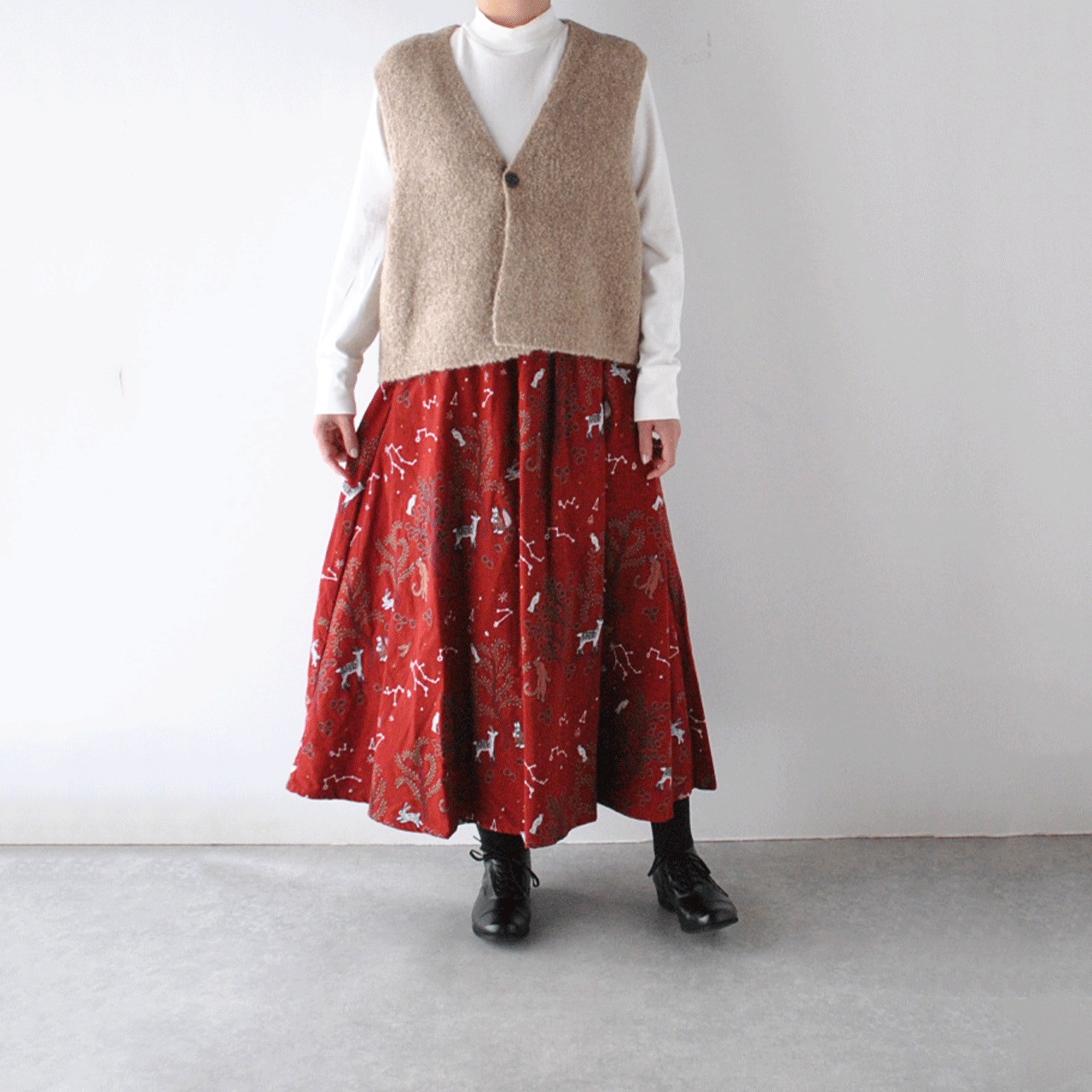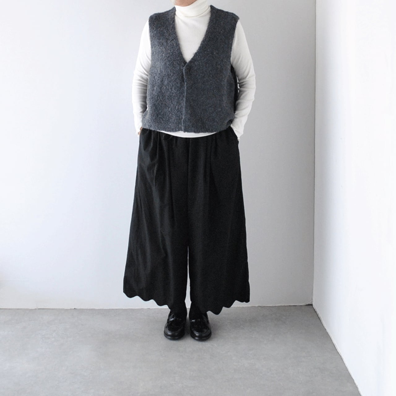 pritから、ふっくらもちもちに編み上げたとっても風合いの良いニットベストが届きました。表面がポコポコとしていて、まるで子犬を撫でているような優しい肌触りが本当に心地いいですよ。シンプルなアイテムですが、ブラウスやワンピースにサッと合わせるだけで、グッと雰囲気よく仕上げてくれる頼もしい一枚。軽くてとても温かいですよ。