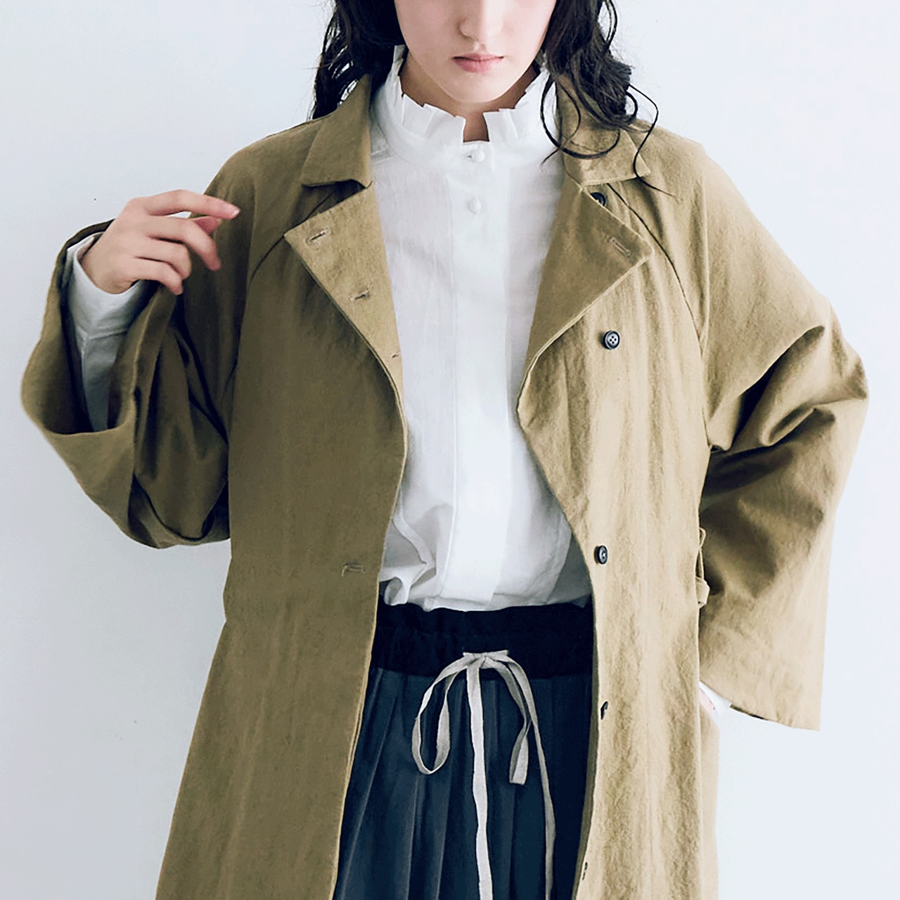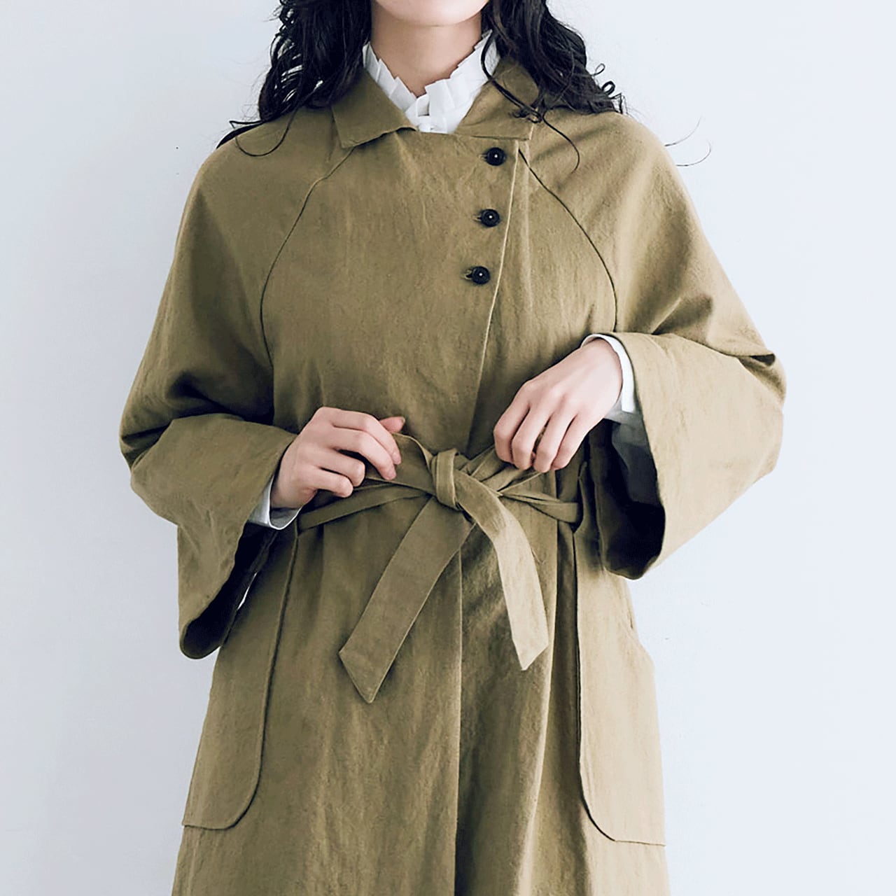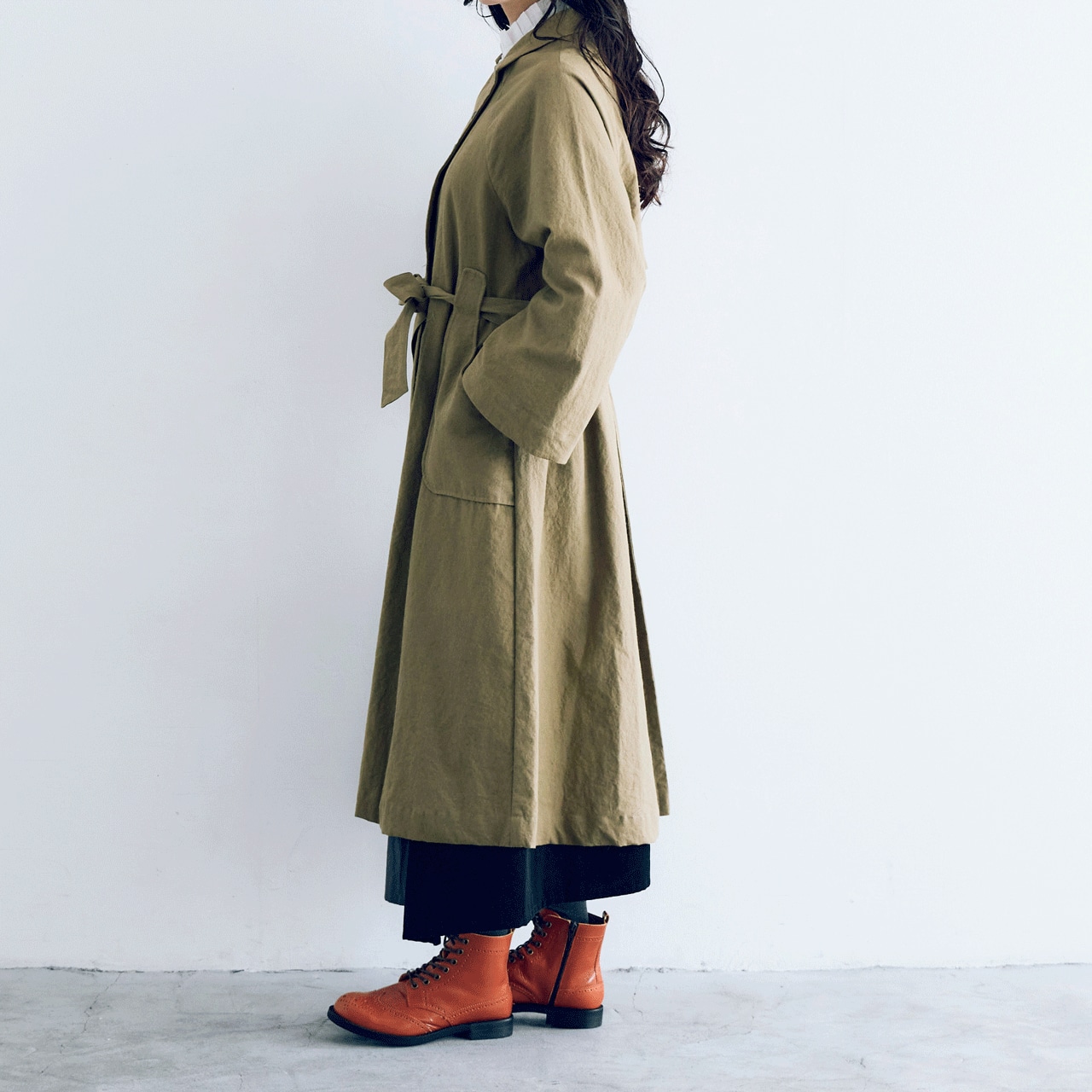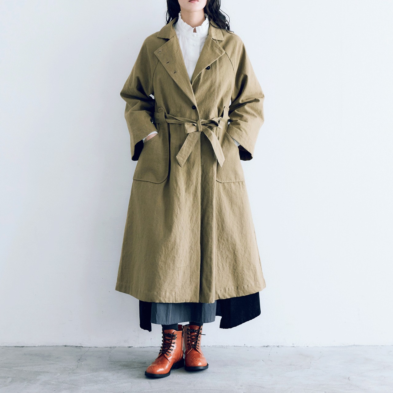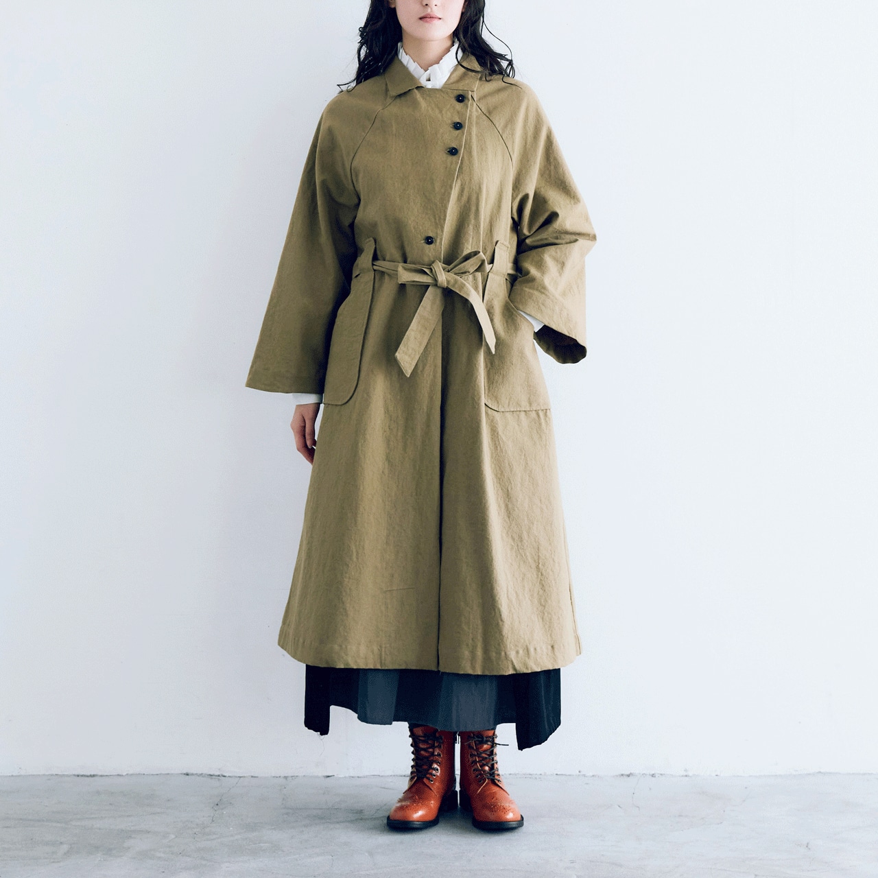 MAGALI コットンリネン・アンティークキャンバス・トレンチコート (カーキ) CT09KH