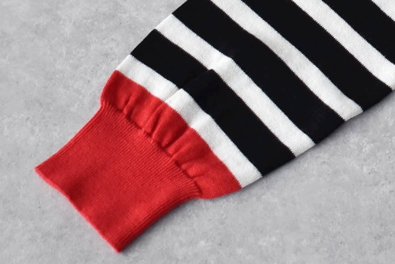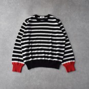 atelier naruse コットンウールボーダーニット (黒×白ボーダー(袖リブ赤)) kt43