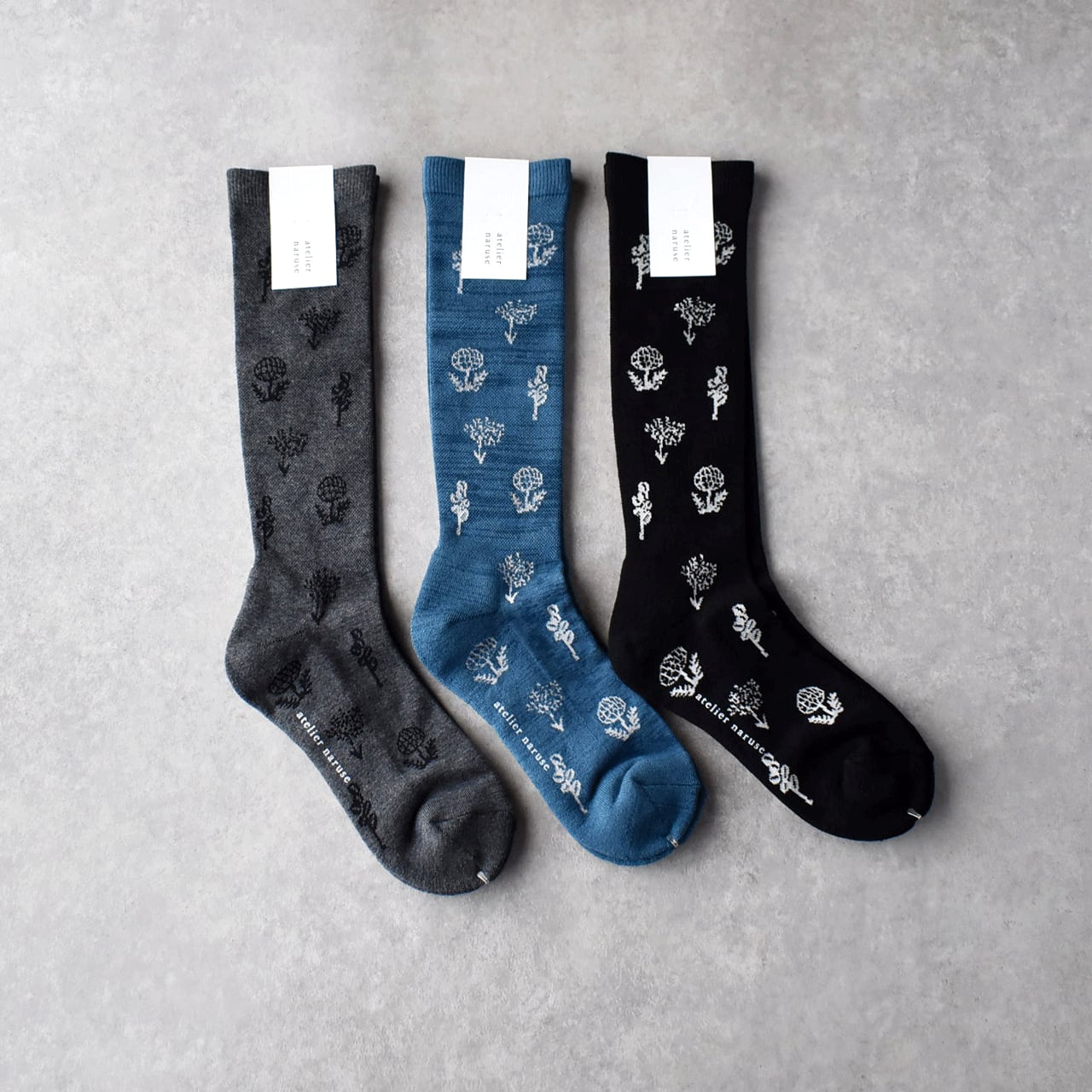 atelier naruse コットンウール ~monotone flower~ 着圧ソックス ya-76