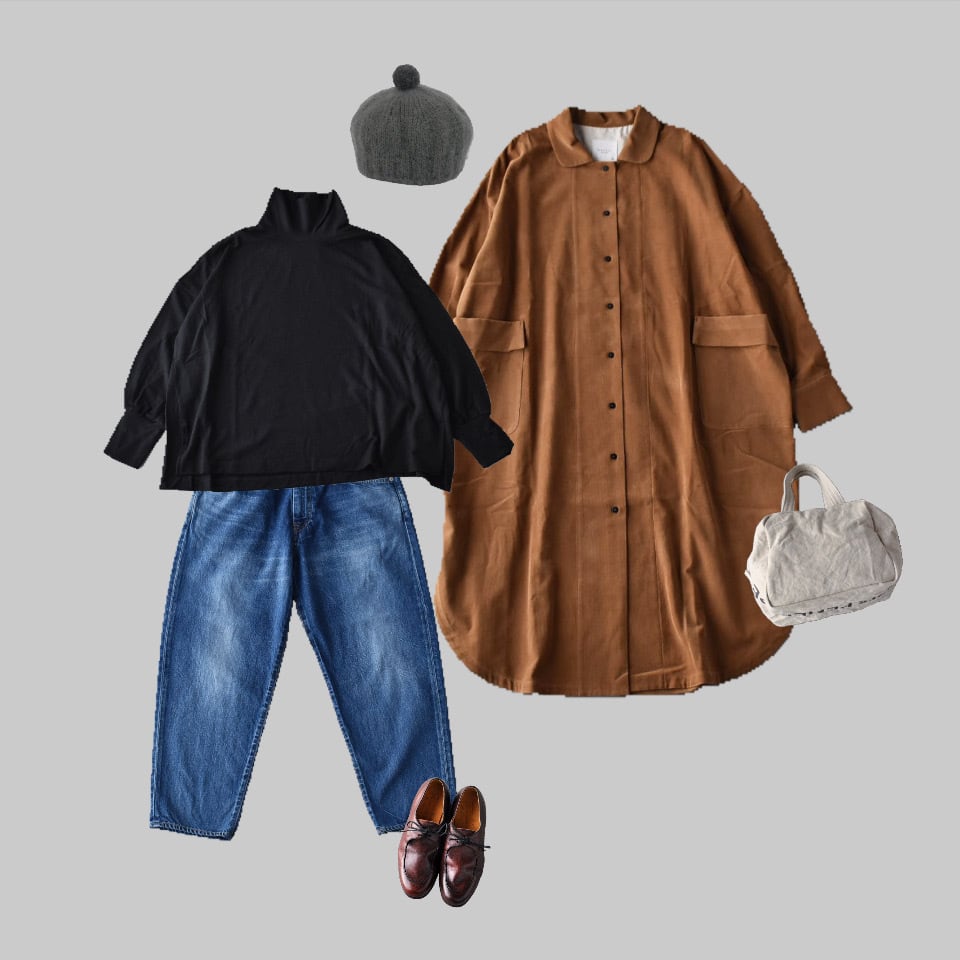 MAGALIから、コーデュロイのくたっとしたこなれた素材感で雰囲気よく着ていただけるシャツドレスが届きました。シンプルに一枚で、パンツやスカートに重ねたレイヤードスタイルで、前を開けてコートとして、様々な着こなしを楽しめる一枚ですよ。肩幅、身幅をたっぷり取り、両サイドは大きめのフラップポケットを配し、裾にはラウンドしたスリットを入れる事で、動きのある立体的なシルエットが生まれます。細ウネのコーデュロイ素材は堅さがなく、柔らかでとても軽く上品な肌触り。天日干しでゆっくりと染め上げたこっくりとした色味も今の季節にピッタリですよ。