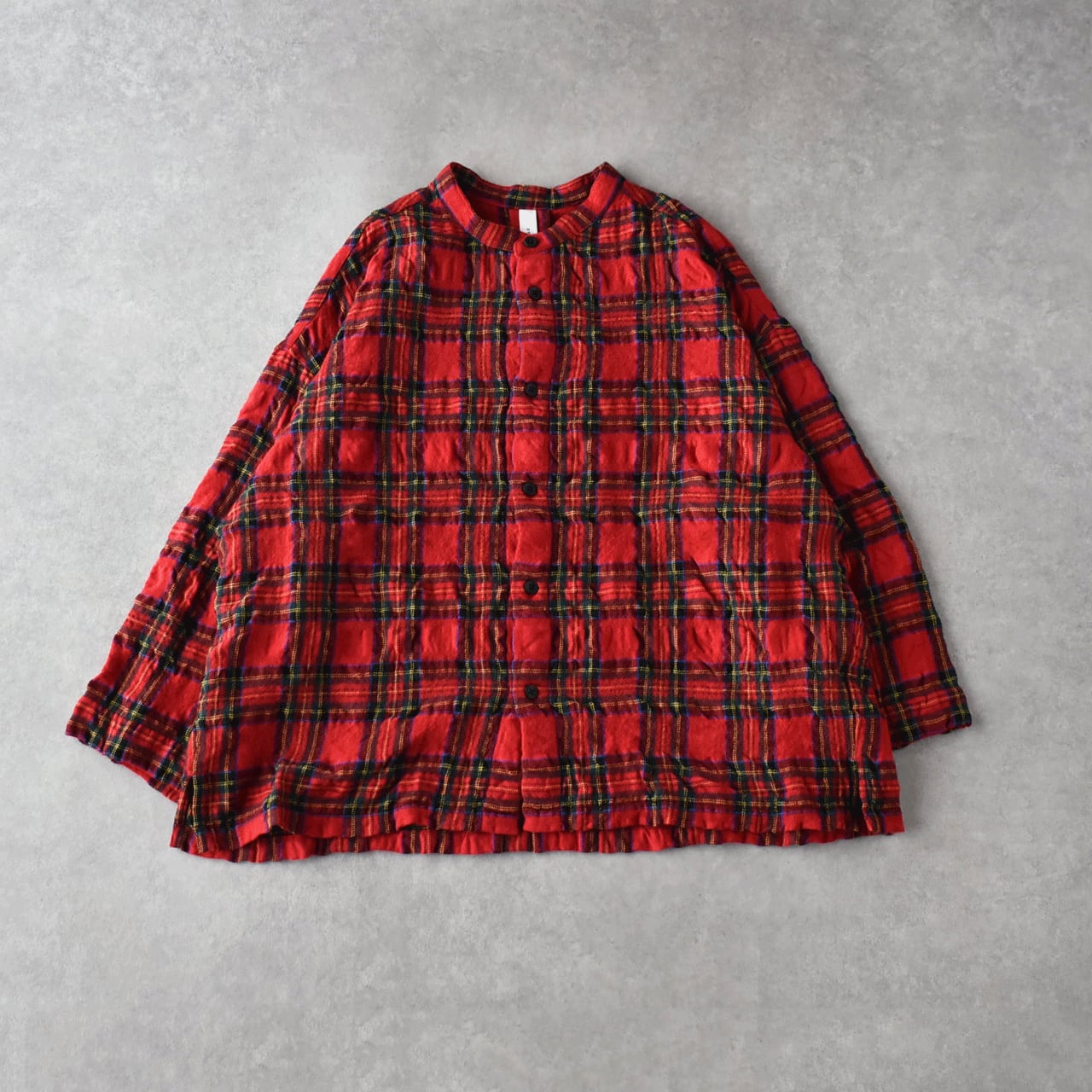 prit ウールコットンチェック スタンドカラーオーバーサイズシャツ (レッド) P80623
