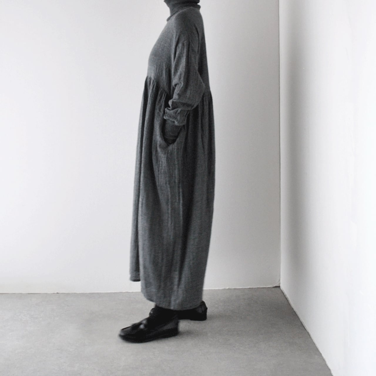 prit ウールビエラタンブラー タートルネック切替ギャザーワンピース (グレー) P80626