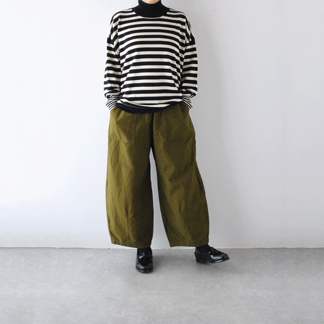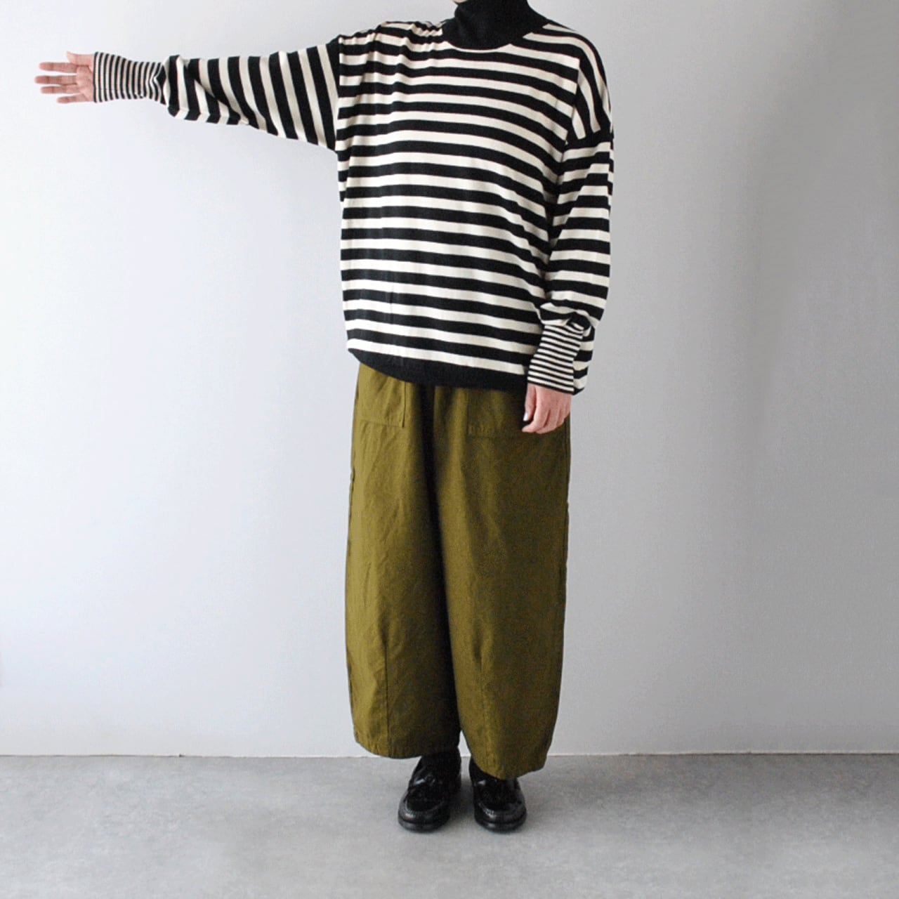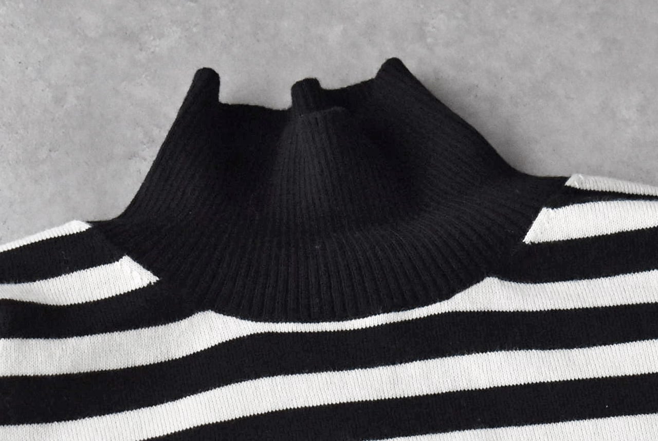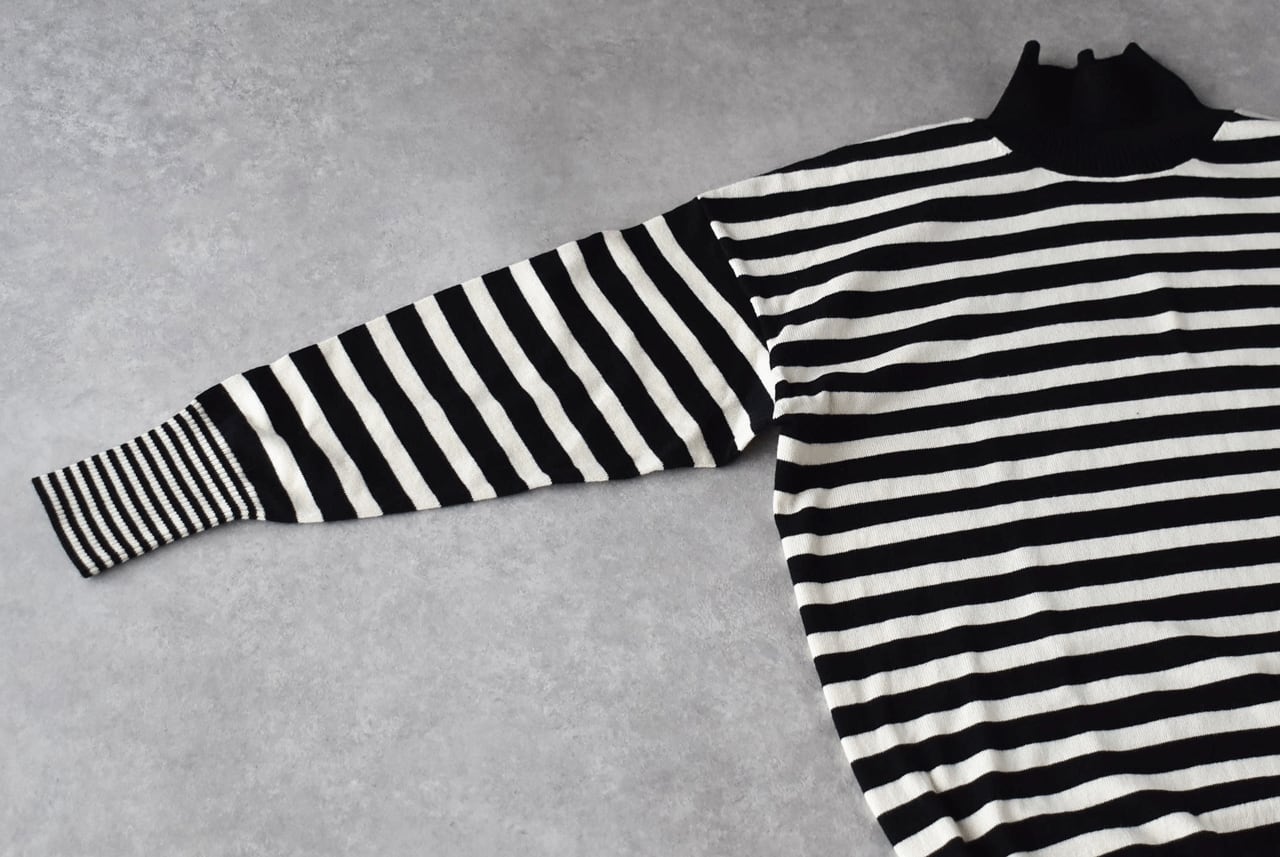 prit コットンウール12G天竺編みボーダー タートルネックワイドプルオーバー (クロ×アイボリー) P906114