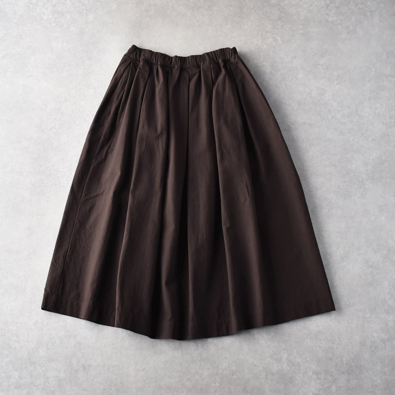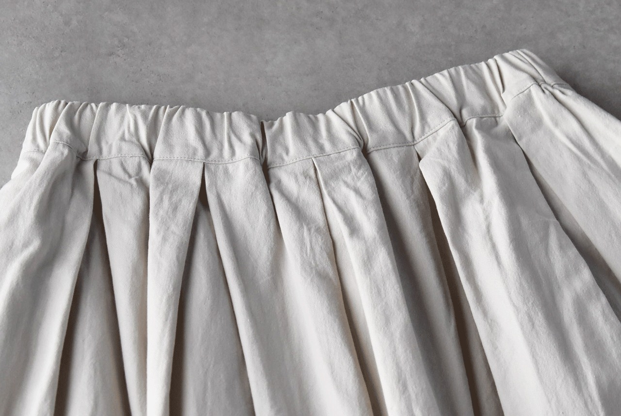pritから、立体感のある美しいシルエットが目を引くタックスカートが入荷しました。ボトム選びに困ったら迷わずこちらをオススメしたくなる一枚です。オーバーサイズのシャツやニットも、コンパクトなブラウスやカットソーも、魔法のようにバランスよく仕上げてくれますよ。しっかりとした厚みとコシのあるコットンツイルキャンバス素材が愛らしいボリュームをキープ。透け感がないのも嬉しいですね。少しくすみのあるアースカラーが秋冬のコーディネートにスッと馴染んでくれますよ。
