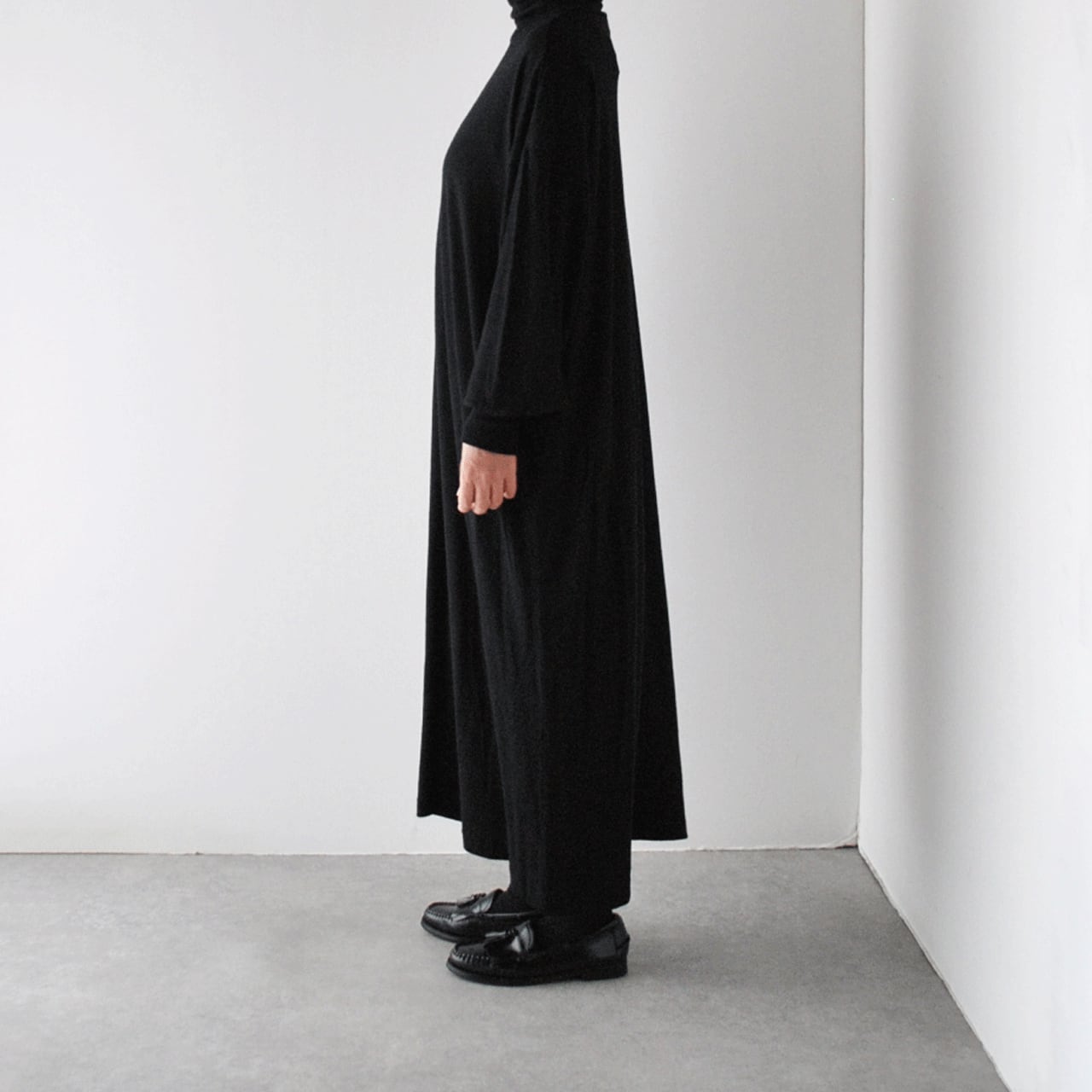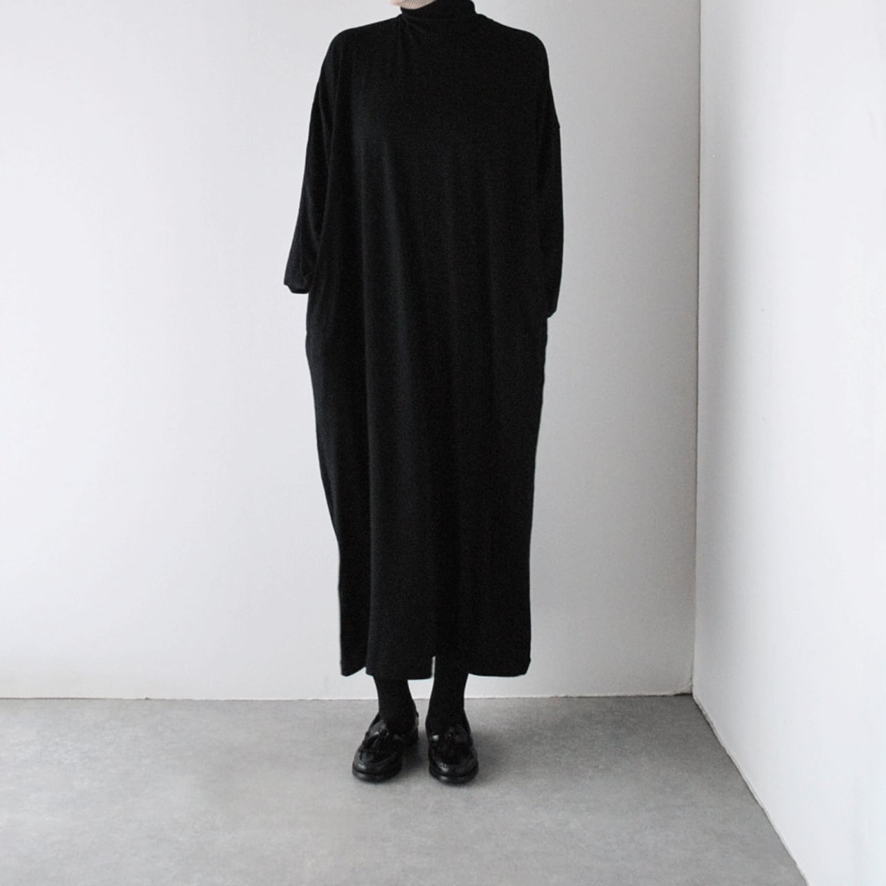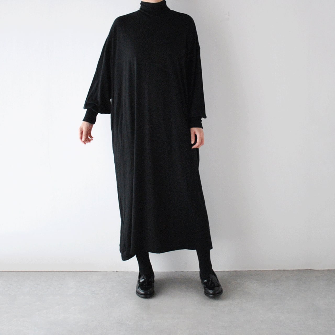 prit ウールハイゲージ天竺 タートルネックマキシワンピース (クロ) P90635