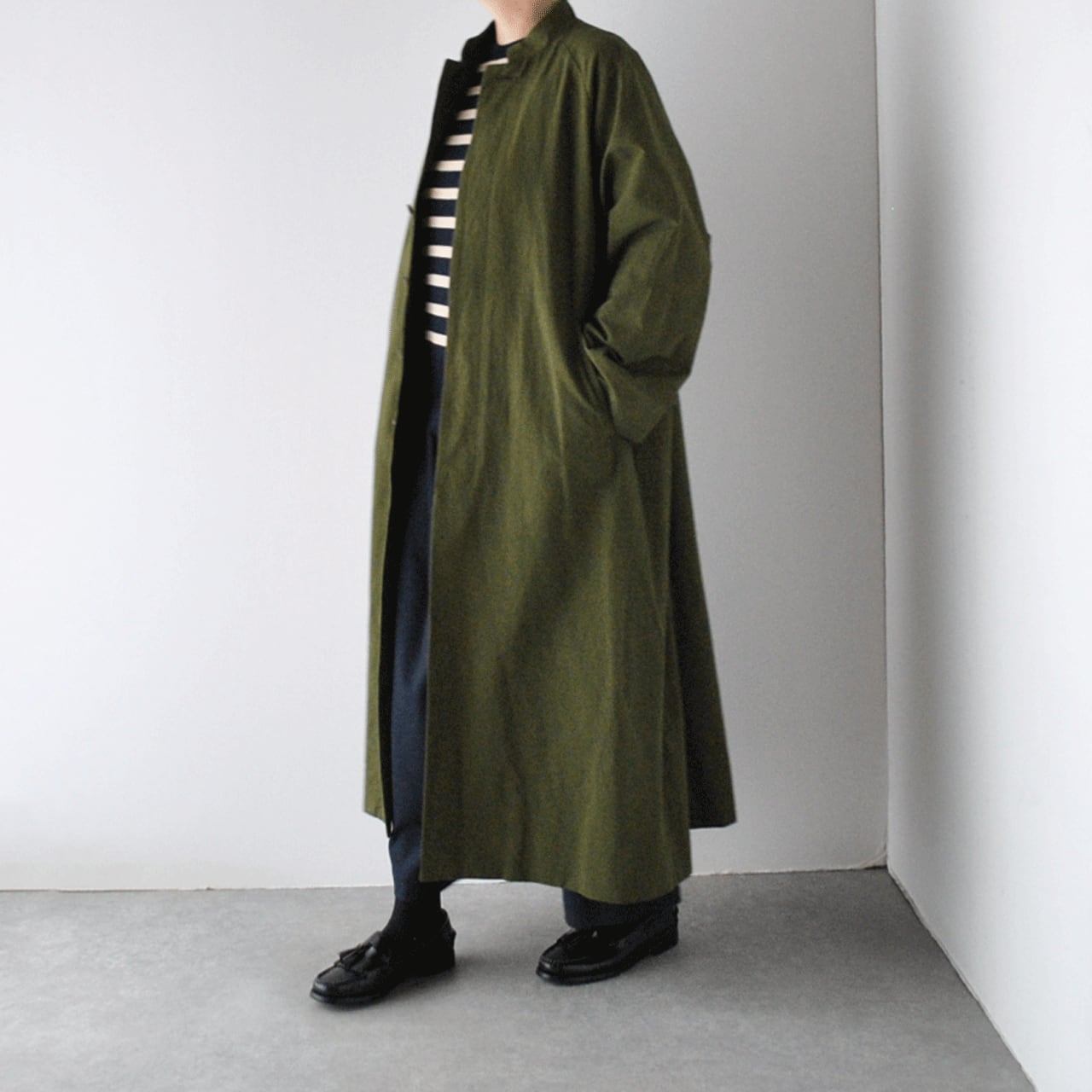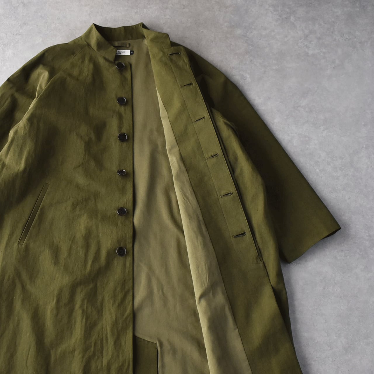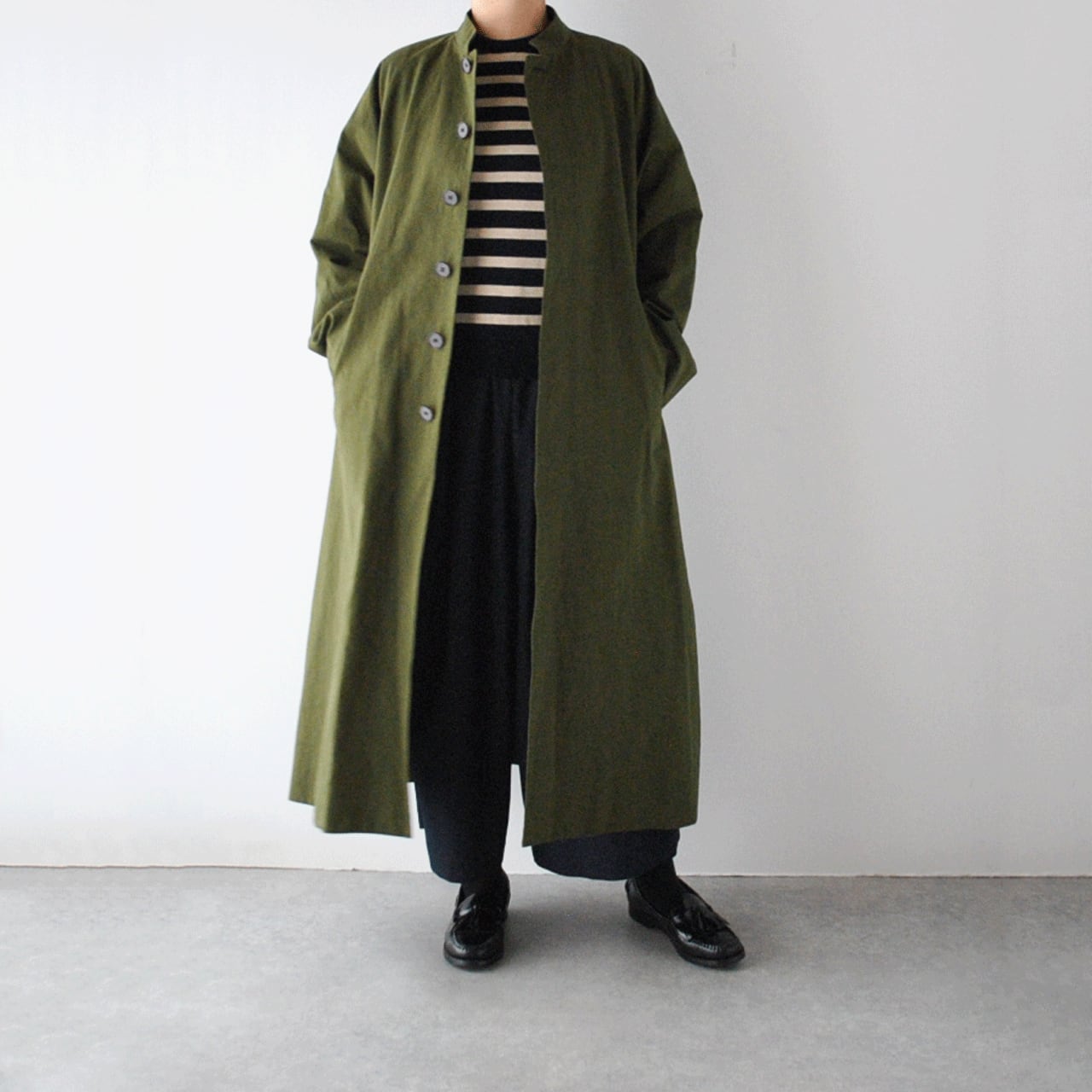 atelier naruse コットンヘンプスタンドカラーコート (カーキ) F04058