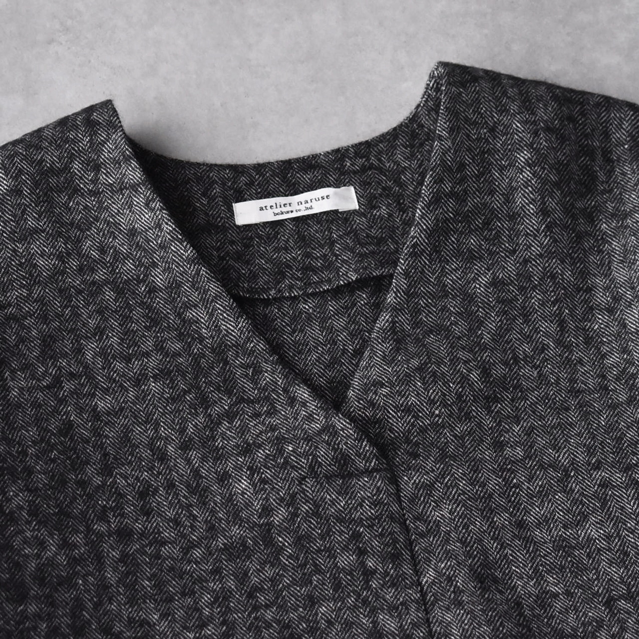atelier naruse シェットランドウールリネンスモック (ブラック) F02064