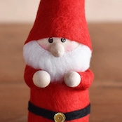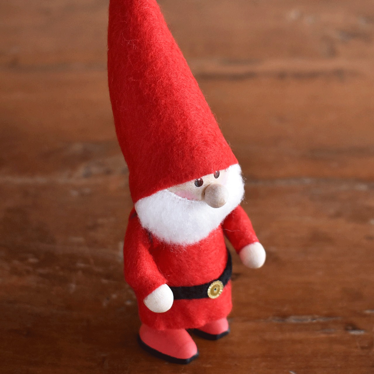 北欧で、古来より家や子供たちを守りクリスマスの時期にはサンタクロースのお手伝いをすると言い伝えられている「妖精ニッセ」。イタズラ好きで働き者のニッセが住む家には幸福が訪れると言われています。素朴でどこかあどけない木の人形は、1つ1つエストニアの職人たちの手によって作られたハンドメイド製。毛糸で編んだマフラーや両手で抱えているプレゼントのラッピング、リネンの生地の袋や素材感のある丸太など、人形だけでなく添えられた小物の細部に至るまで細かく丁寧に作られていて惚れ惚れします。