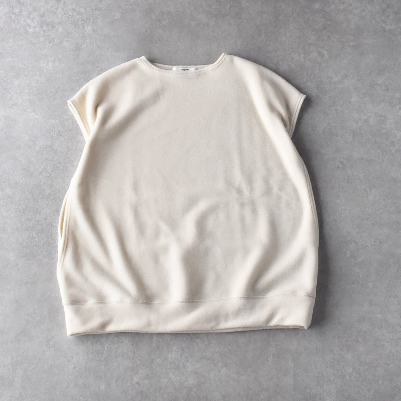 LABORATORYから、キメの細やかなイタリヤ産フリースが温かな、ワイドシルエットのプルオーバーベストが届きました。空気を纏う様な軽い着心地がクセになる一枚。ブラウスやタートルネックはもちろん、ワンピースにもとっても雰囲気よく重ねて頂けますよ。袖口が大きく開いたデザインがちょっぴり個性的ですが、締め付け感がないのでストレスフリー。お手頃価格も嬉しいですね。