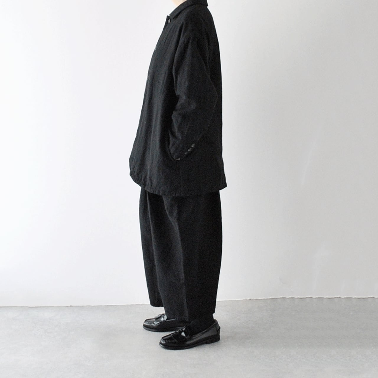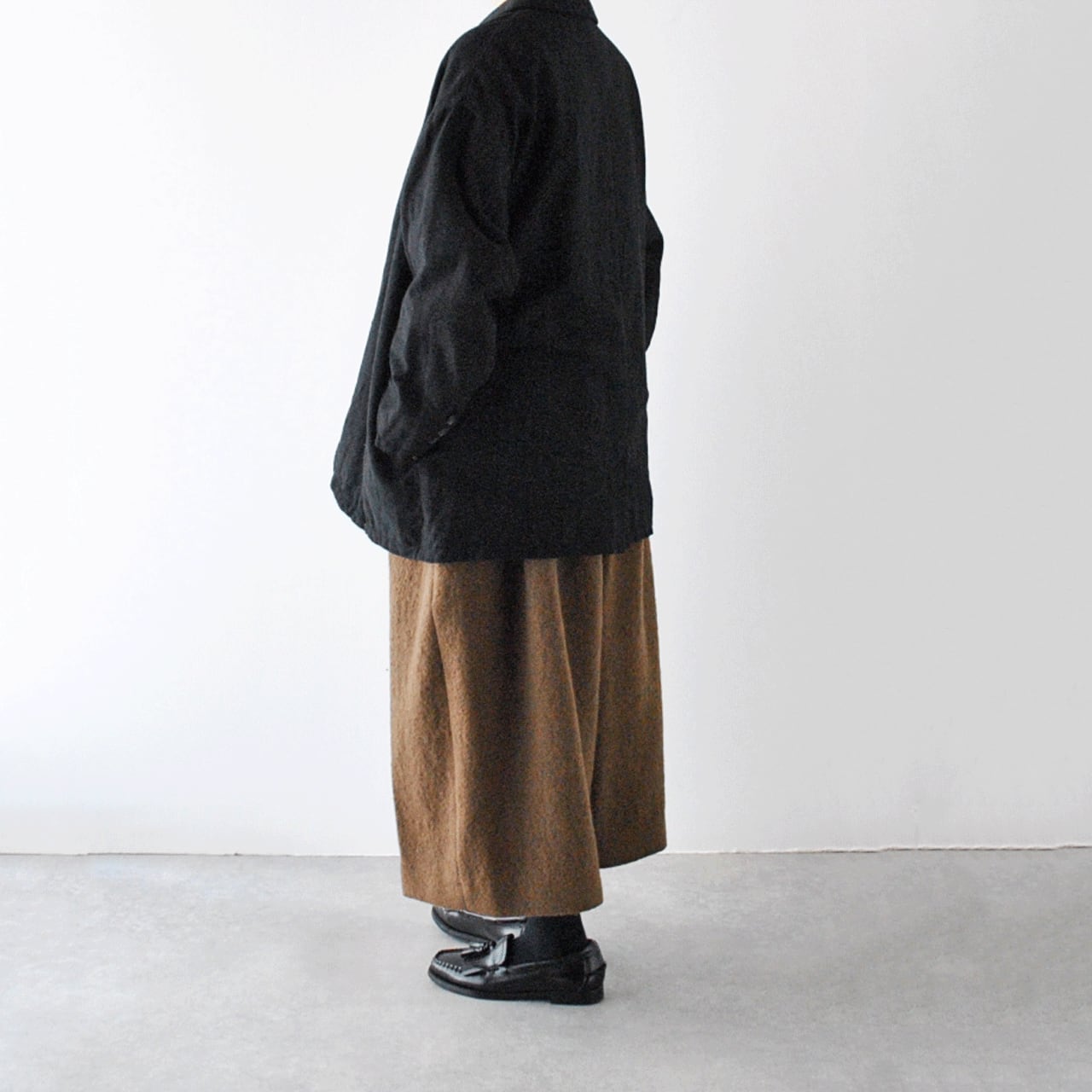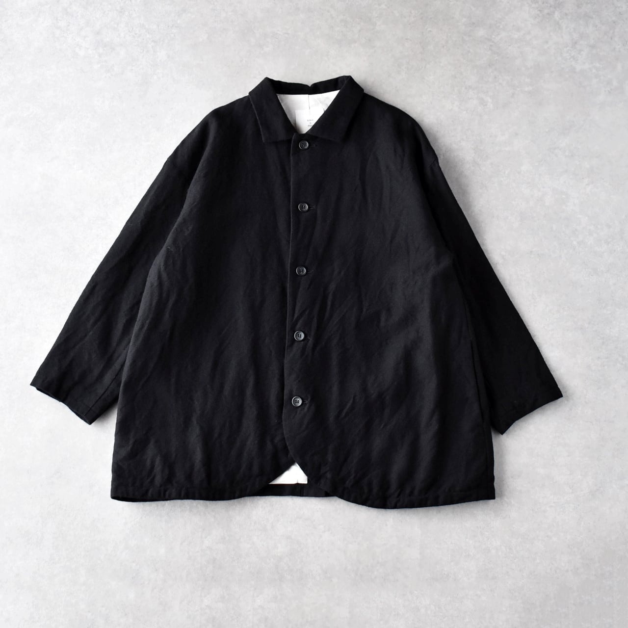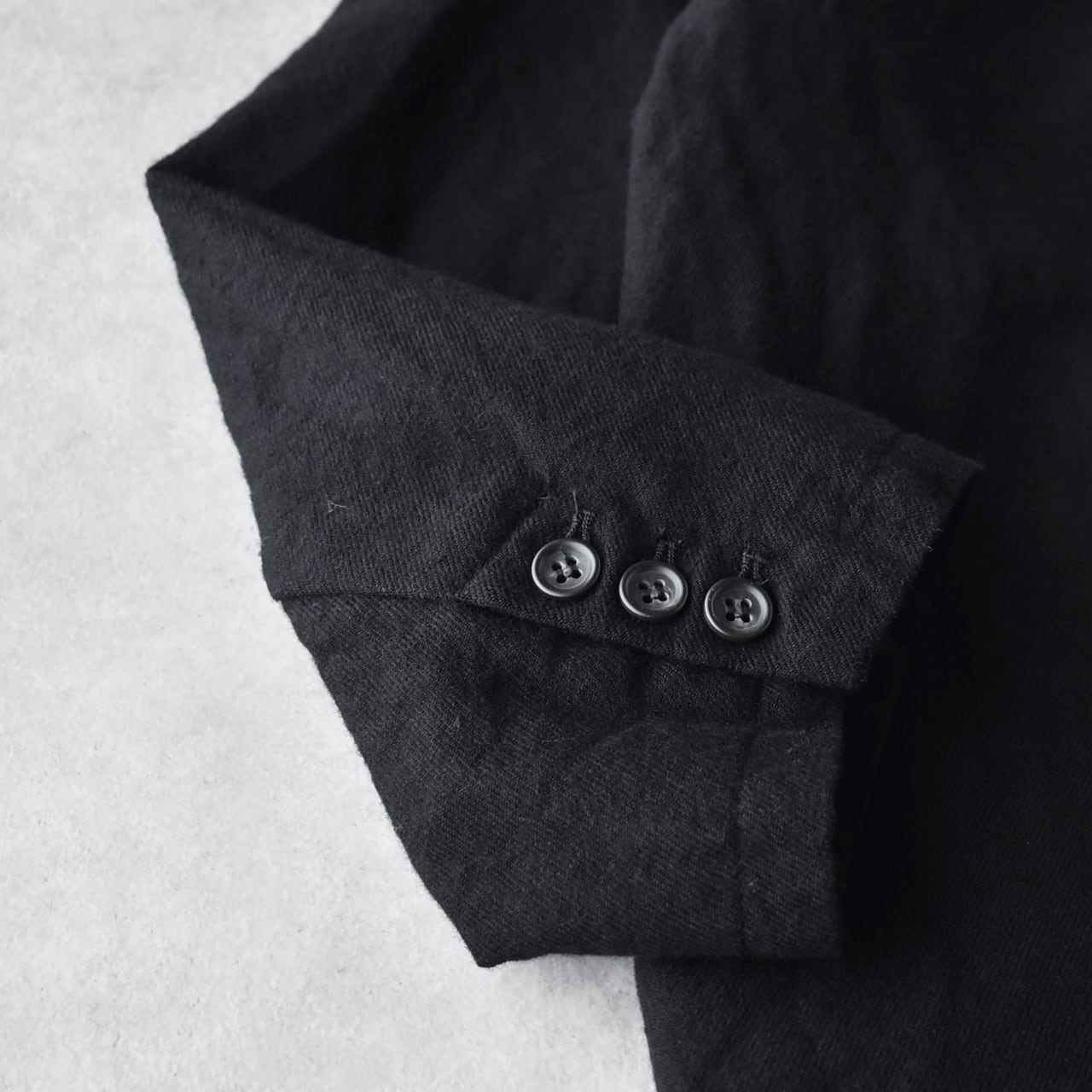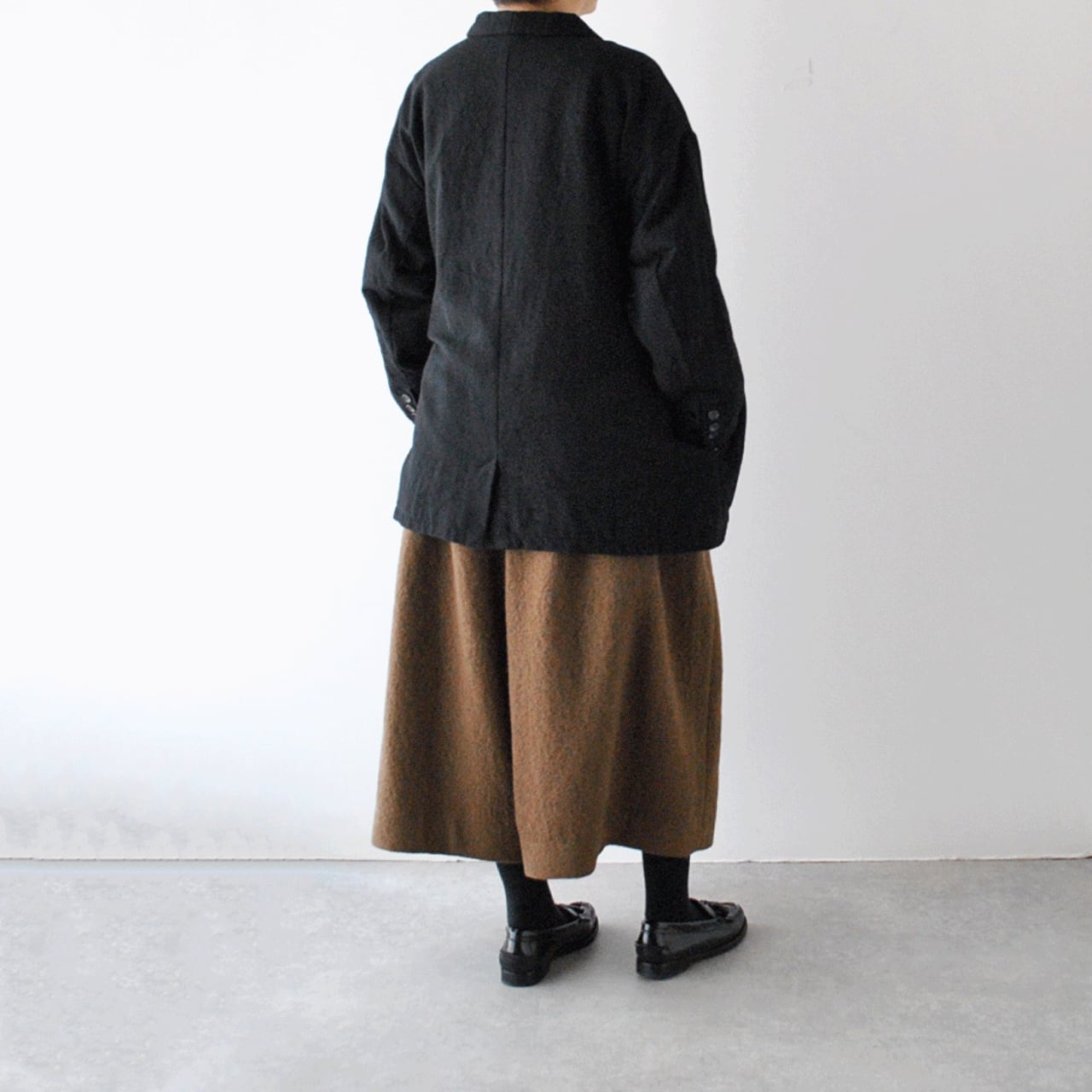 ROBE de PEAUから、ウール×コットン生地に洗いをかけたヴィンテージのような風合いが素敵なジャケットが届きました。少し長めの丈感のオーバーサイズが絶妙で、デニムからスカートまで様々なスタイルにサッと気軽に羽織るだけでとっても雰囲気よく楽しめるオススメの一枚です。ワンピースにもゆったりと羽織れて、とっても可愛いですよ。ふっくらとした生地感で、着心地も軽いです。コットンの裏地付きなので着脱もとってもスムーズ。程よく力の抜けた大人のリラックススタイルを楽しんでくださいね。