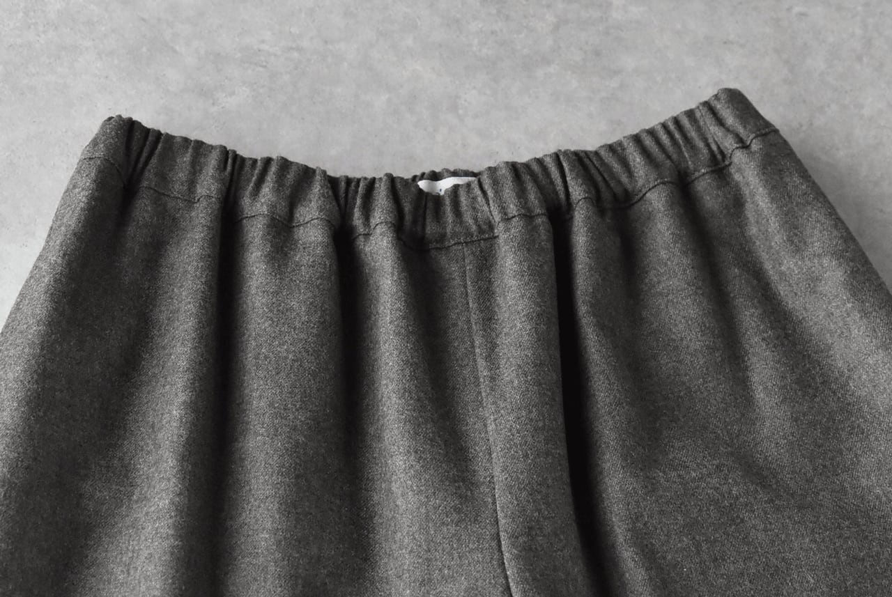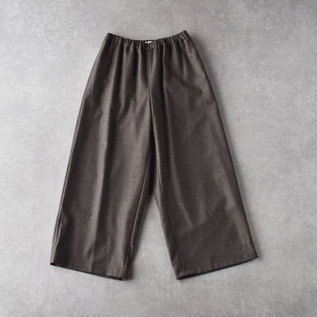 Vent d'ouestから、ハイカウントフラノウールの滑らかな肌触りが心地よいワイドパンツが届きました。ちょっぴりおじさんチックなデザインは、オーバーサイズのニットなどと合わせるとても可愛く履いて頂けますよ。履き心地も軽く、深い股上、ヒモで調節出来るゴムウエスト、裏地付きでストレスフリーな一枚。色んな色がMIXされたブラウンカラーも深みのあるとってもいいお色ですよ。スニーカーで少し外したスタイルもオススメ。