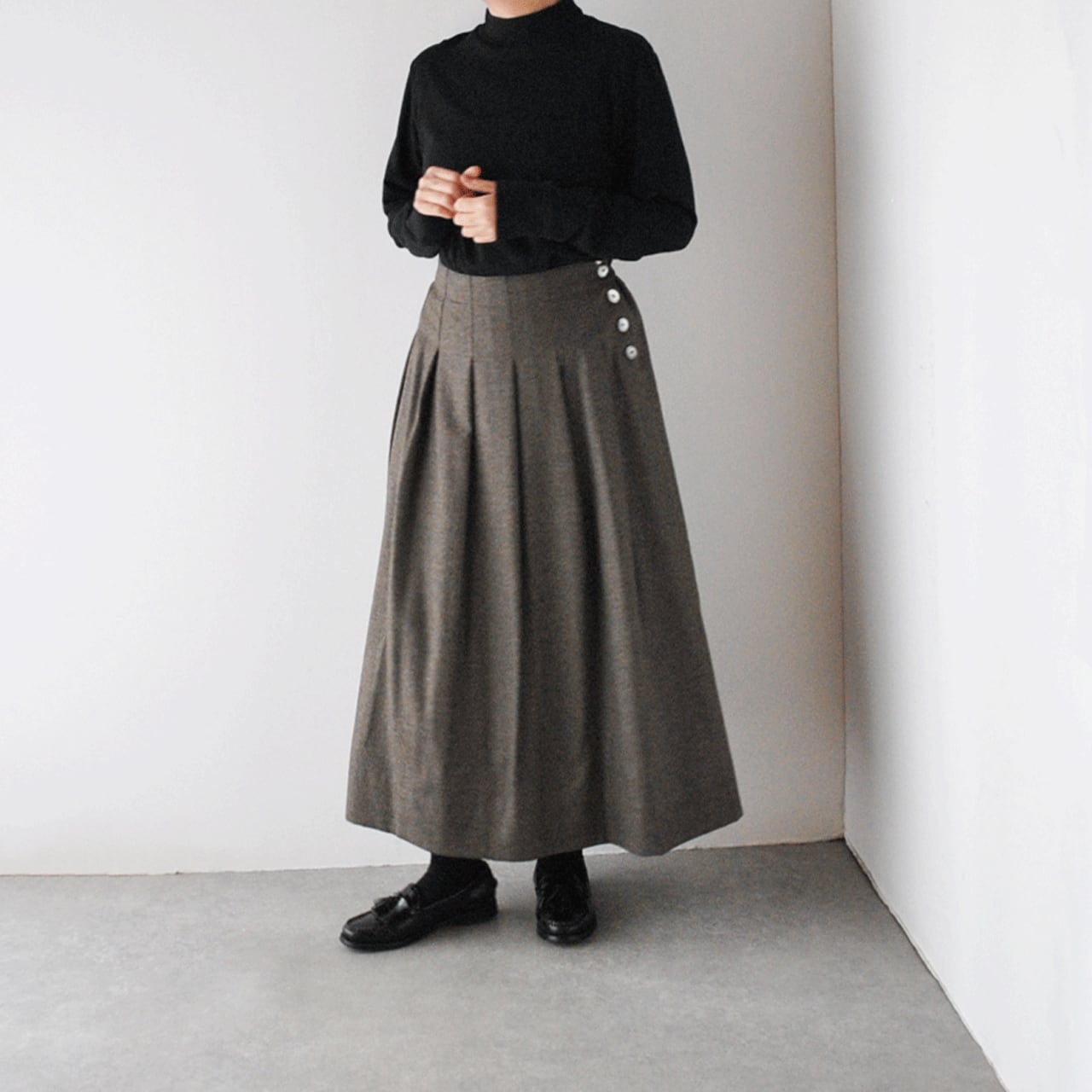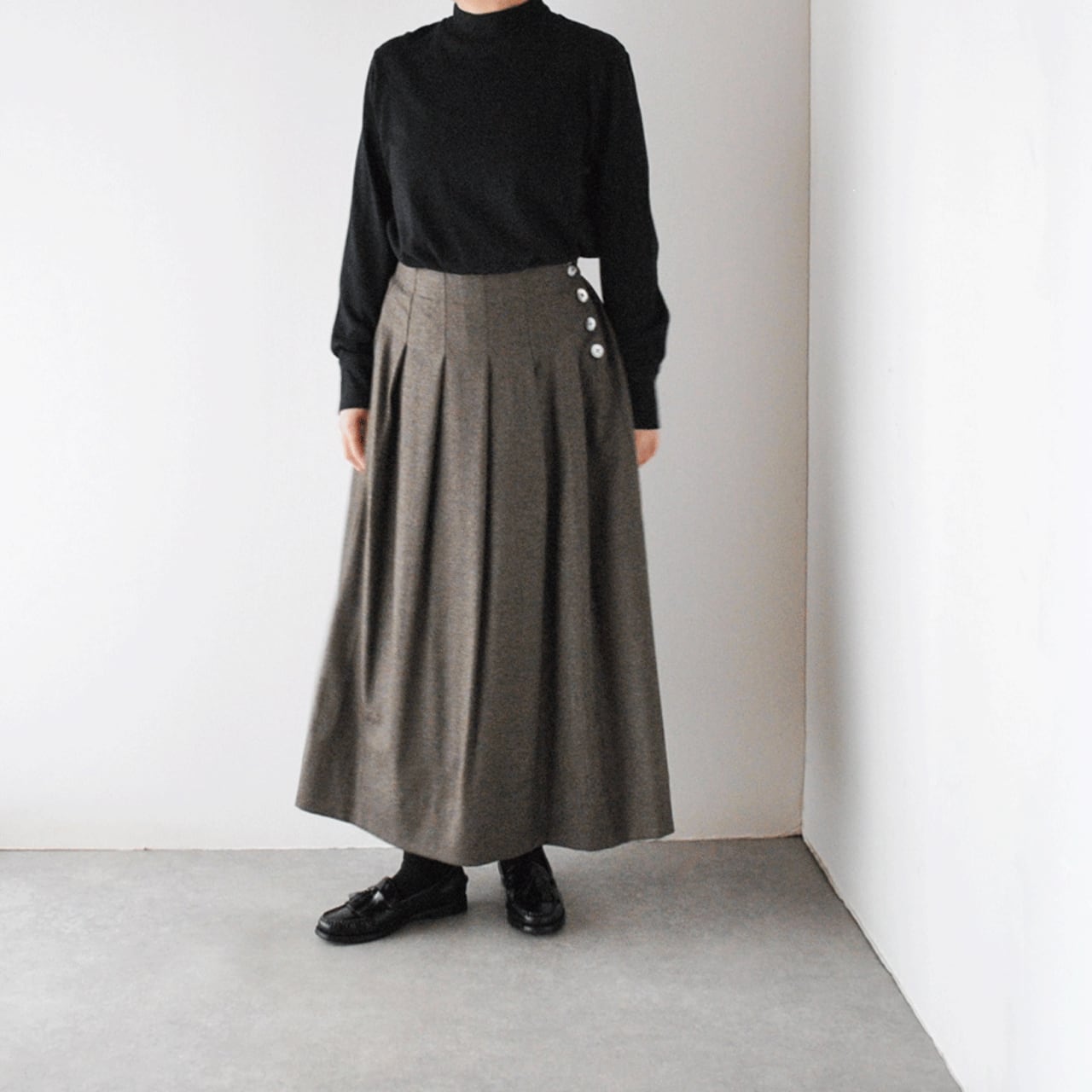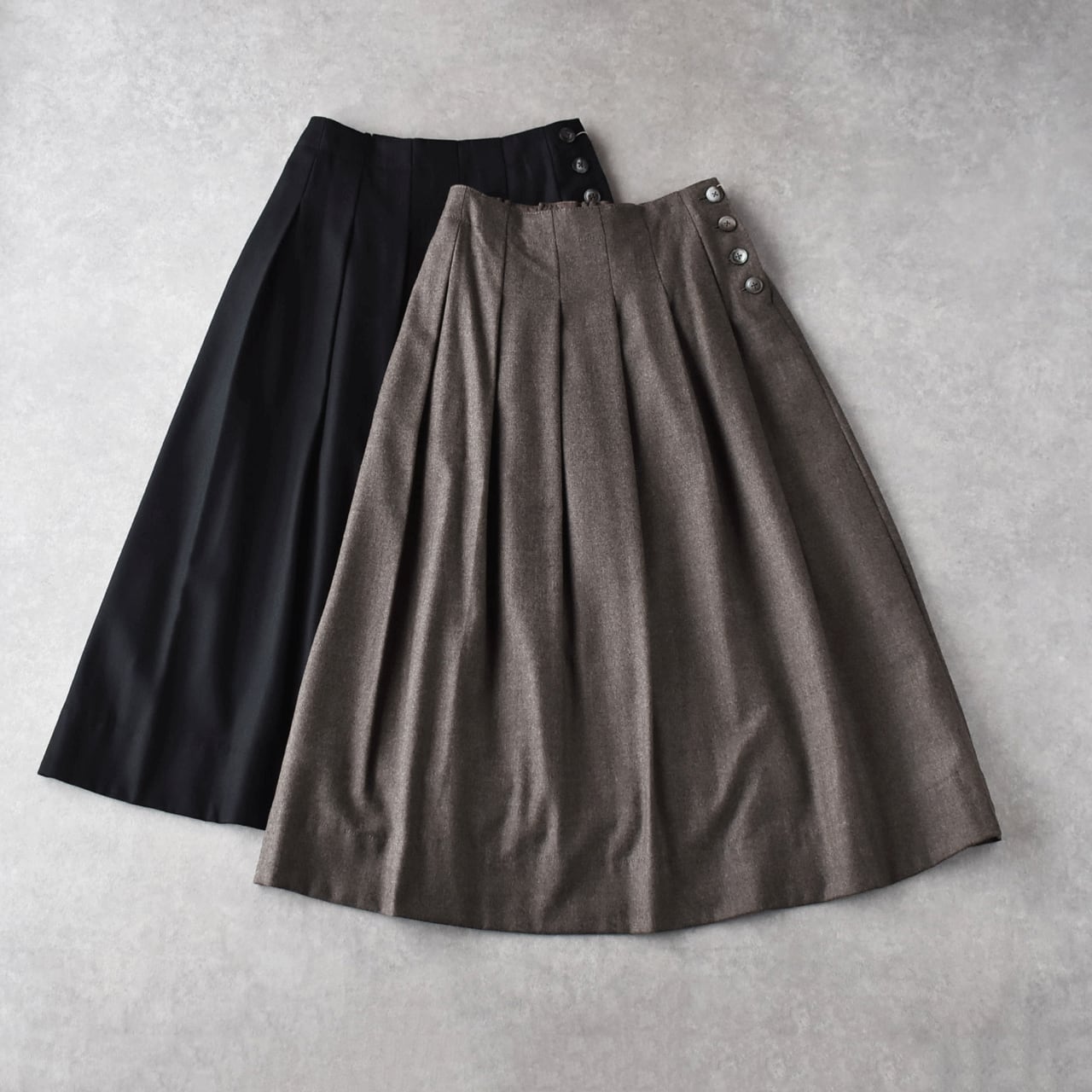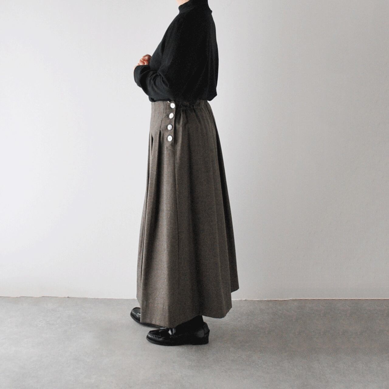 Vent d'ouest ハイカウントフラノウール サイドボタンタックスカート VE37516