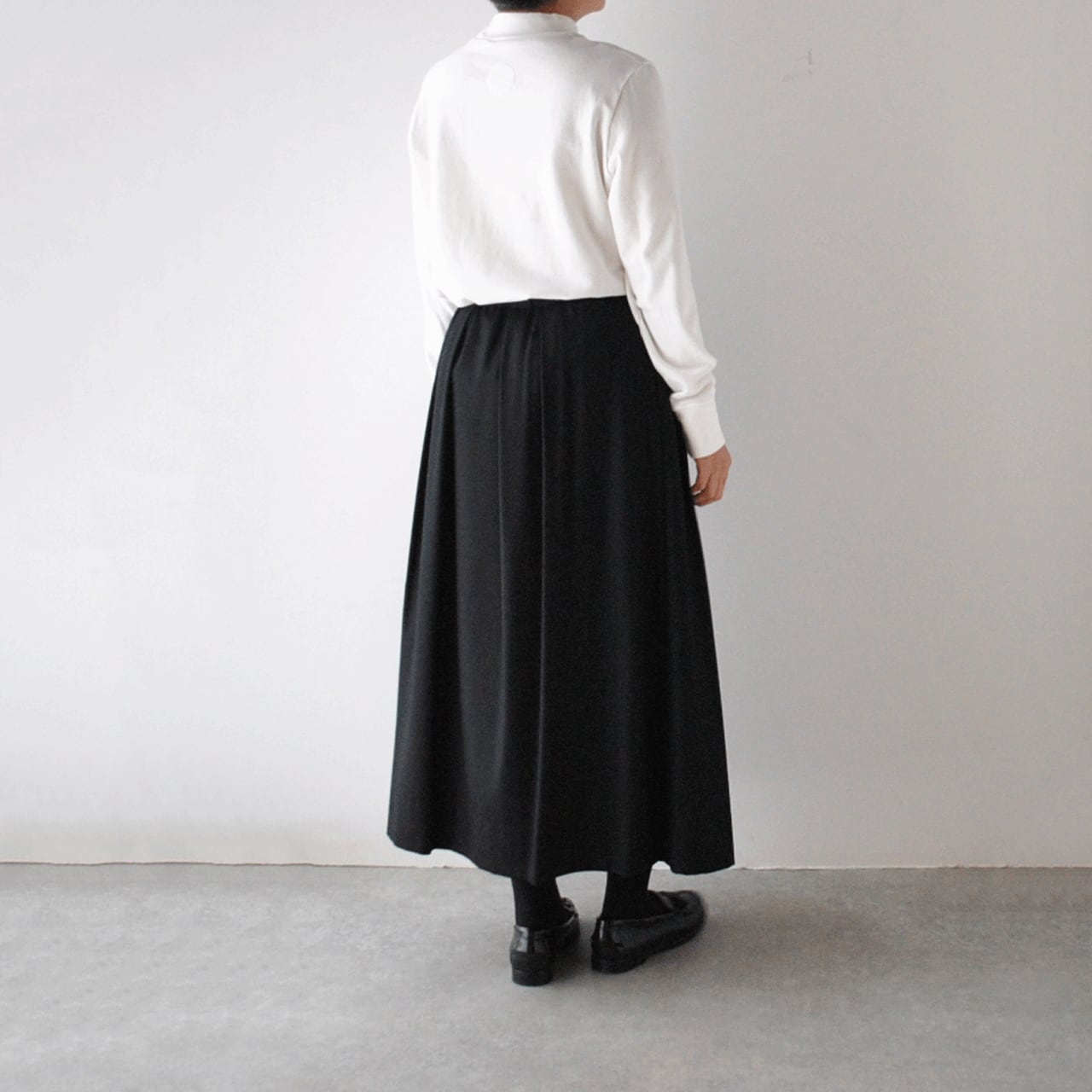 Vent d'ouestから、美しいシルエットが際立つフラノウール素材のタックスカートが届きました。ウエストに貝ボタンを並べたVent d'ouestらしいフレンチシックなデザインが本当に素敵な一枚。シンプルなニットなどと合わせるだけでとても上品なスタイルが完成しますよ。後ろウエストのみゴムギャザー入りですので、トップスインの着こなしも簡単に美しく決まります。生地はとっても滑らかな肌触りで、深みのあるお色もこの季節にピッタリ。履き心地も軽く、裏地付きなのも安心ですよ。