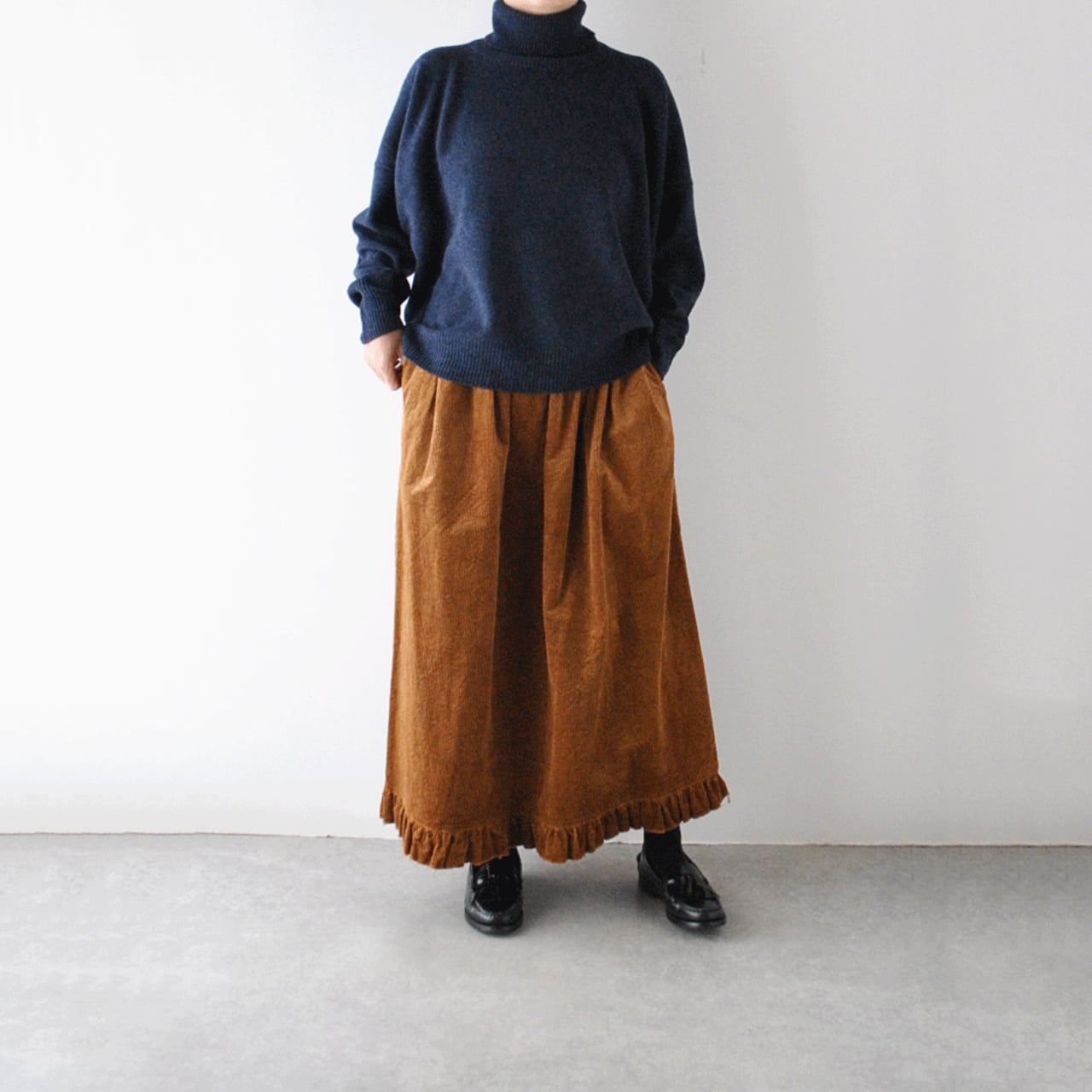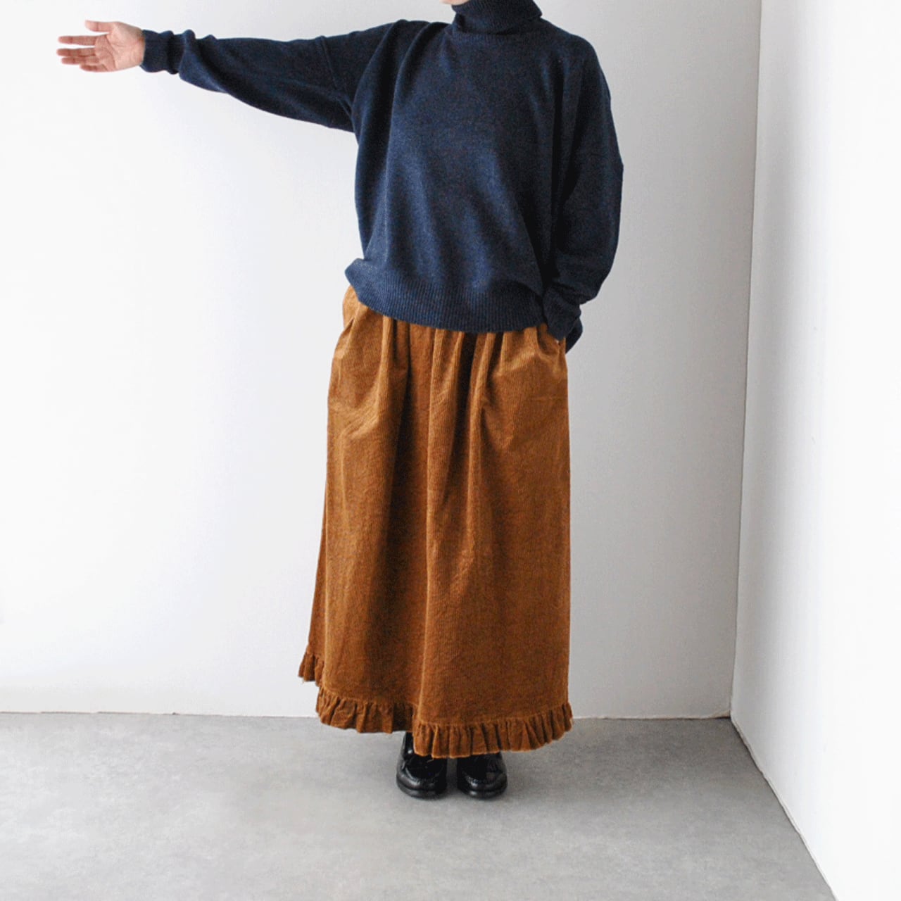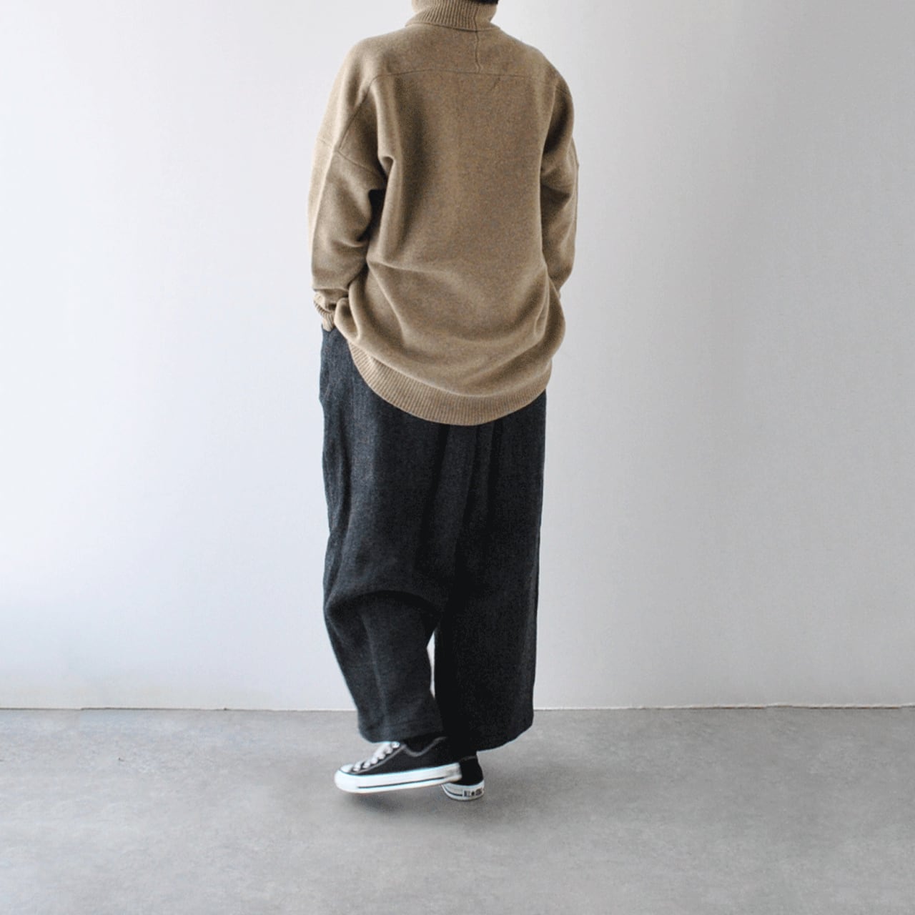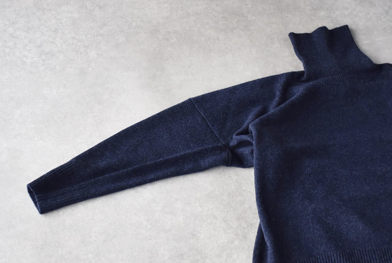 LABORATORYから、肩幅、身幅がゆったりとしていて、広げると大きな四角形になるタートルニットが届きました。着用すると後ろ丈が長くなるオーバーサイズデザインがとっても雰囲気がありますよ。ニュアンスのあるインディゴとモカのお色味も本当に素敵。普段ニットは白か黒しか着ないという方にもぜひ試して頂きたいです。様々な冬のボトムにスッと馴染んでくれてとっても重宝してくれる一枚ですよ。