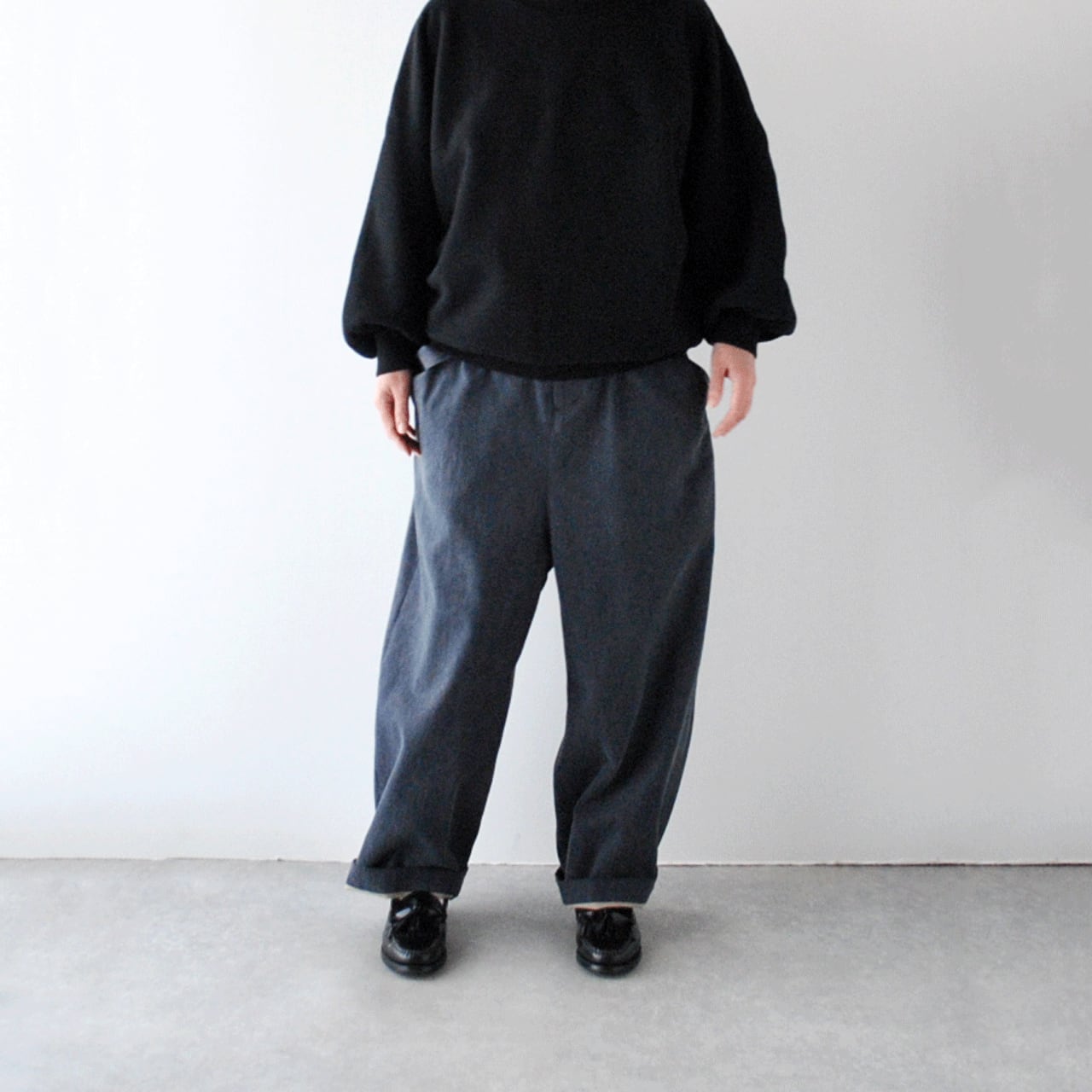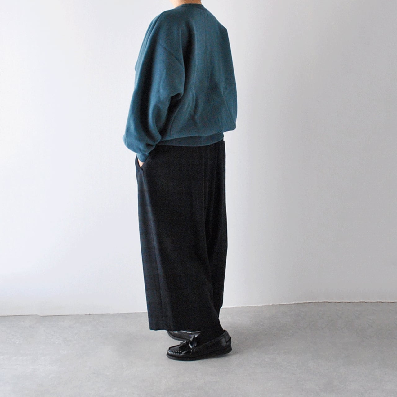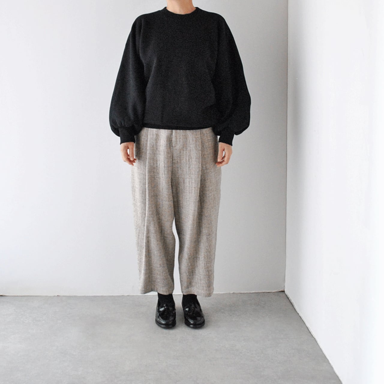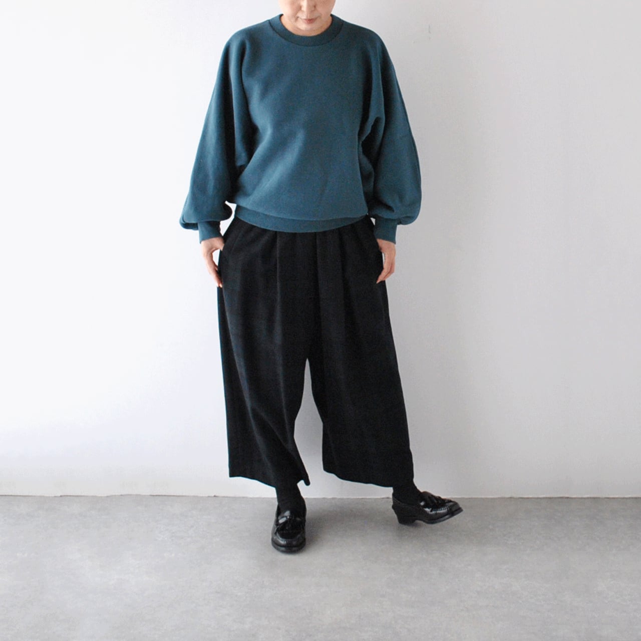 ボディと袖が一体になった個性的なデザインがatelier naruseらしいスウェットプルオーバー。身体がまるでバルーンの中にいるようなリラックス感たっぷりの一枚ですよ。ネックと袖口のリブは程よく詰まっているので、ふっくらとした愛らしいフォルムで楽しんで頂けます。カジュアルな中にもどこかモードな雰囲気があるのも素敵。旧式の編み機でゆっくりゆっくり編み上げた吊裏毛スウェットは、しっかりと目が詰まっていながらふっくら柔らかで、まるで毛布にくるまれているような温かさ。家の中でも外でも一日中着ていたくなると思いますよ。