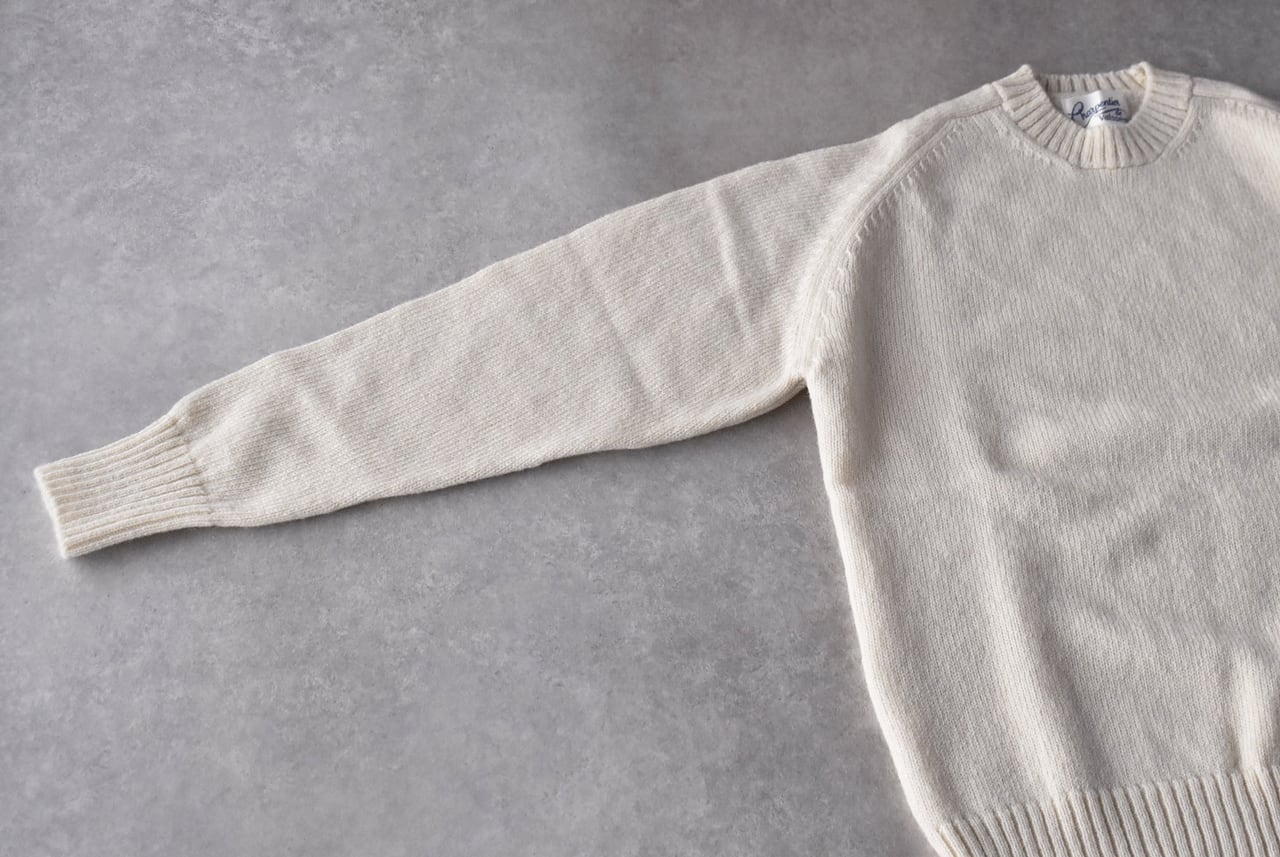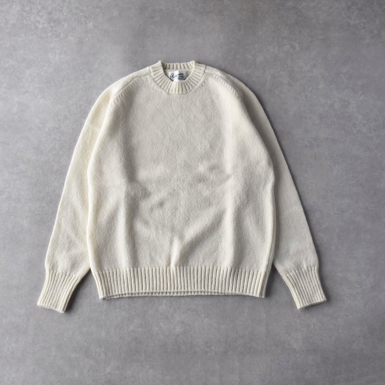 Charpentier de Vaisseauから、ふっくらと軽いシェットランドウールにしなやかなメリノウールをブレンドしたニットセーター「Kate」が届きました。ざっくりと編まれた優しい表情が毎シーズン人気の一枚です。ゆったりとしたサイズ感で着ていただけるようにメンズサイズをセレクトしました。極めてシンプルなデザインは、様々なボトムと相性が良く、冬はコートの下に着てももたつかないので、長く楽しんでいただけますよ。厳しい寒さと湿度の高い気候のシェットランド諸島に生息する羊から採れるウールは保湿性が高く、数種類の色をブレンドして編み上げた色合いもとても美しいです。