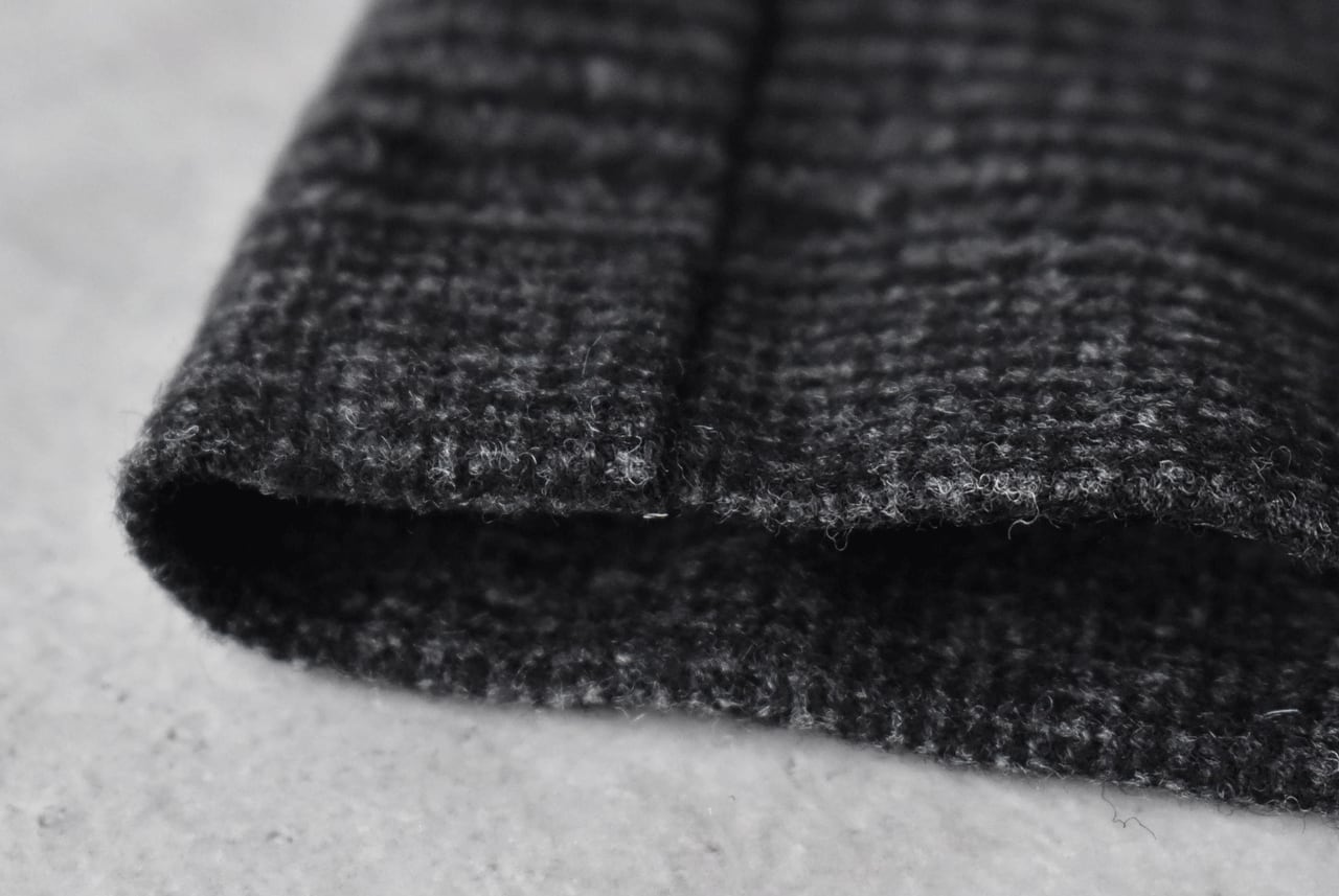 素材:(表地)毛44%、ポリエステル26%、レーヨン14%、ナイロン13%、ポリウレタン3%(裏地)ポリエステル65%、綿35%